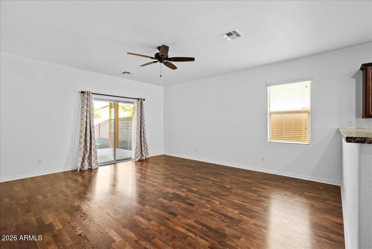Located in desirable San Tan Heights, this energy-efficient single-family home offers a well-designed 3-bedroom, 2-bath layout with an open-concept living space and a sought-after split floor plan. The kitchen features granite countertops, 42'' staggered cherry cabinets, and black Whirlpool appliances, including a gas range, making it ideal for both everyday living and entertaining. Tile and wood flooring flow throughout the main areas, adding durability and style. The spacious primary suite includes a walk-in closet, oversized vanity, and a separate shower and soaking tub. Additional highlights include a 2-car garage, covered patio, and a private backyard that is fully landscaped with natural grass—perfect for relaxing or hosting guests. Home blends comfort, efficiency, and functionality In San Tan Heights, residents enjoy an exceptional, family-focused lifestyle with parks of varying sizes, 23 playgrounds, two volleyball courts, two-and-a-half basketball courts, expansive greenbelts, and more than six miles of scenic trails and walking paths. The newly built Community Center features a pool, fitness center, and gathering spaces for year-round recreation. Education is conveniently close, with San Tan Heights K-8 School located within the community and Mountain Vista Academy nearbyboth rated Performing Plusalong with several additional charter options. Just minutes away, San Tan Mountain Regional Park offers 10,000 acres of preserved desert landscape and extensive trail systems. Residents also benefit from nearby retail, medical facilities, a campus of Central Arizona College, and a local library, providing convenience without compromising natural surroundings.