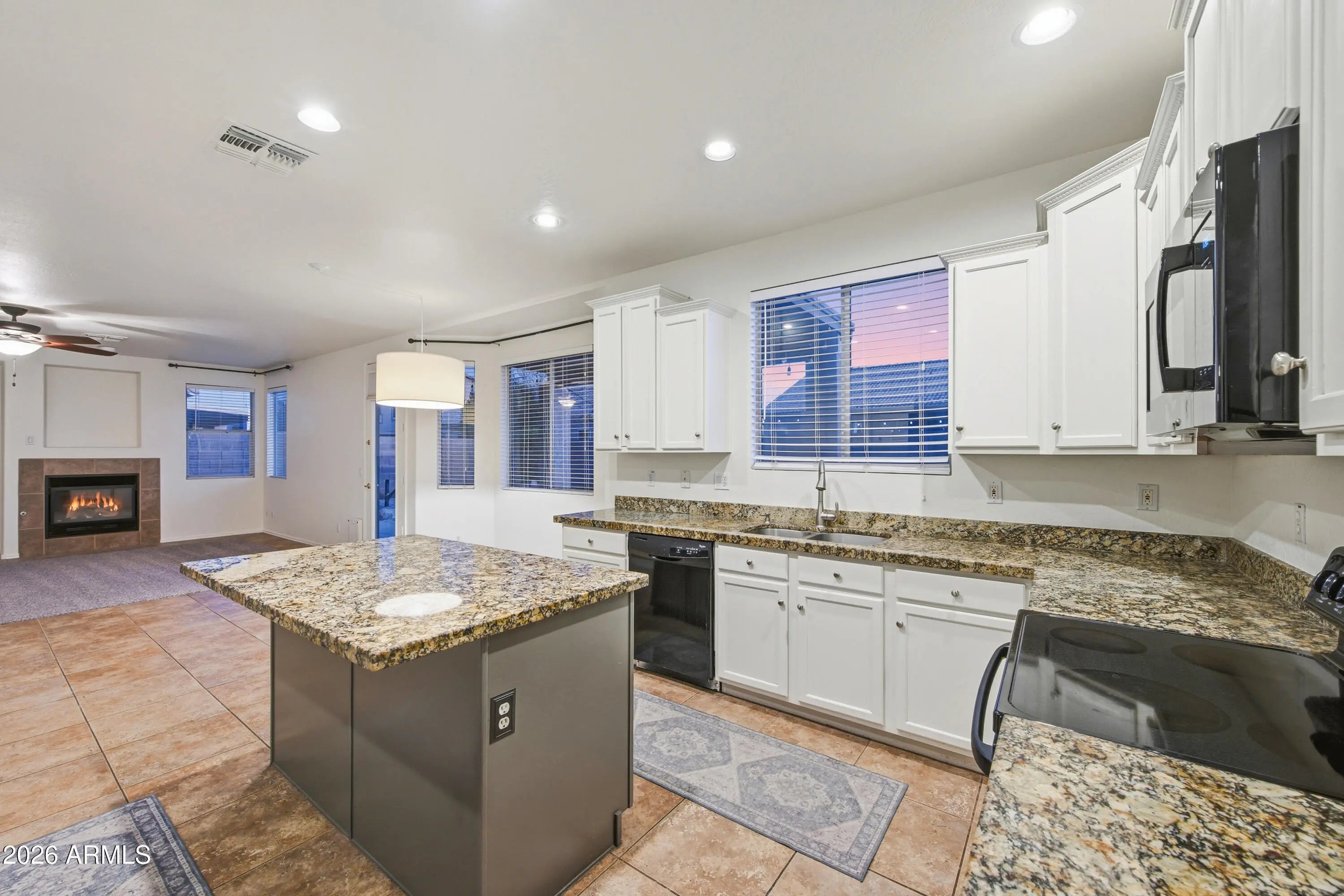 Turn-key beauty in the heart of Gilbert! Perfectly situated minutes from San Tan Village, dining, entertainment, and convenient freeway access, this stunning 4-bedroom, 3-bath home offers space, style, and functionality on a premium corner lot. Step inside to soaring 16-foot ceilings in the formal entry and living/dining room, creating a bright and welcoming first impression. The open-concept family room features a cozy fireplace and flows seamlessly into the kitchen, complete with white staggered cabinetry, granite countertops, and sleek black appliances—ideal for everyday living and entertaining alike. A huge bonus room provides endless flexibility for a game room, home office, gym, or media space. Fresh interior paint and brand-new carpet, along with newer exterior paint and roof, make this home truly move-in ready. The backyard is an entertainer's dream with low-maintenance turf, a sparkling Pebble Tec pool with water feature, and an in-ground spa - perfect for relaxing or hosting gatherings year-round. The corner lot adds extra space and privacy, while the grass and flagstone front yard enhance curb appeal. This home checks every box - updated, spacious, and ideally located - don't miss the opportunity to make it yours!