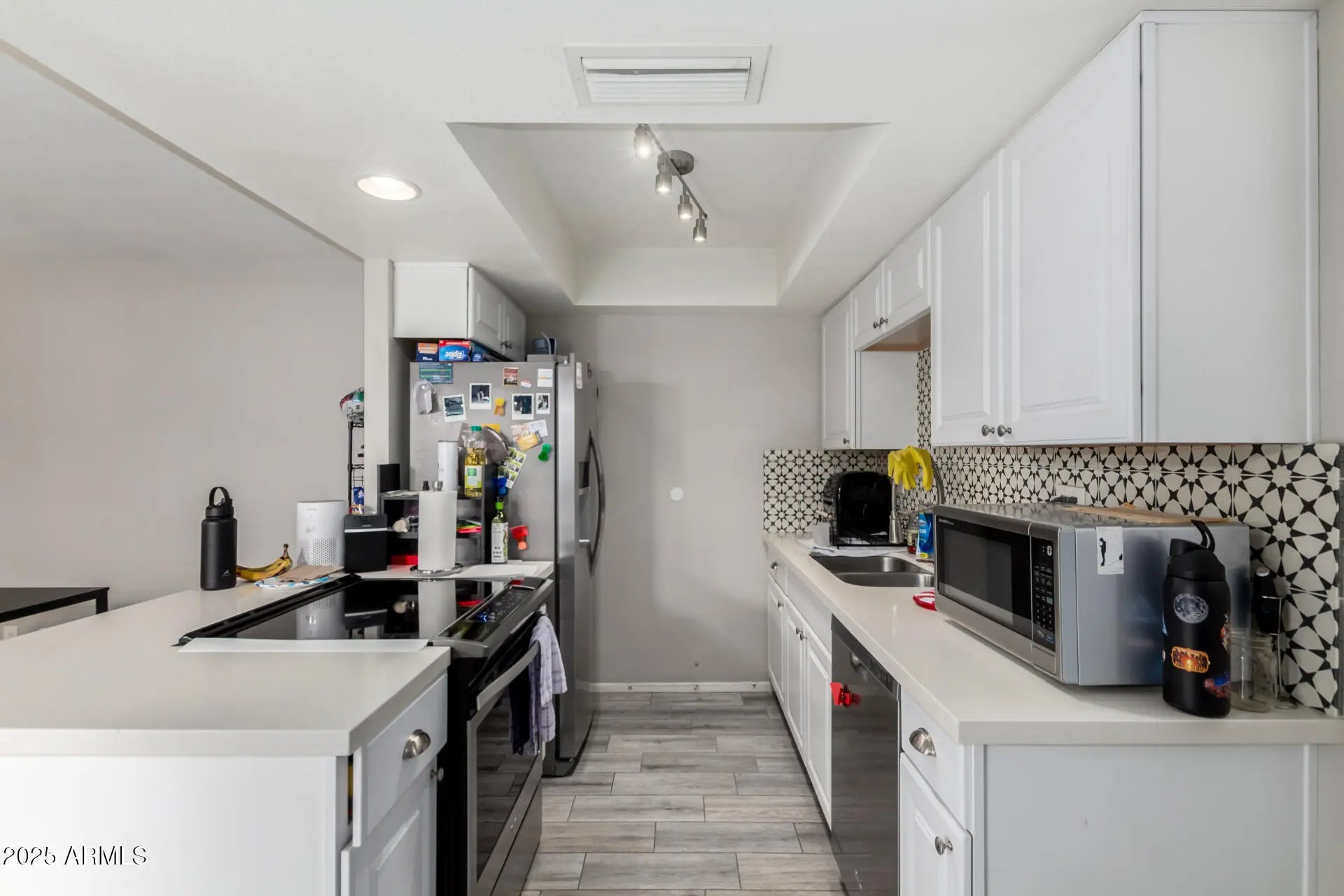 Look no further! Be welcomed by the inviting living room/dining room paired with a soft palette and plank wood tile flooring in all the right places. The adjacent family room offers plush carpeting for added comfort and ideal spot for relaxing or entertaining guests. Savor your meals in the formal dining room. The galley kitchen showcases white cabinets, SS appliances, quartz counters, concrete tile backsplash & a breakfast bar. The primary bedroom includes a two-walk-in closet & private bathroom. Split bedrooms/bathroom provides maximum privacy. Take advantage of the community amenities! Excellent Encanto location! Conveniently located near Freeways, shops, restaurants and more! Don't miss this great opportunity!