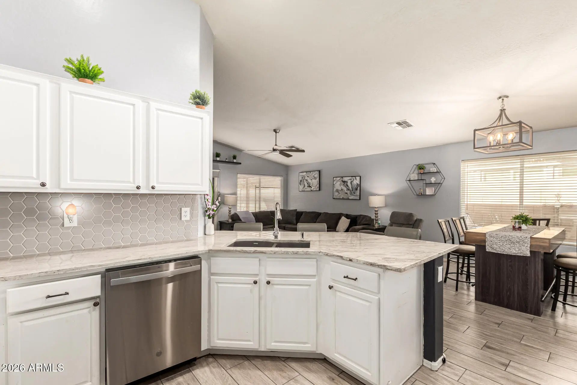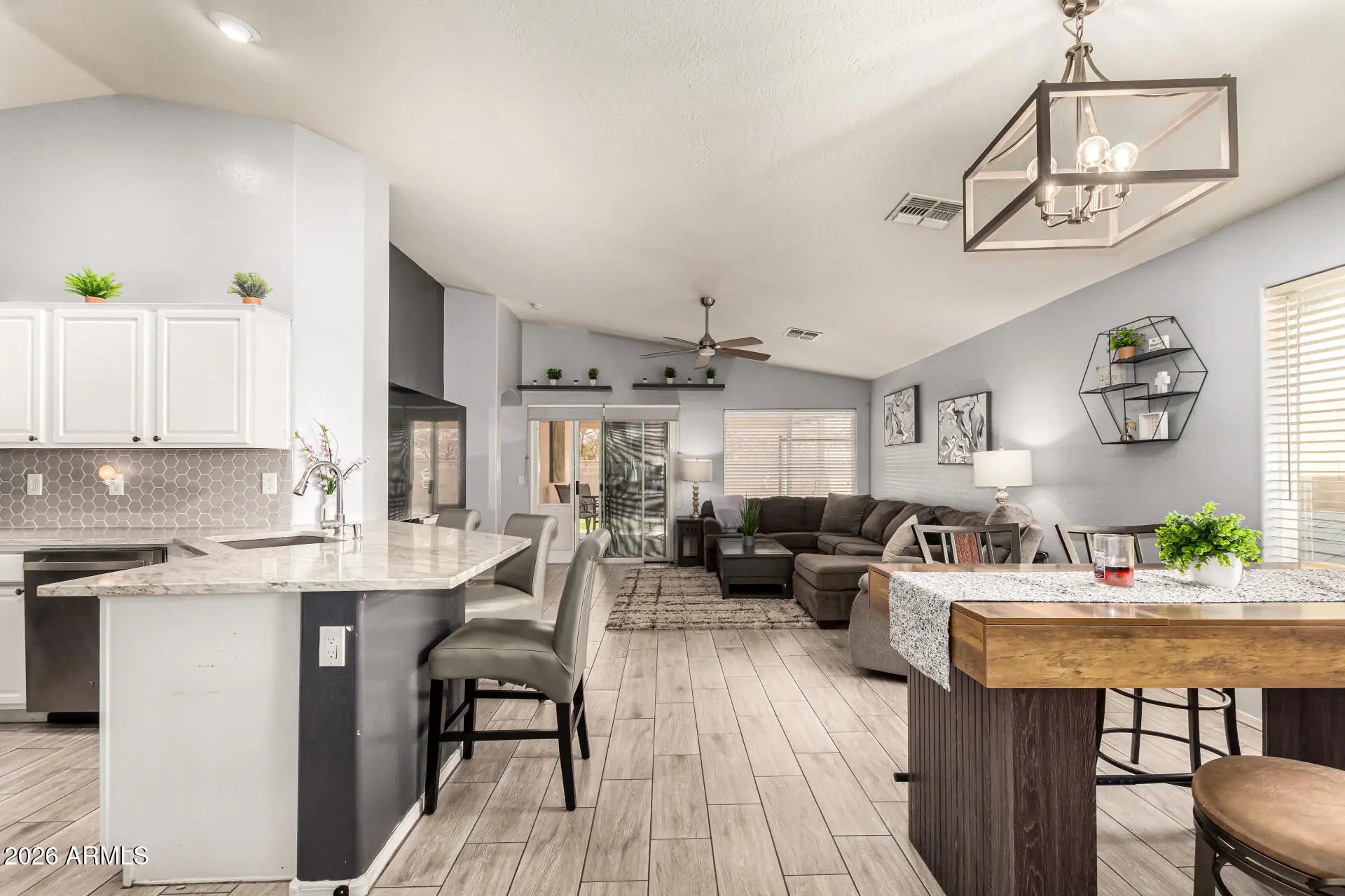 Start creating lasting memories in this inviting single-level home! A 2-car garage welcomes you, leading into a spacious great room highlighted by vaulted ceilings and tile floors in all the right places perfect for everyday living and entertaining alike. The newly remodeled kitchen shines with stainless steel appliances, granite countertops, white cabinetry, a stylish tile backsplash, a pantry, and a breakfast bar ready for casual meals. Retreat to the serene primary suite featuring a chic bathroom with dual sinks, a NEW stand alone soaking tub, walk in shower and a large closet. Outside, the backyard offers a covered patio and plenty of room to design your dream pool oasis. This home has a NEW HVAC as well! Comfortable, stylish, and full of potential. This one truly feels like home!