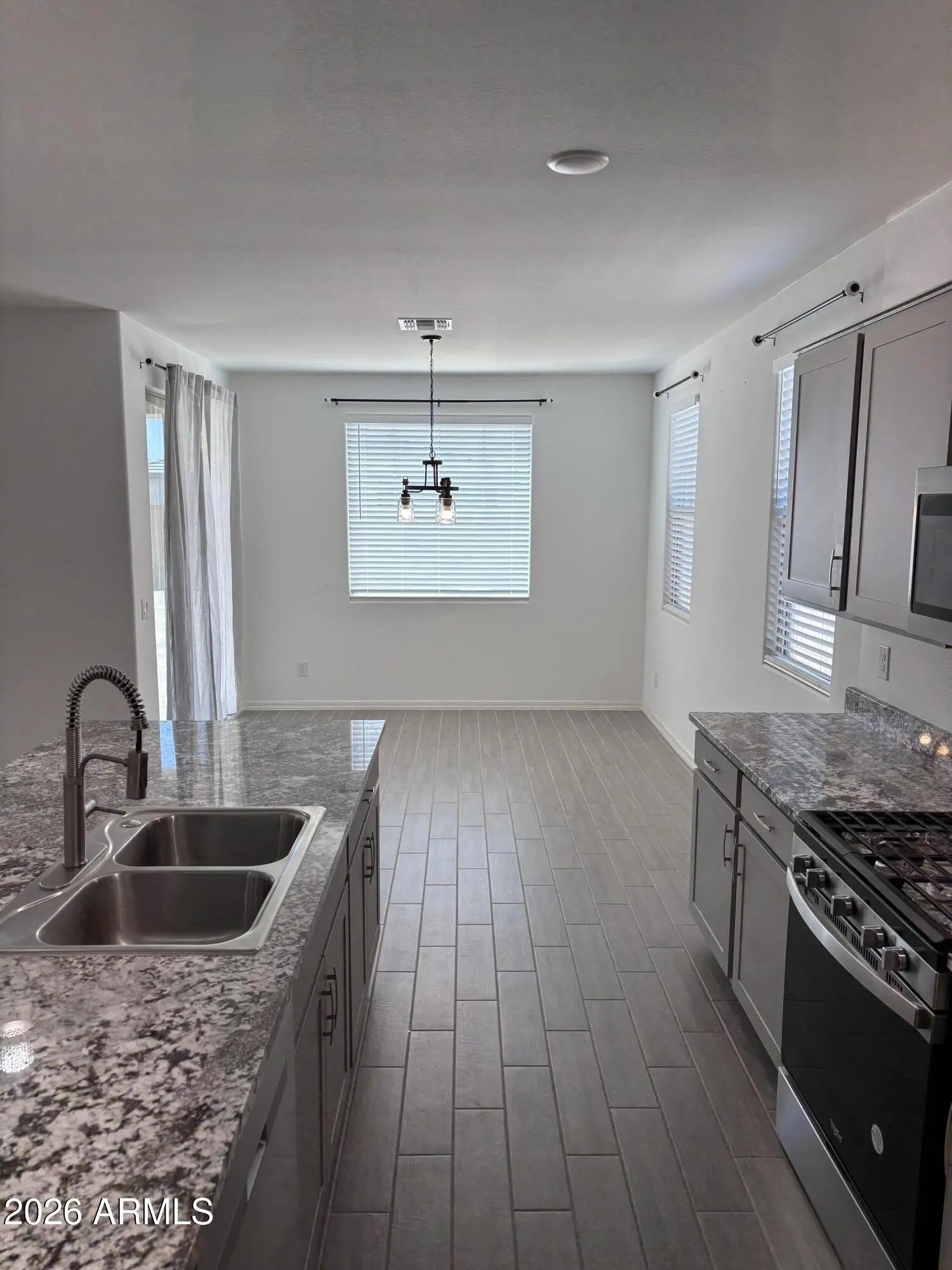 Beautifully maintained home for rent in the desirable Madera community, located in the heart of Queen Creek. This 3-bedroom, 2-bathroom property features a split floor plan, 9-foot ceilings, and a spacious backyard. The upgraded kitchen includes light gray cabinetry, granite countertops, and stainless steel appliances—refrigerator, gas range, dishwasher, and microwave. Interior highlights include wood-look tile flooring in main areas, carpet in bedrooms, ceiling fans throughout, and a dedicated laundry room with washer and dryer included. Community amenities include a pool and spa, fire pit with seating area, multiple parks and ramadas, pickleball courts, and scenic walking trails. $47 non-refundable application fee per adult. No smoking permitted