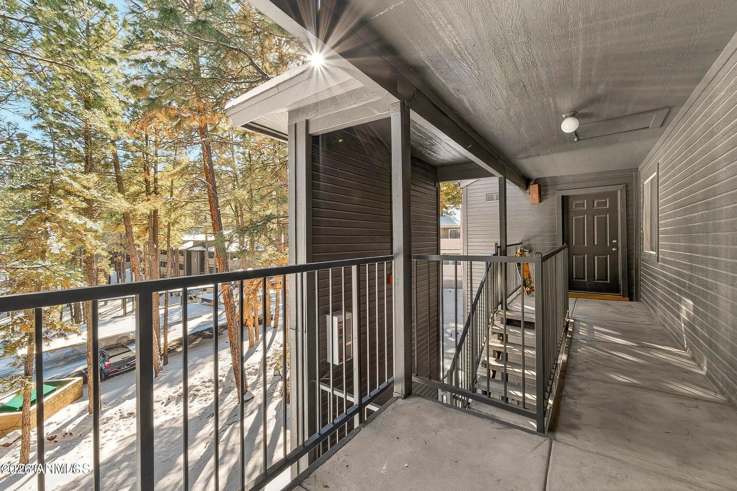 2 bedroom, 2 bathroom condo - Move-in ready and thoughtfully maintained! Fresh interior paint, new water heater (2025), open floor plan, upgraded appliances, beautiful cabinetry, upgraded flooring, and more! Enjoy your private balcony overlooking the tall pines—perfect for morning coffee or relaxing after a long day. The community offers walking paths woven throughout and a clubhouse offering a fitness center, lounging areas, hot tub, and more. Ideally located near NAU, downtown Flagstaff, shopping, dining, and outdoor recreation, this property is a fantastic option for a primary residence, second home, or investment opportunity. One covered parking spot assigned to the condo. Don't miss your opportunity to secure a turnkey property in the heart of Flagstaff.