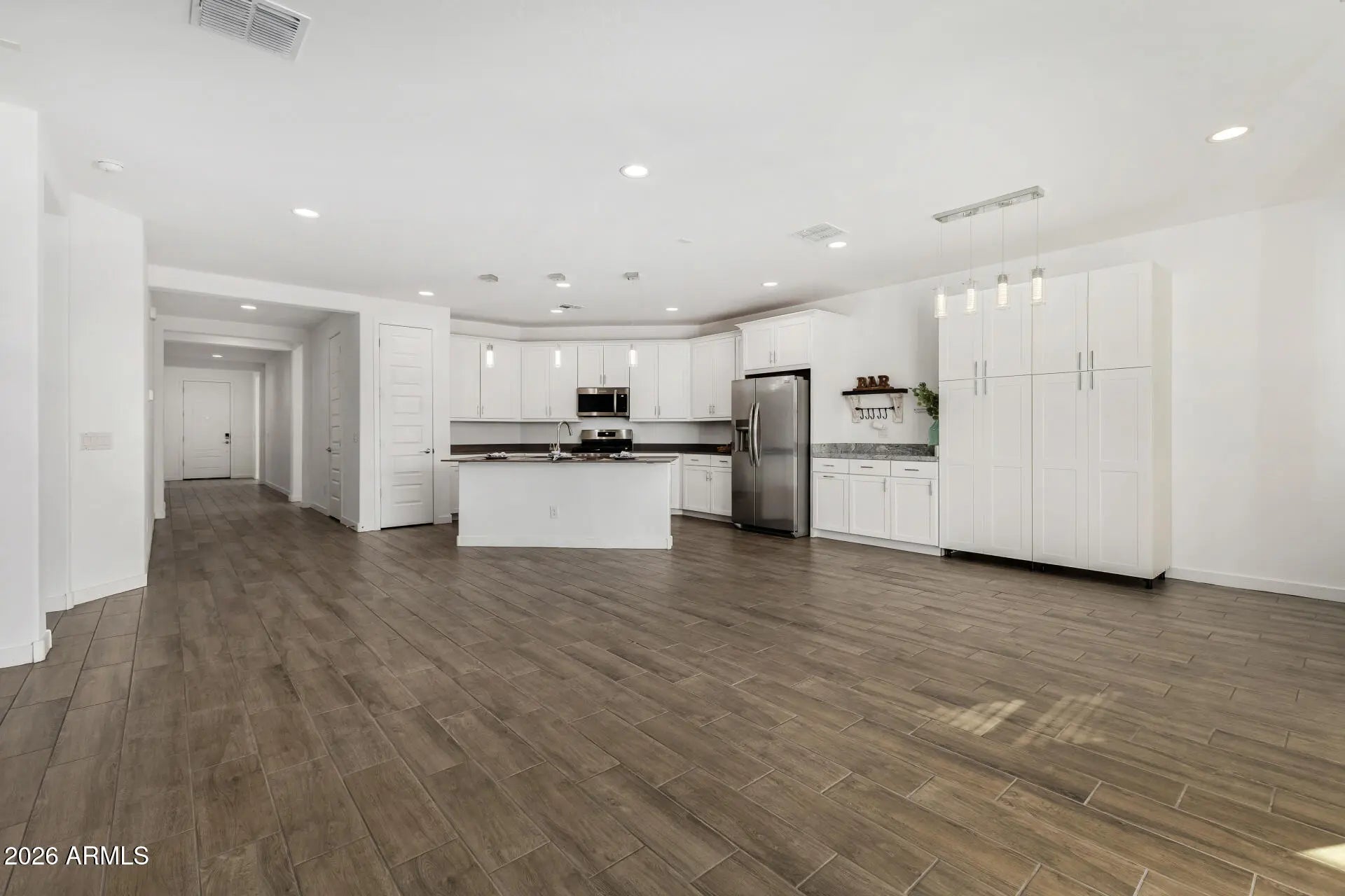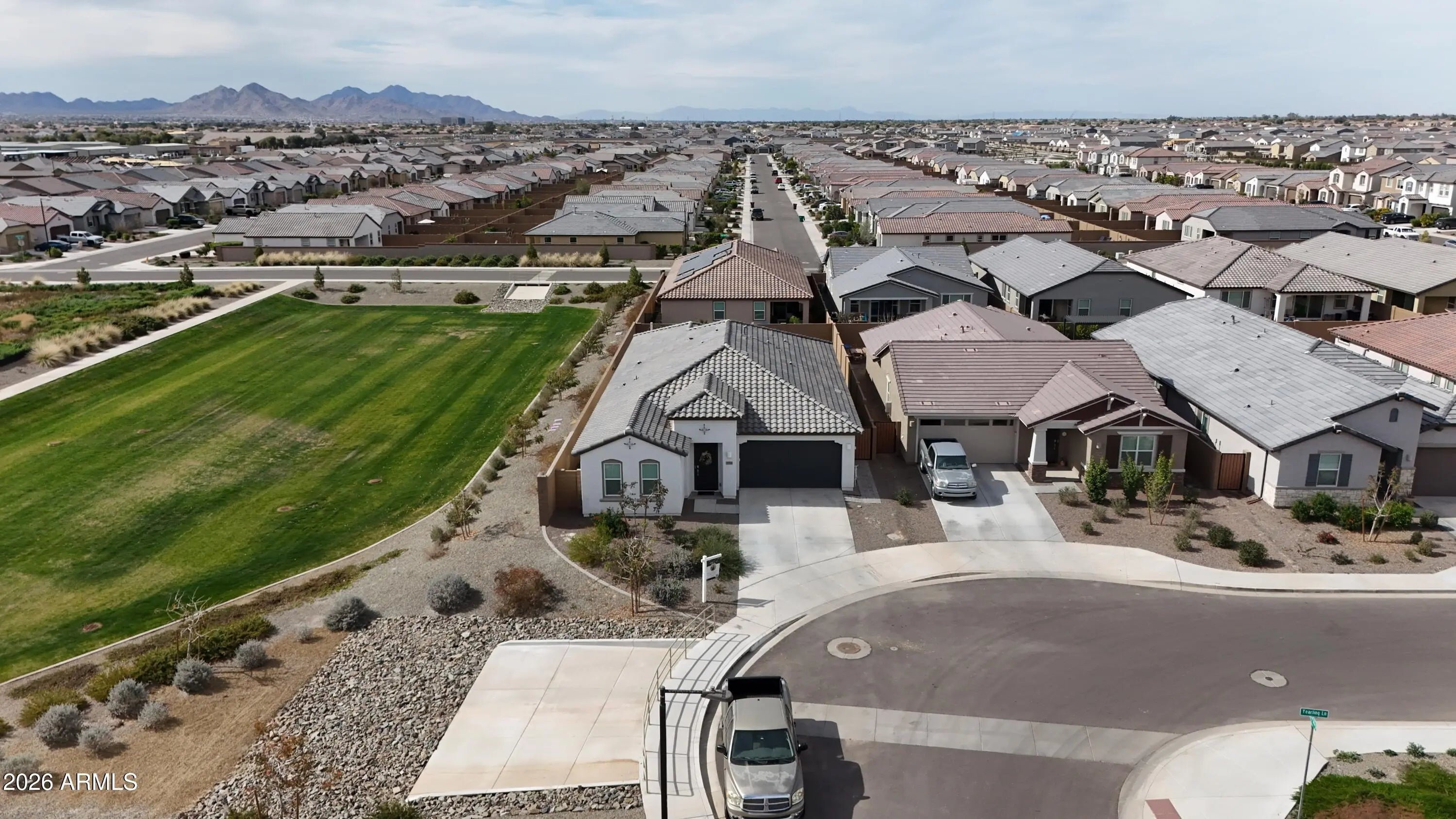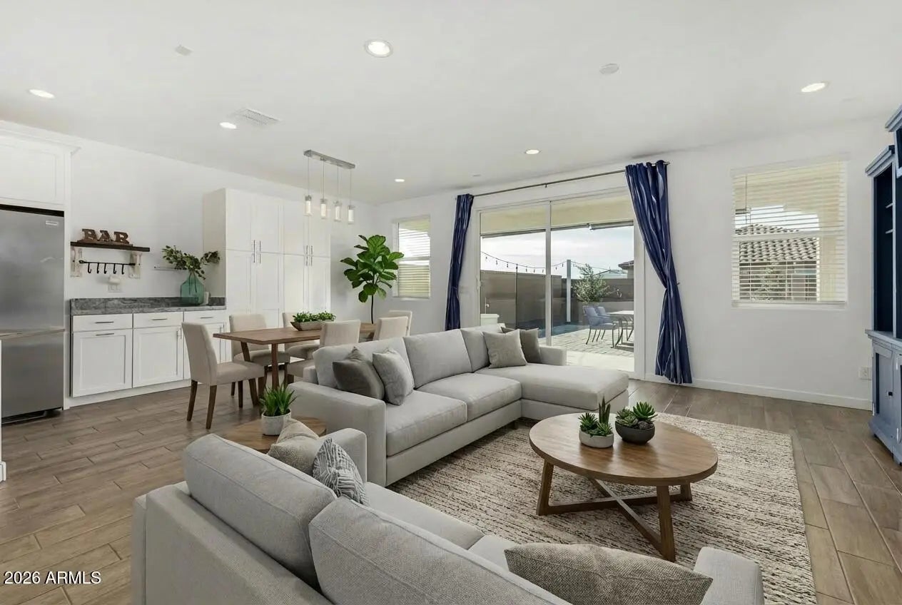 If you want a newer single-story in San Tan Valley that doesn't feel boxed in, this one stands out fast, especially right around that $500k price point. Built in 2023 by Lennar, it's 2,285 sq ft with 4 bedrooms and 3 bathrooms on a corner lot that borders a permanent common area, so your open views stay open, nothing's getting built behind you to block it. You've got mountain views from multiple angles and that wide-sky feel people move to Arizona for. The layout works for real life, split primary, a bedroom and bath setup that's great for guests or a home office, and the main living space gets solid natural light. It's also move-in ready in the way buyers actually care about, all appliances are included, and there's an owner-owned water softener and filtration system already installed. Outside is already finished, turf, pavers, and a covered patio, so you're not walking into a dirt lot and pricing out landscaping later. The lot has an east/west exposure, and because it's tucked in a quieter part of the community with minimal traffic, you get the calm vibe without feeling isolated. And the location is better than people assume when they hear "San Tan Valley." You're not deep out here. You're right on the edge of Queen Creek, so you get the convenience without the Queen Creek price tag. Sprouts and Target are about 5 to 7 minutes away, coffee and quick dining are close, San Tan Regional Park is under 15 minutes for hiking and biking, and Queen Creek staples like the Olive Mill and Schnepf Farm are also less than 10 minutes. Wales Ranch has the amenities people actually use, trails, lake, playgrounds, pickleball and tennis, and the HOA is $90/month, which is pretty reasonable for what you get. Honest tradeoffs, it's still a newer subdivision, so you'll have HOA rules and closer homes than true custom land, but if your priority is a newer home with permanent open space next door, a finished backyard, and a quiet pocket that keeps you close to the action, this one checks the boxes.
