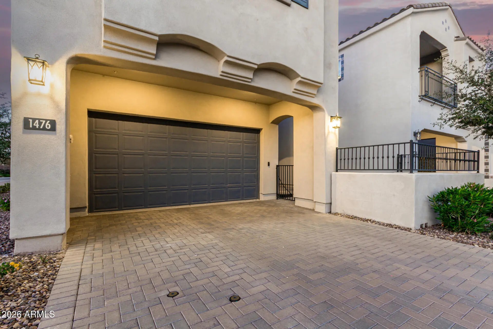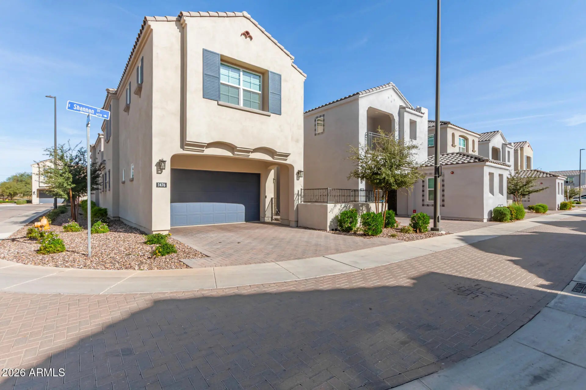 Coveted corner lot home in the intimate Andalucia Villas! Enjoy a great curb appeal, low-maintenance landscaping, pavers, and a gated courtyard. Inside, an open floor plan with tall ceilings, recessed lighting, and wood-look floors flows seamlessly for easy entertaining. The sophisticated white kitchen showcases staggered cabinets, tile backsplash, quartz countertops, SS appliances, and a large island. Powder room on the main level, plush carpet throughout the second floor, and bathrooms in each bedroom are worth mentioning. The large primary suite features an ensuite with a dual vanity. The side patio offers a versatile space for leisure or fun. What's not to like? Close to shops & restaurants, easy access to freeways, and short commute to downtown Gilbert & Chandler. Act now!