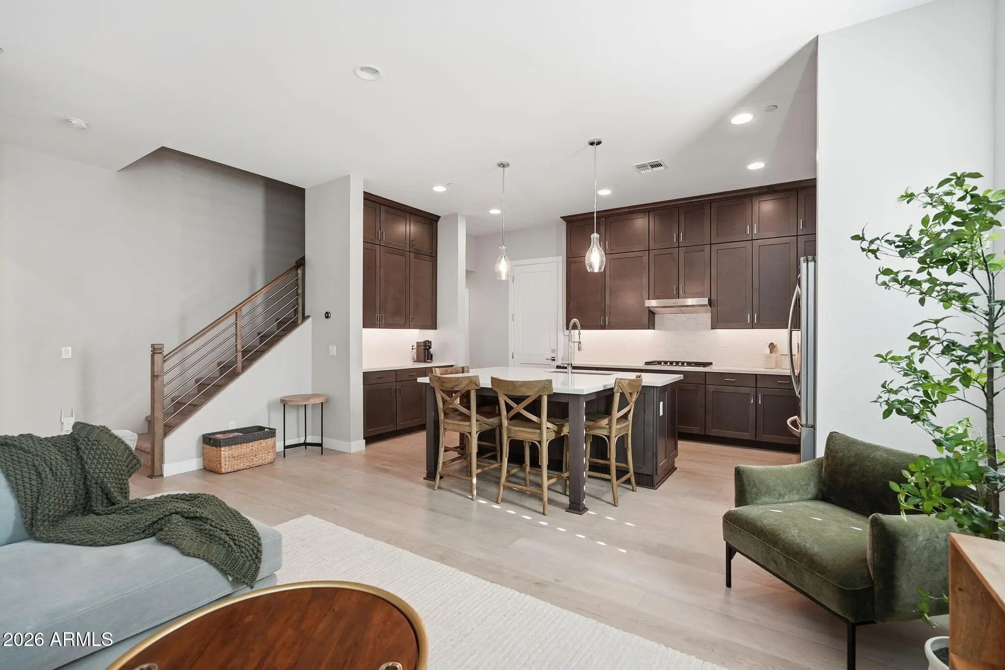 Located in the heart of Scottsdale, this exceptional end-unit home offers one of the best locations in the community—adjacent to the pool for ultimate convenience & enhanced privacy. The thoughtfully designed interior features a stainless steel gas cooktop & wall oven, modern engineered wood flooring, stacked cabinetry, and stylish fixtures plus lighting throughout. Enjoy incredible extra storage in an oversized two-car garage, along with energy-efficient upgrades including spray foam insulation, a tankless gas water heater & a 16 SEER HVAC system with Nest thermostats. Plus a premier full home water filtration system. Hudson East places you at the center of it all, with easy access to the Loop 101 and just minutes from downtown Scottsdale's renowned shopping, dining, and nightlife!