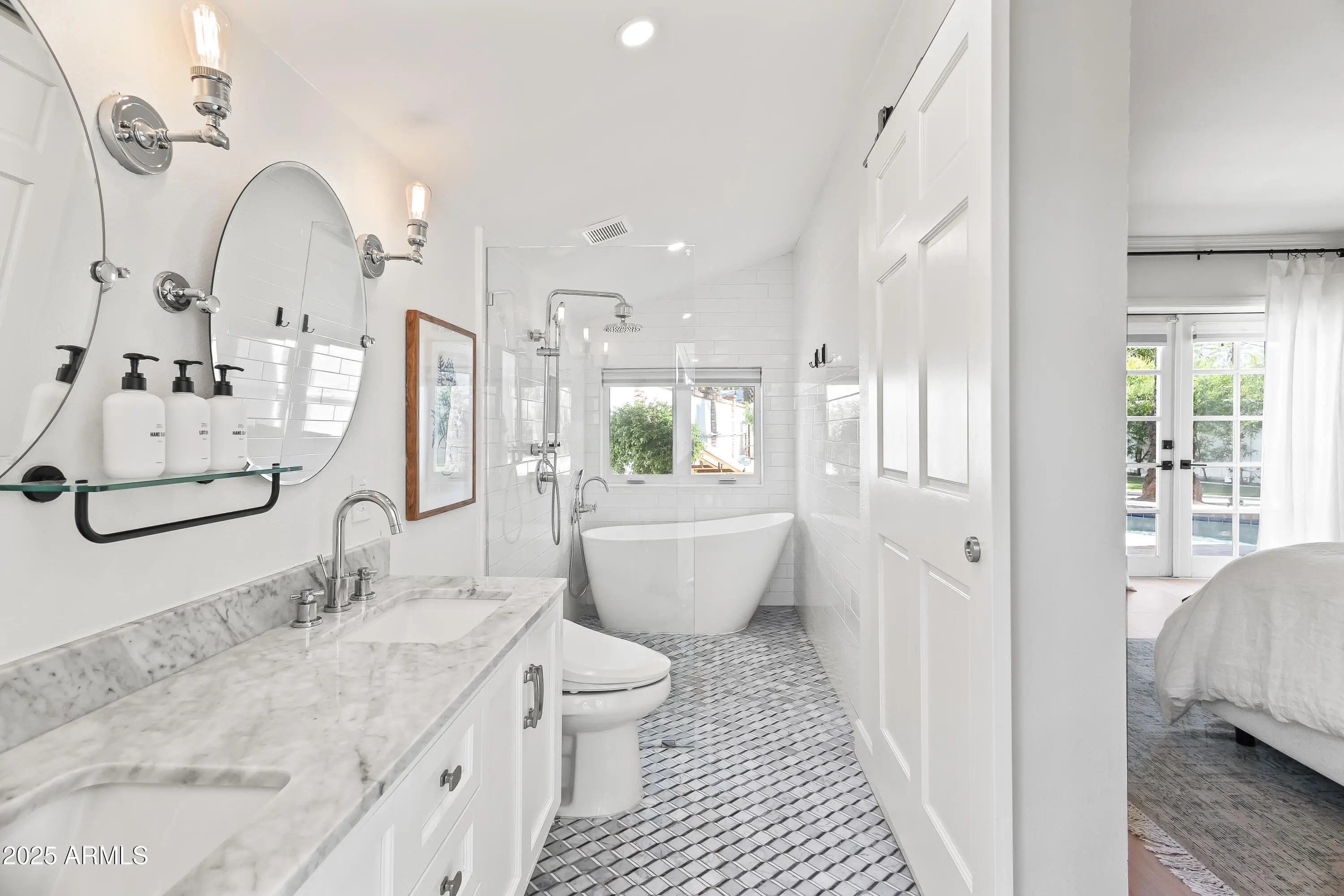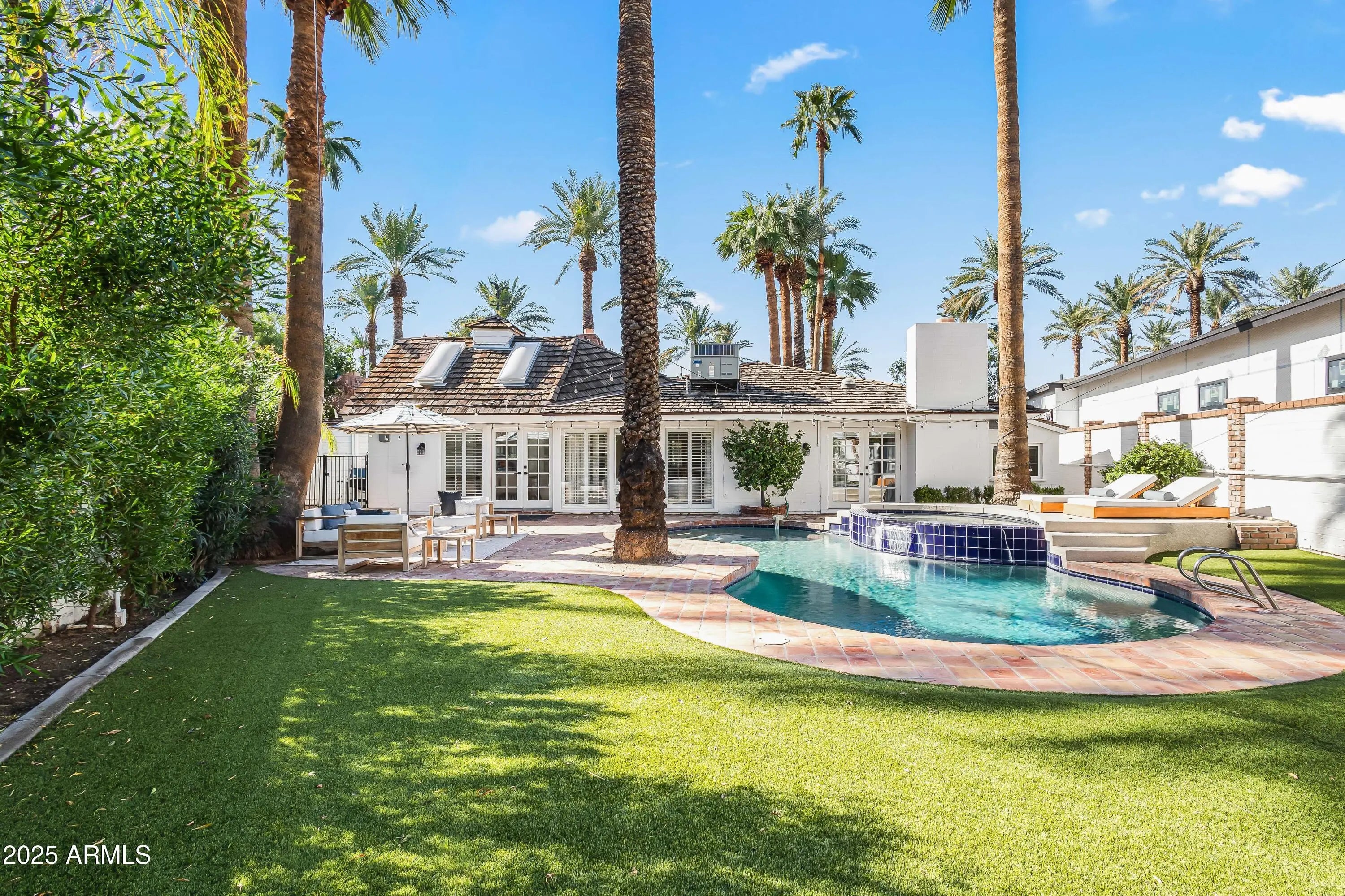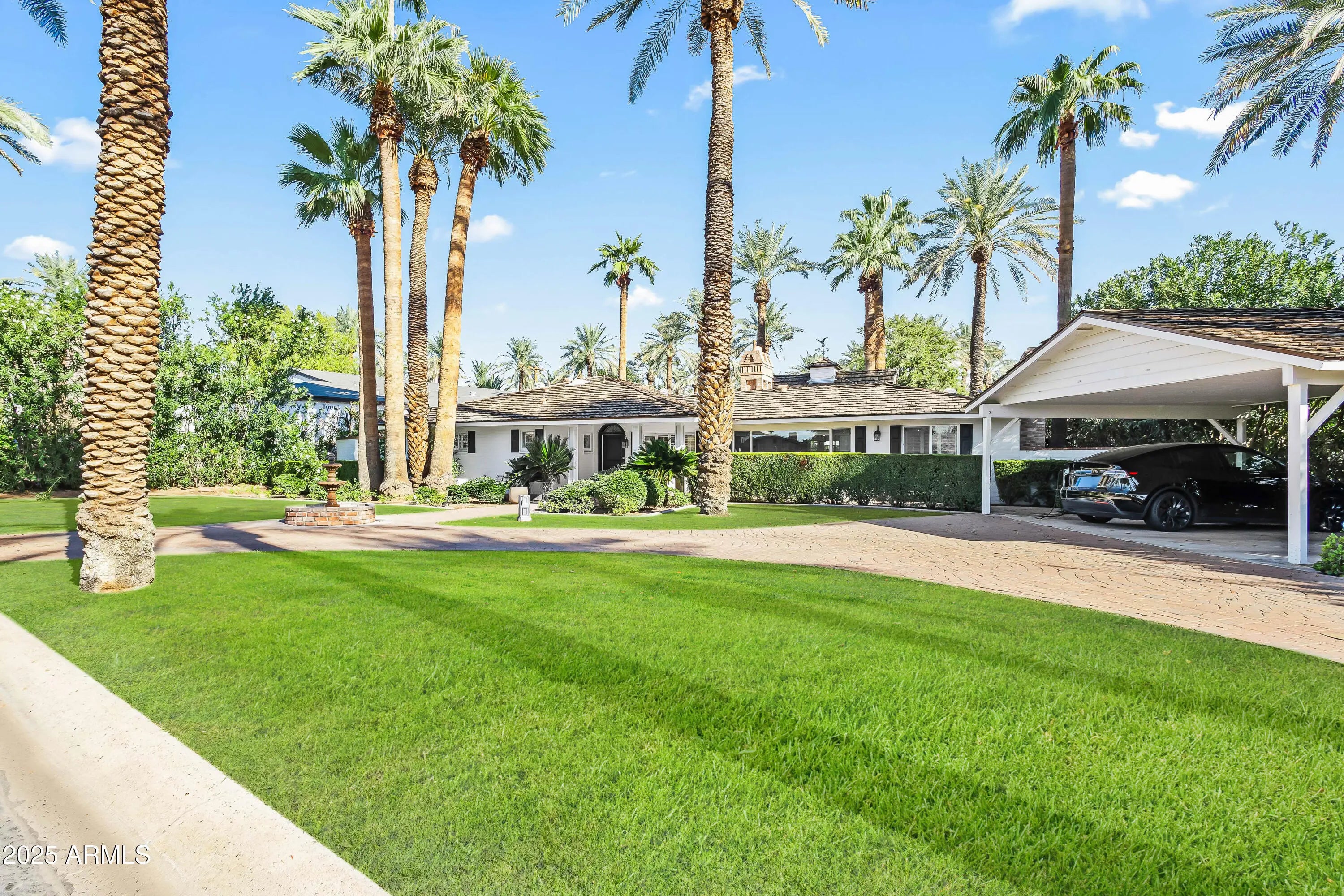Enjoy stunning Camelback Mountain views in the highly sought-after Hopi School District with this classic mid-century ranch that perfectly blends timeless character with modern updates. Featuring four bedrooms, this home is ideal as a family residence, vacation retreat, or investment property. Step inside to a bright, open layout accented by warm wood floors and abundant natural light streaming through multiple French doors. The heart of the home is the beautifully remodeled kitchen, thoughtfully positioned between the formal dining area and inviting family room with a cozy gas fireplace—perfect for entertaining or everyday living. The primary suite offers a true retreat, boasting a spa-inspired bath with dual vanities, a walk-in shower, freestanding soaking tub, and private access to the backyard. Step outside to your private oasis featuring a heated pool and spa, mature palm trees, lush landscaping, and multiple serene outdoor spaces ideal for relaxing or hosting gatherings. A Tesla charging station adds modern convenience. Enjoy the best of Arcadia livingwalk, bike, or drive to your favorite local shops, dining, and entertainment, all just minutes away.