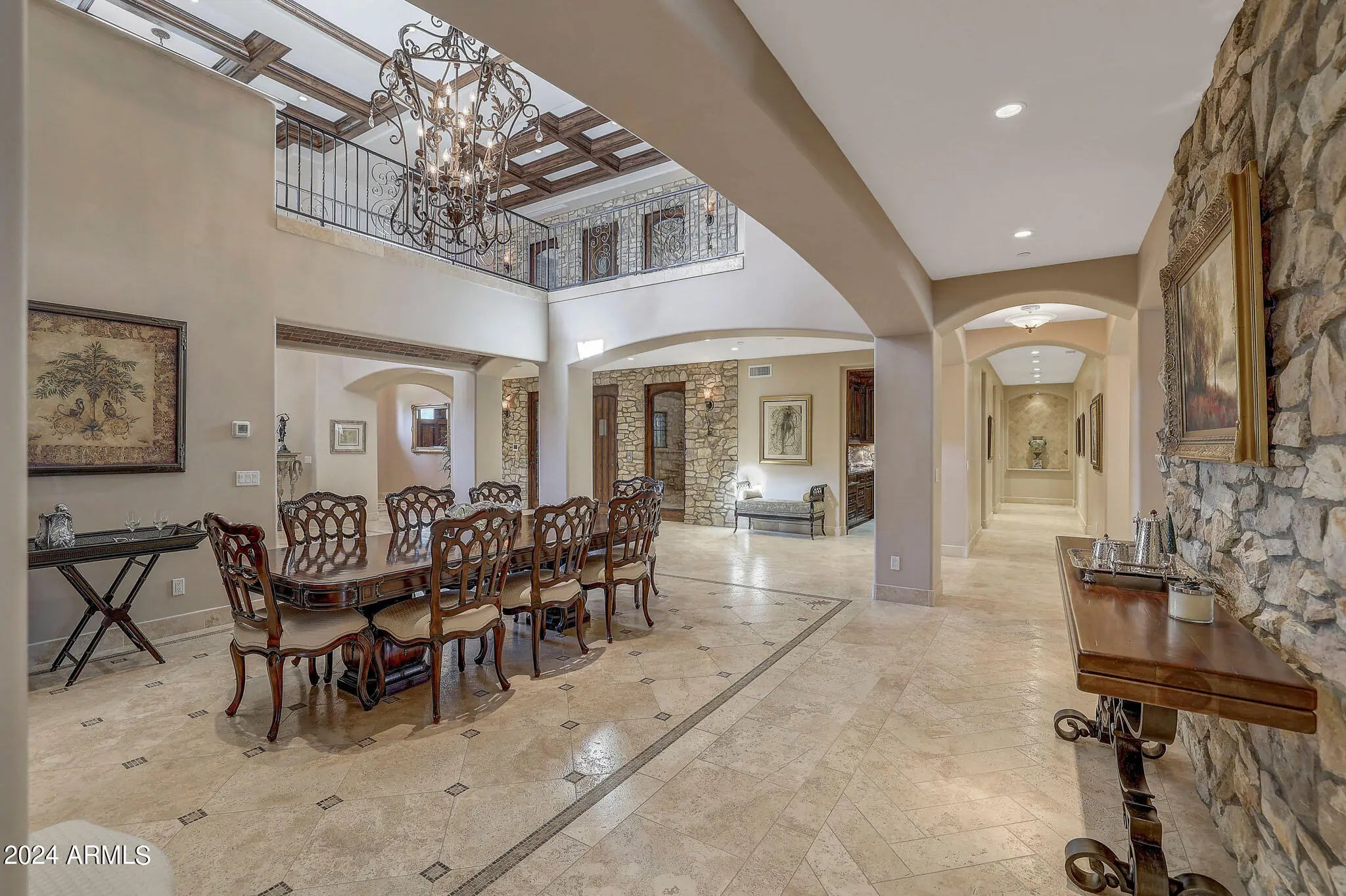 SELLER FINANCE OPTION AVALIABLE! Welcome to the palatial Casa Bella Vino estate, a 9,577 sq. ft. luxury residence nestled in the heart of Paradise Valley. This exceptional home offers a thoughtfully designed layout with a 6,758 sq. ft. main level and a 2,819 sq. ft. upper level, seamlessly connected by a private elevator with a 950-pound capacity, ensuring effortless access throughout the home. Highlights include a temperature-controlled 6-car garage, with the ability to accommodate up to 12 vehicles, ideal for the discerning car enthusiast. The executive office is a true retreat, featuring a covered patio, cigar ventilation system, en-suite bathroom, intricate carved wood detailing, and a secure safe room. At the heart of the home lies a striking two-story wine cellar with capacity for 830 bottles, perfect for collectors and entertainers alike. The primary suite showcases breathtaking Camelback Mountain views, a private terrace, dual fireplaces, and a versatile adjacent room adaptable to your lifestyle needs. The gourmet kitchen is outfitted with Wolf appliances, three ovens, two dishwashers, a walk-in refrigerator, and a butler's pantry. Additional living spaces include a media room complete with a wet bar, ice maker, wine refrigerator, and surround sound. The resort-style backyard is designed for year-round enjoyment, featuring a 9-foot-deep pool, therapeutic spa, putting green, built-in BBQ, and a ramada equipped with a heater, fireplace, and TV. Every detail of Casa Bella Vino has been curated to deliver elevated comfort, privacy, and sophisticationan extraordinary opportunity to experience true luxury living in Paradise Valley.