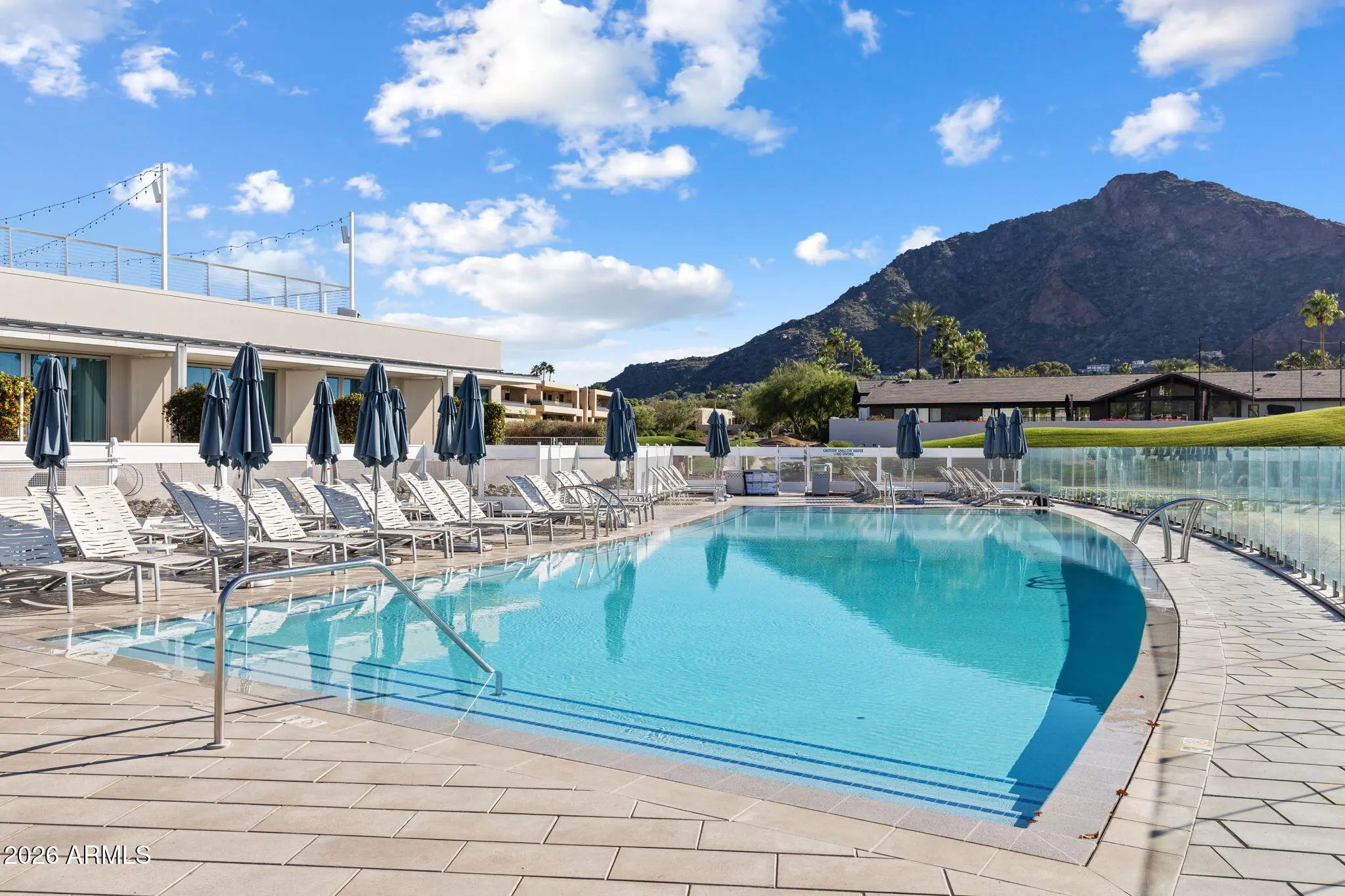 An rare luxury villa nestled within the prestigious Mountain Shadows Resort, offering refined single-level, first-floor living in a guard-gated luxury community with 24-hour security and concierge services. This private, energy-efficient residence features a heated private pool, southern exposure, and massive, unobstructed views of iconic Camelback Mountain, delivering a truly elevated desert lifestyle. A private courtyard entry welcomes you into an open, flowing floor plan designed for seamless indoor/outdoor living. The elegant entry opens to a spacious great room with 10-foot ceilings, limestone floors, Sierra Pacific casement windows, and 9-foot bi-fold doors leading to an 800+ SF private patio with indoor and outdoor fireplaces. The chef's kitchen is both striking and functional, featuring a massive island, 48" Wolf dual-fuel range, 48" Sub-Zero refrigerator, wine bottle tower, Asko dishwasher, and distinctive custom cabinetry. Additional highlights include Savant home automation, motorized Lutron shades, custom closets, and professional interior design throughout. The residence offers three beautifully designed bedrooms and three bathrooms, along with a private two-car driveway with enough space to park four cars and guest parking spaces right across the home, and epoxy-finished garage equipped with a ChargePoint electric vehicle charger, and motorized overhead storage. Modern efficiency is enhanced by a tankless gas water heater. Residents enjoy exclusive access to world-class resort amenities to Mountain Shadows Resort with two pools, championship golf course, tennis courts, the Sanctuary Spa, a 4,500-square-foot fitness center with group classes, and on-site artisanal diningall within one of Paradise Valley's most coveted luxury communities.
