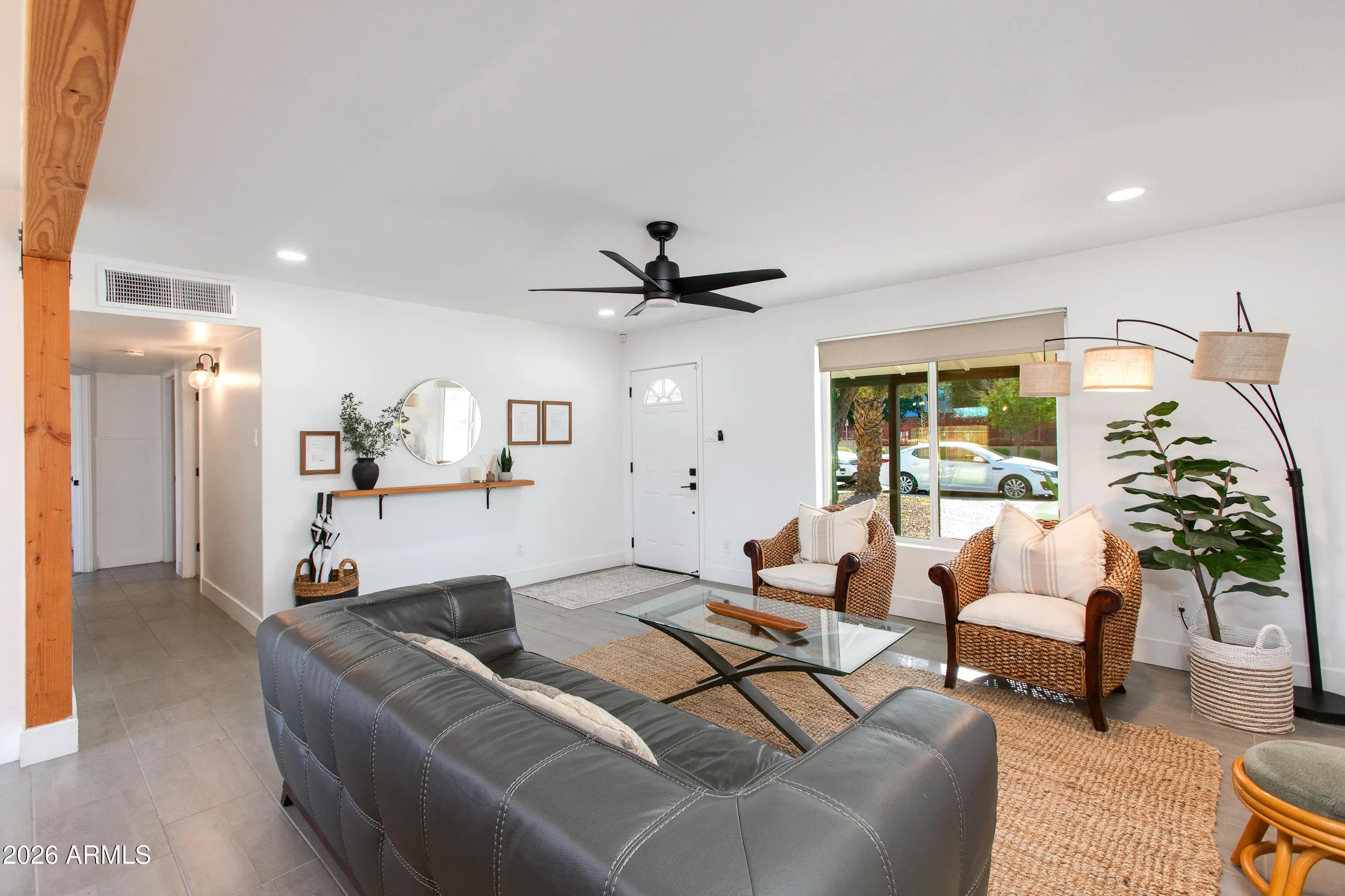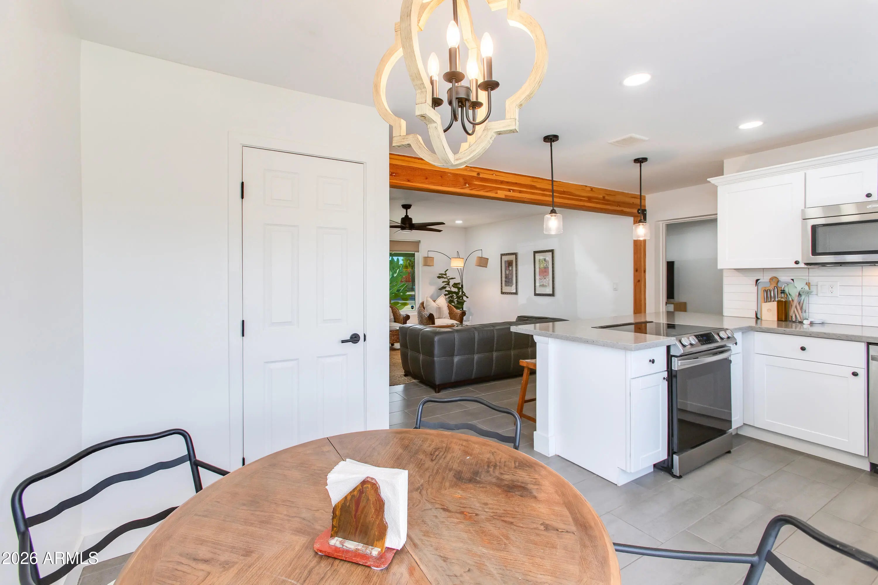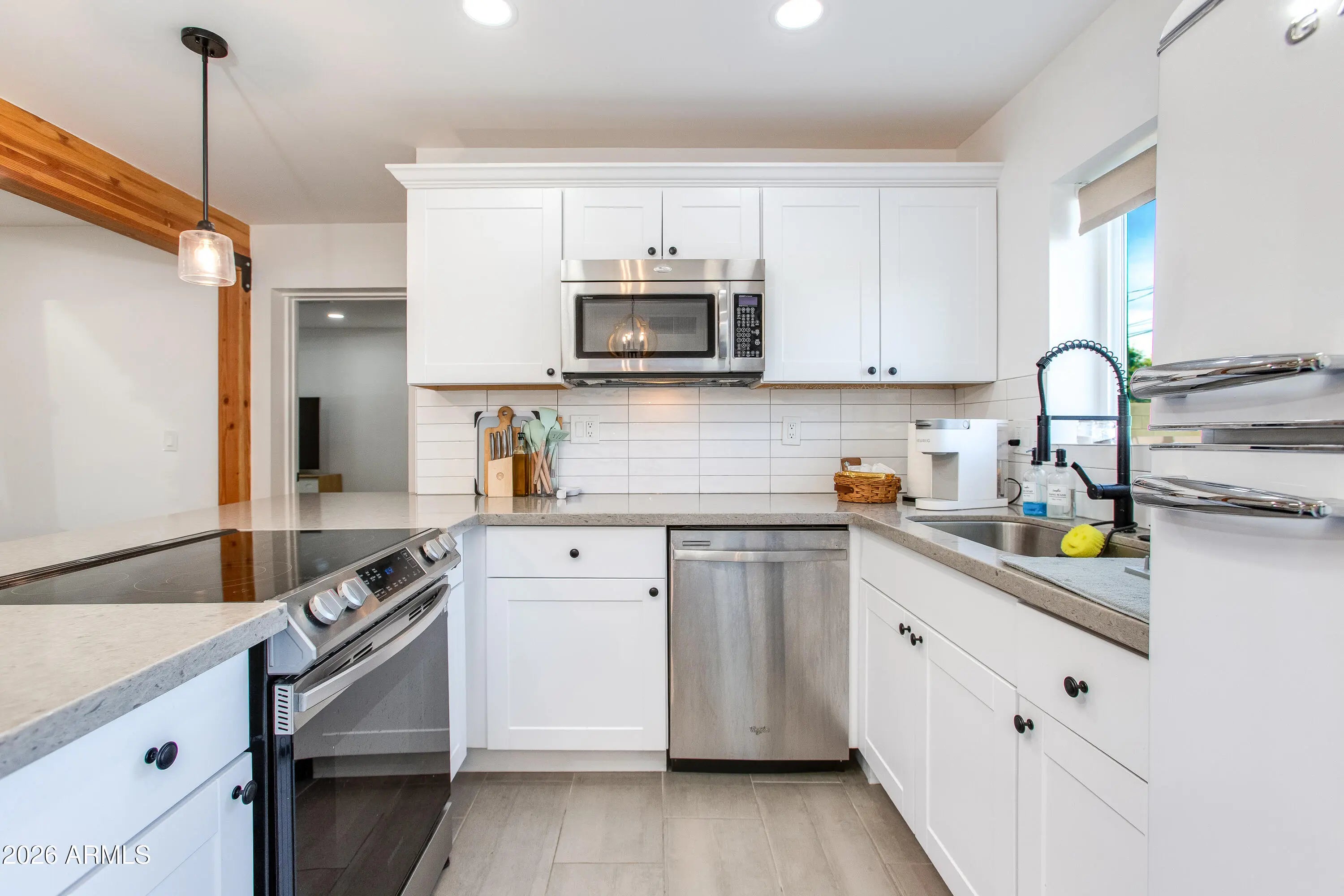 This home is conveniently located directly across the street from the prestigious Grand Canyon University. It is fully remodeled, has 4 bedrooms, 2.5 bathrooms and completely finished in 2022. This beautiful home features gorgeous ceramic tile throughout the main living areas and plush carpet in the bedrooms. The upgraded kitchen showcases white shaker cabinets, stainless steel appliances, subway tile backsplash, quartz countertops, and stylish light fixtures. The bathrooms have been fully upgraded with hardware and tiled showers. The large backyard is perfect for entertaining and has an RV gate! This home is fantastic as a primary residence or rental home.