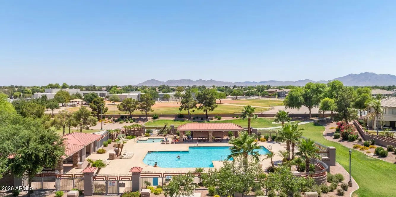 Beautiful five-bedroom, four-bath home located in the highly desirable Villages at Queen Creek. Offering over 2,200 square feet of thoughtfully designed living space, this home features a spacious open floor plan with living areas both upstairs and downstairs. The full kitchen comes complete with all appliances and opens to generous living and dining spaces, perfect for entertaining. The home boasts large bedrooms throughout, including a spacious primary suite with vaulted ceilings, a full five-piece bathroom, and a large walk-in closet. Step outside to a fully landscaped backyard ideal for relaxing or entertaining. Residents enjoy exceptional community amenities including a golf course with driving range, tennis and pickleball courts, clubhouse, fitness center, playgrounds,