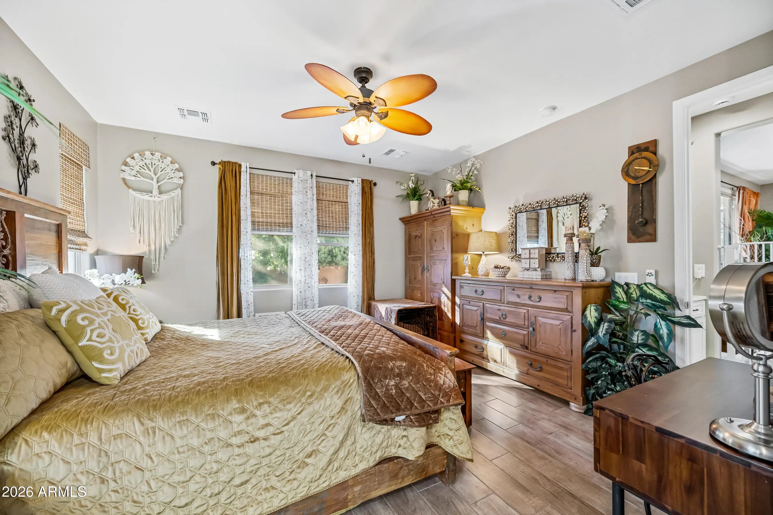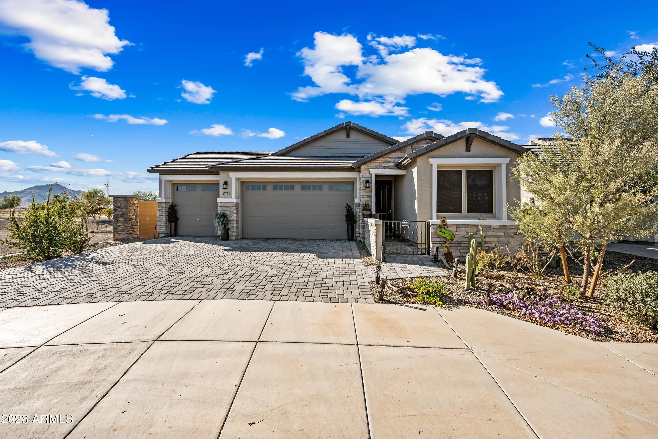 Welcome to this beautifully upgraded four-bedroom, three-bath Queen Creek residence offering a rare and highly sought-after multi-generational floor plan. Designed for flexibility and privacy, this home includes a separate mother-in-law suite, ideal for extended family, guests, or even a private home office, making it one of the most versatile layouts in the area. With over $37,000 in upgrades, this home blends modern style with long-term functionality. Inside, you'll find tile flooring throughout the great room and four bedrooms, a fresh two-tone designer paint scheme, and six solar tubes that fill the home with natural light while improving energy efficiency. All three bathrooms have been enhanced with granite countertops, delivering an elevated, move-in-ready feel throughout.. The heart of the home opens into a spacious, well-designed living area perfect for everyday living and entertaining. Whether you're hosting family or relaxing after a long day, the thoughtful layout offers both openness and privacy in all the right places. Outside, the property shines with a resort-style backyard framed by three large mature Moon Valley trees, expanded landscaping, and decorative rock throughout the backyard and side yard. The covered patio is equipped with pull-down sun shades, creating an inviting indoor-outdoor living space that can be enjoyed year-round. Full-home sun screens and thoughtful electrical upgrades further enhance comfort and energy efficiency. Located less than one mile from Queen Creek's top-tier restaurants, shopping, and entertainment, this home delivers the perfect balance of convenience, lifestyle, and privacy in one of the East Valley's most desirable communities. 25796 S 224th Place is not just a home, it's a turnkey, multi-generational living solution in the heart of Queen Creek.