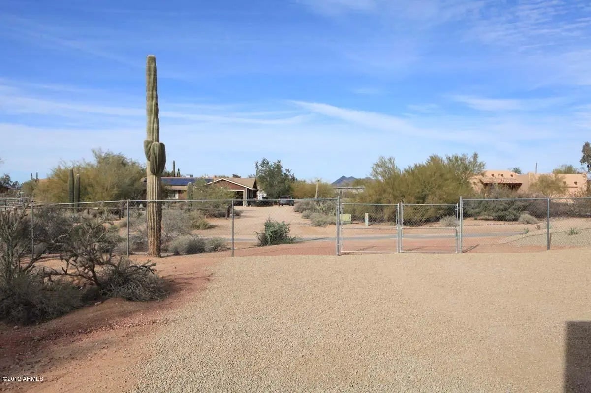 ATTACHED GUEST QUARTERS PLUS 3 HORSE STABLE & ARENA. The main portion of the home provides 4 bdrms and 2 baths, granite counters, stainless appliances, refrigerator, washer, dryer. Solid surface flooring thru-out home. A large family room leads to wrap around patio, where watching beautiful AZ sunsets winds down the day. Joint Family room separates the 2 bd, 1 ba with step in shower in guest house. The double gate or the door from the family room offers access to extended slab area and 2 car garage. Lots of fenced parking for other vehicles and toys. Fenced Horse area on property with stable offers an easy ride into the serene desert.