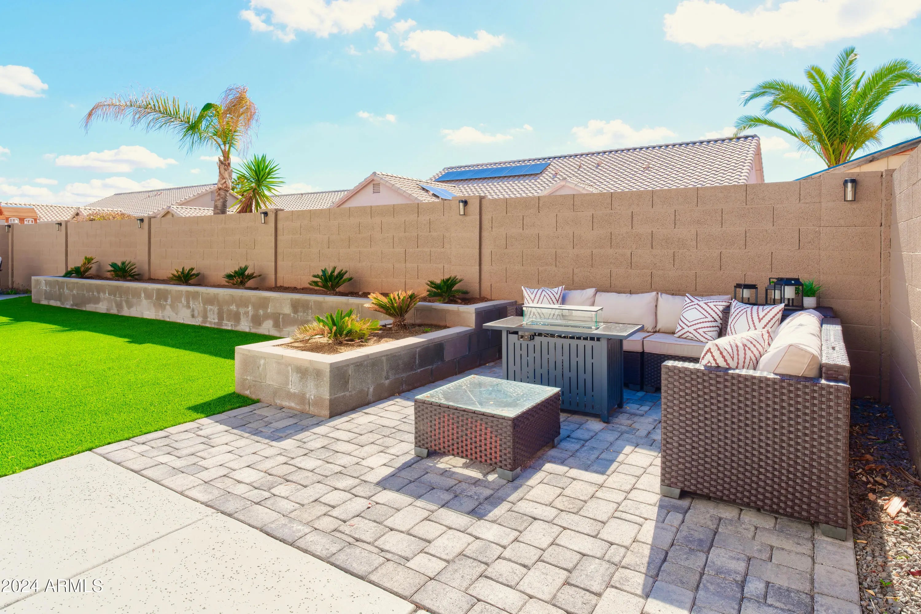 This elegant 3-bed, 2-bat home offers a bright, open living space with soaring ceilings and modern decor. The fully furnished property features a spacious and inviting living room area and well-equipped kitchen. The master suite offers a king-size bed and spa-like ensuite, with additional comfortable bedrooms for guests or family. Outside, enjoy a low-maintenance backyard with brand new turf and pavers. Located near shopping, dining, and more, this turnkey home includes an attached garage, washer & dryer.
