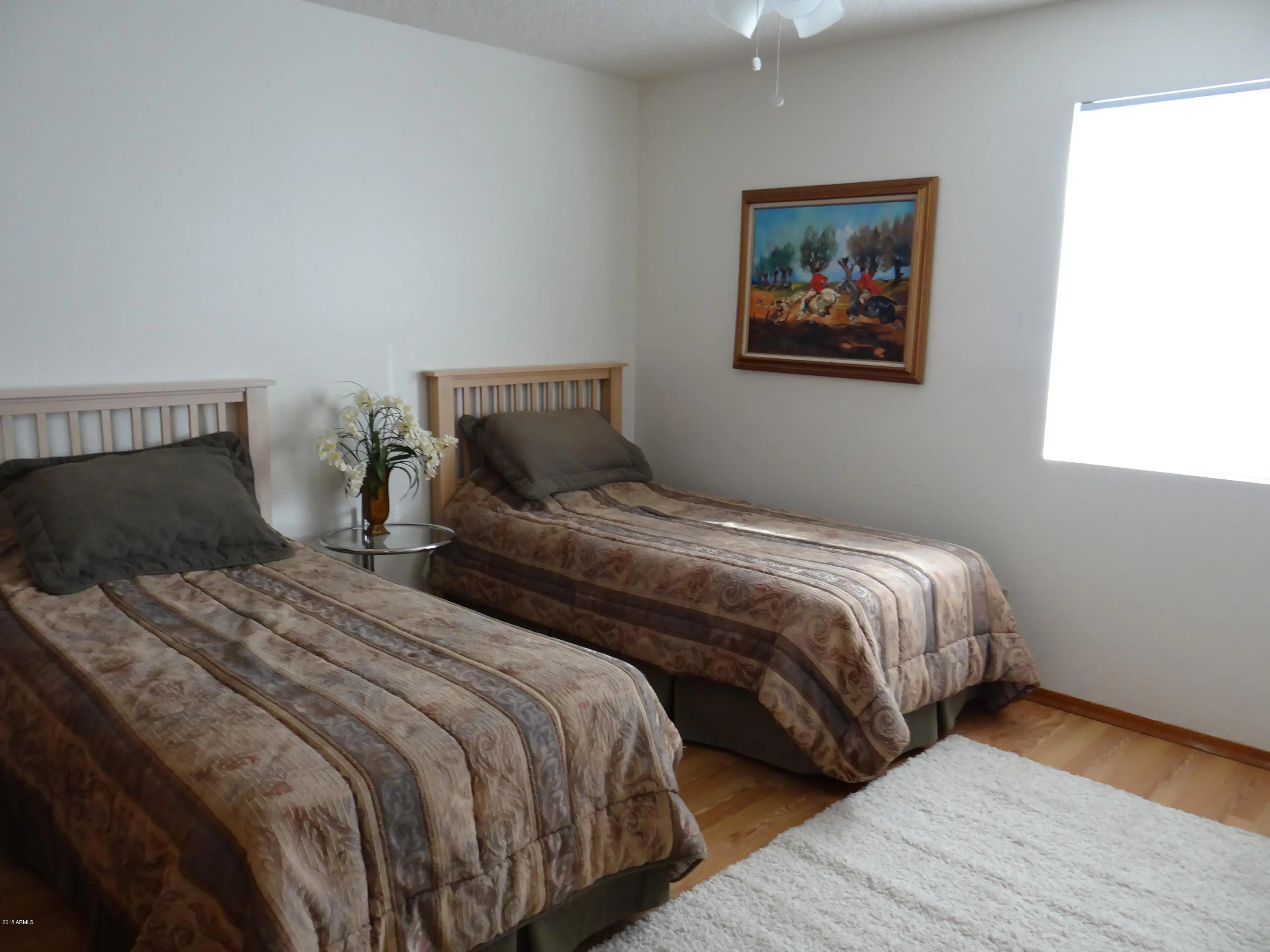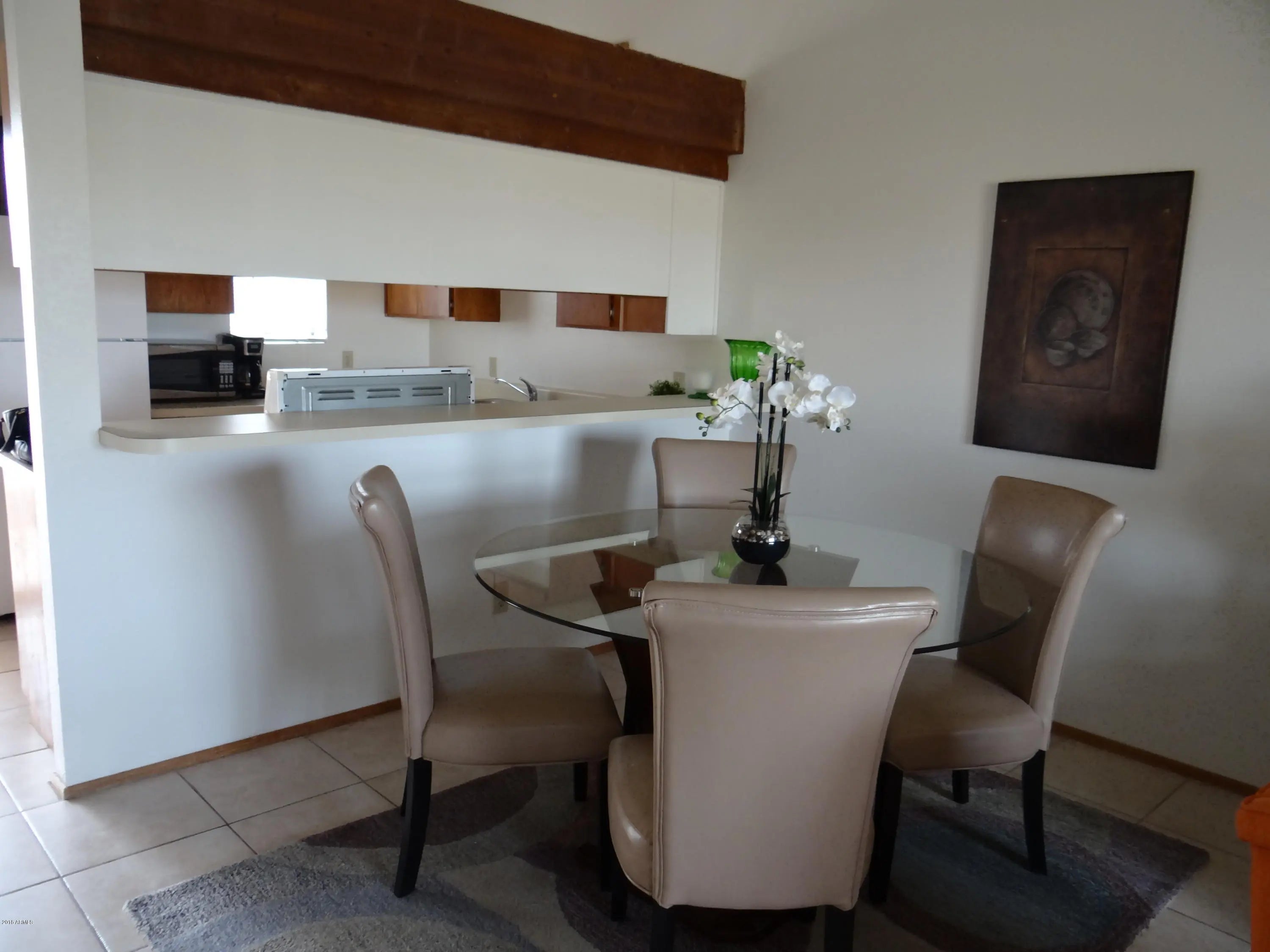 This inviting light and bright, furnished 2nd level condo (all on one level) has 2 master suites which includes a refrigerator, washer and dryer. It is close to our Town amenities of dining, shopping and entertainment. To the rear of the condo you will find a private balcony overlooking huge wash & beautiful mountains views. This nice 7 unit complex sits in a quiet neighborhood backing up to the open space/wash. Ready for the OCCUPANCY .