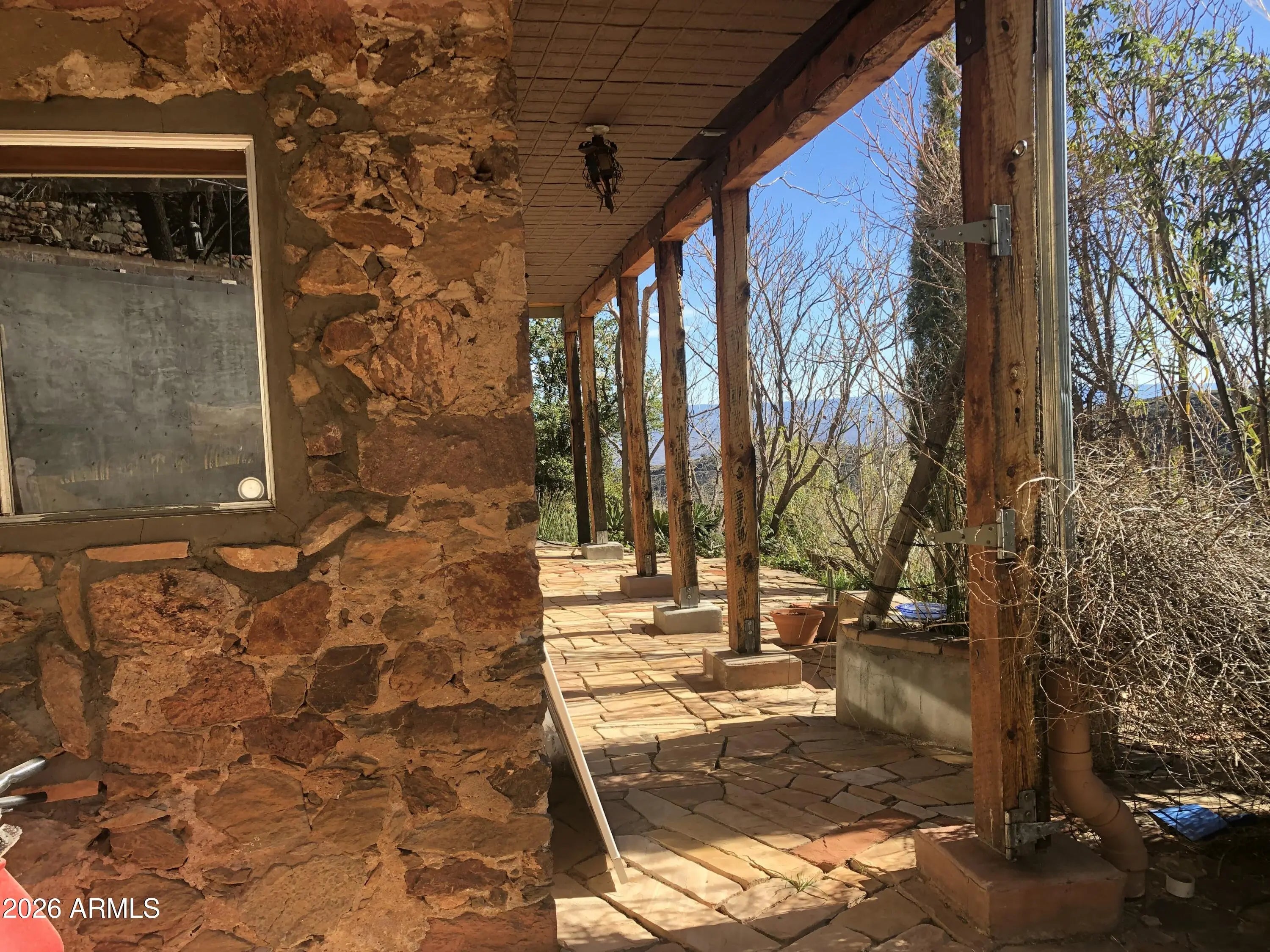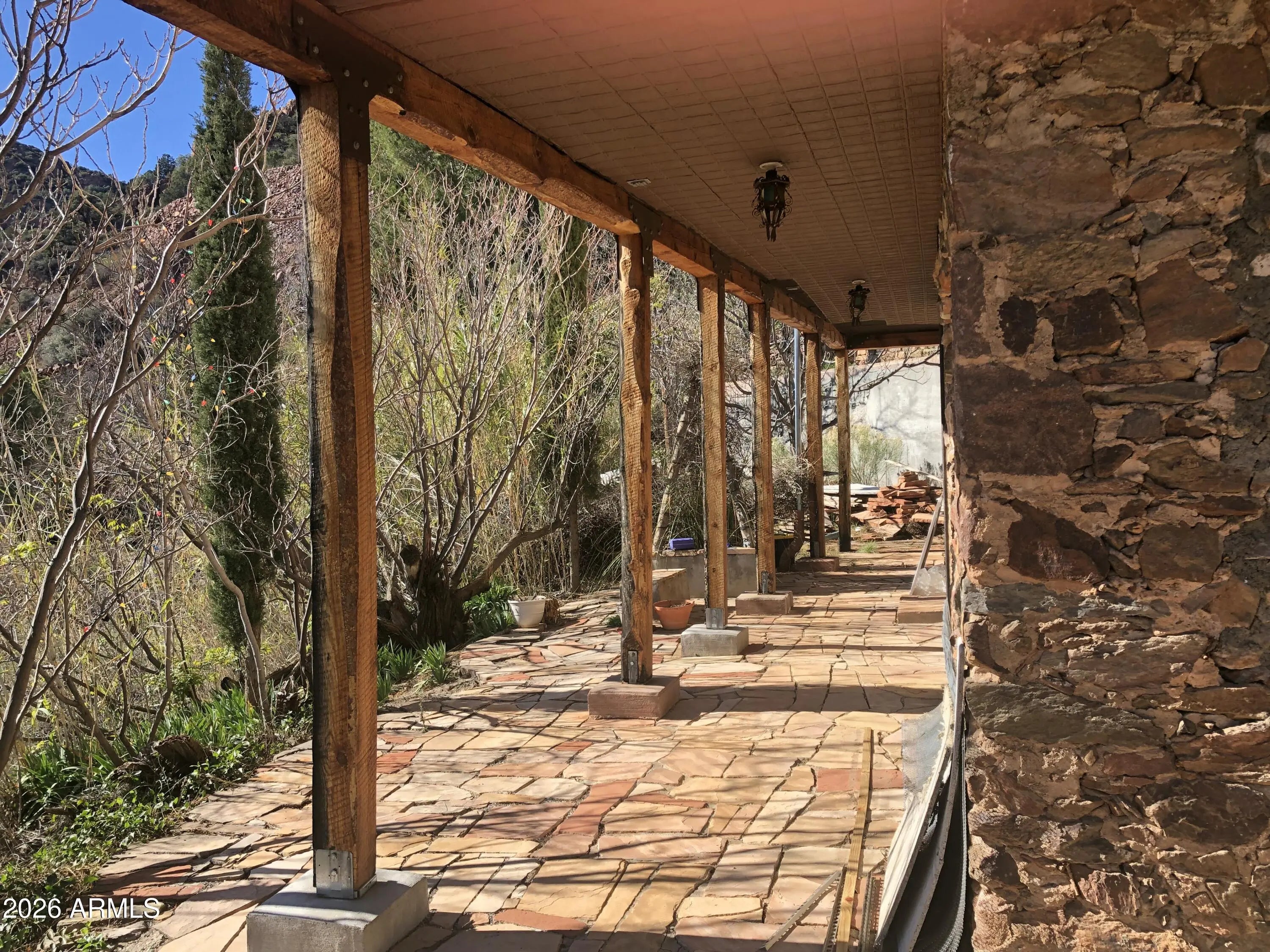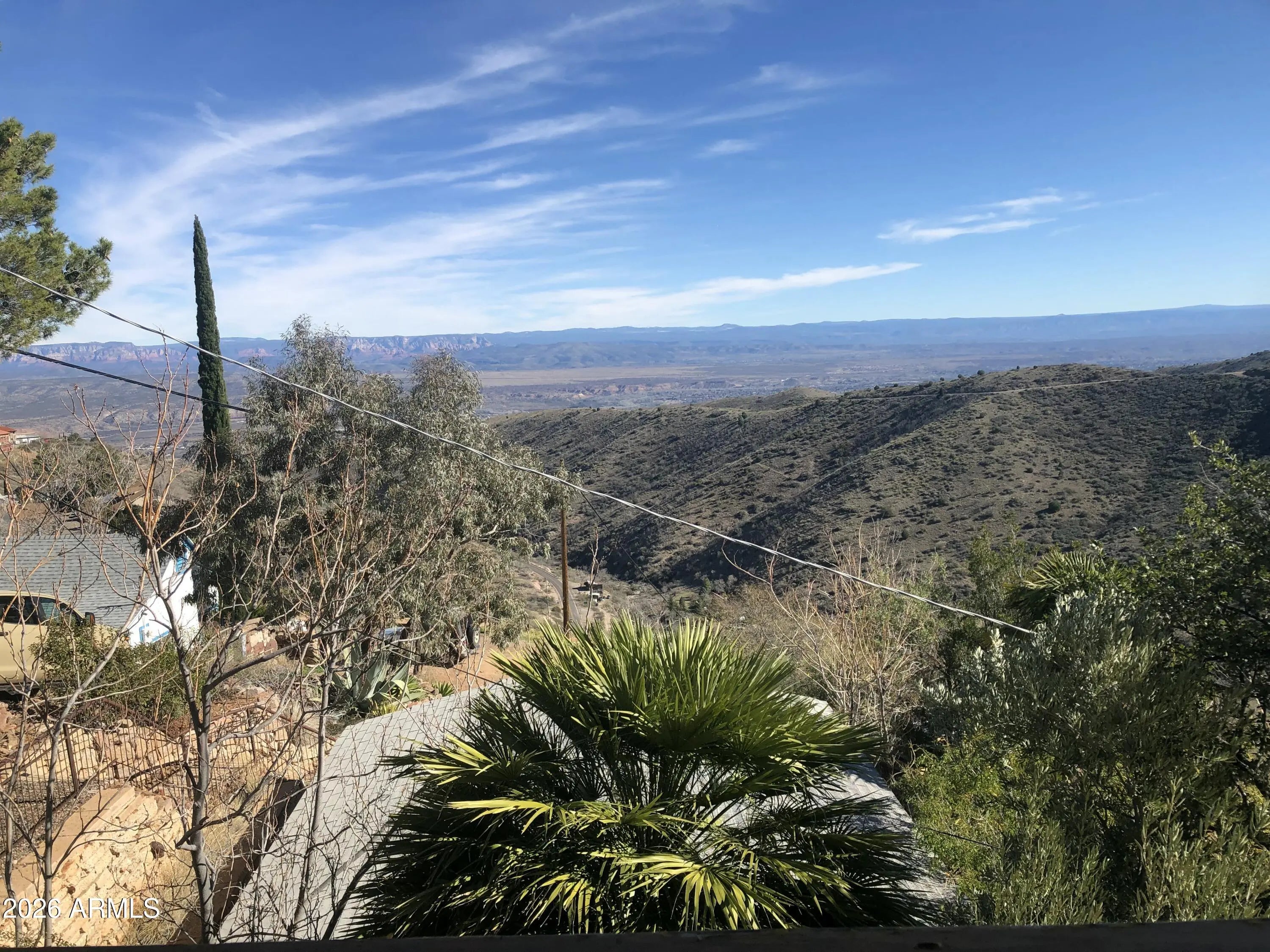 This charming 1914 home in the historic mountain mining town of Jerome sits near the end of a cul-de-sac, offering unbeatable views of the Verde Valley and surrounding mountain ranges. Priced at appraisal in as-is condition! Property boasts a multi-level yard with winding rock paths and beautiful stone walls. Kitchen and baths upgraded within the last year. Butcher block counters, new dishwasher, new fridge, some original wood flooring, new stairs, antique lighting & door hardware, cedar lined closets, stained glass windows, brand new 1st floor bath, detached 2 car garage. Unobstructed, extensive panoramic red rock, valley, mtn views. Wood burning fireplace is sealed, not functional currently. Antique Merritt O'Keefe range-oven is NOT included in the sale.