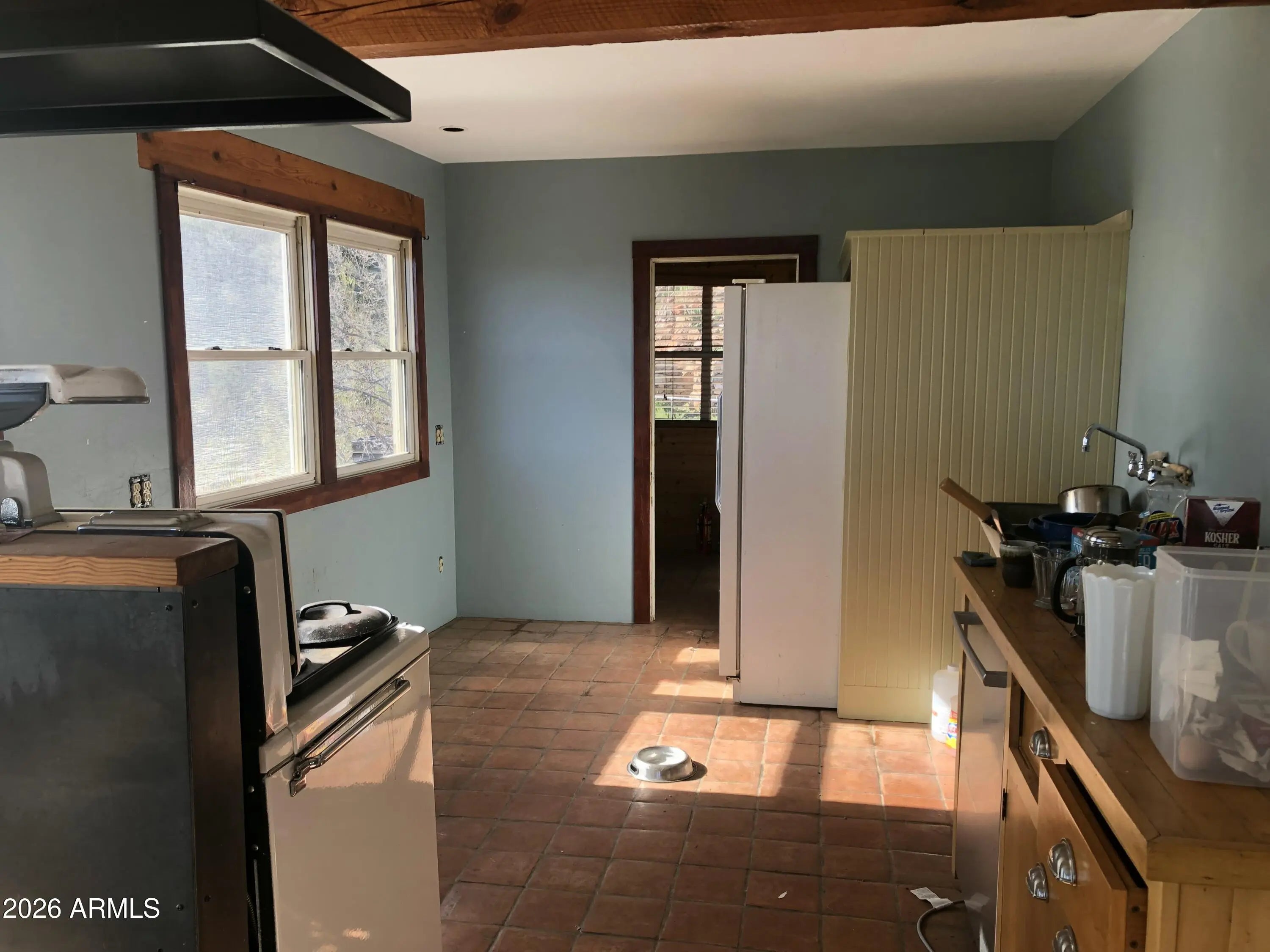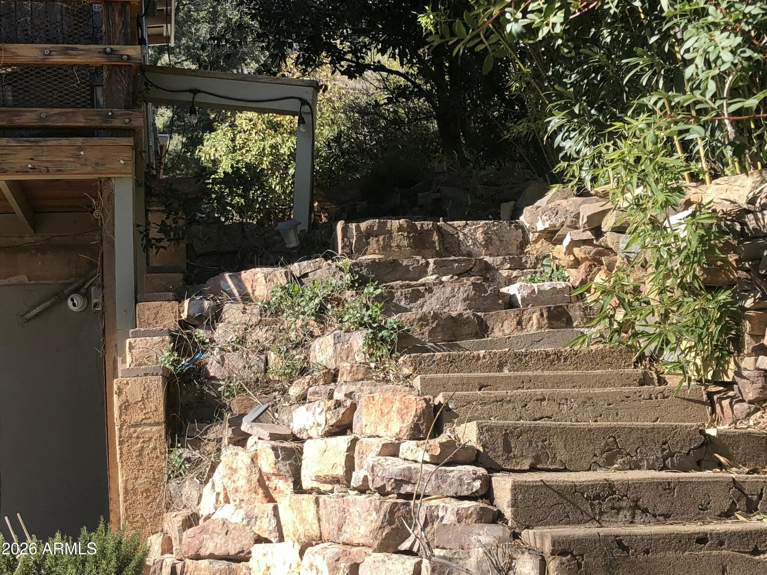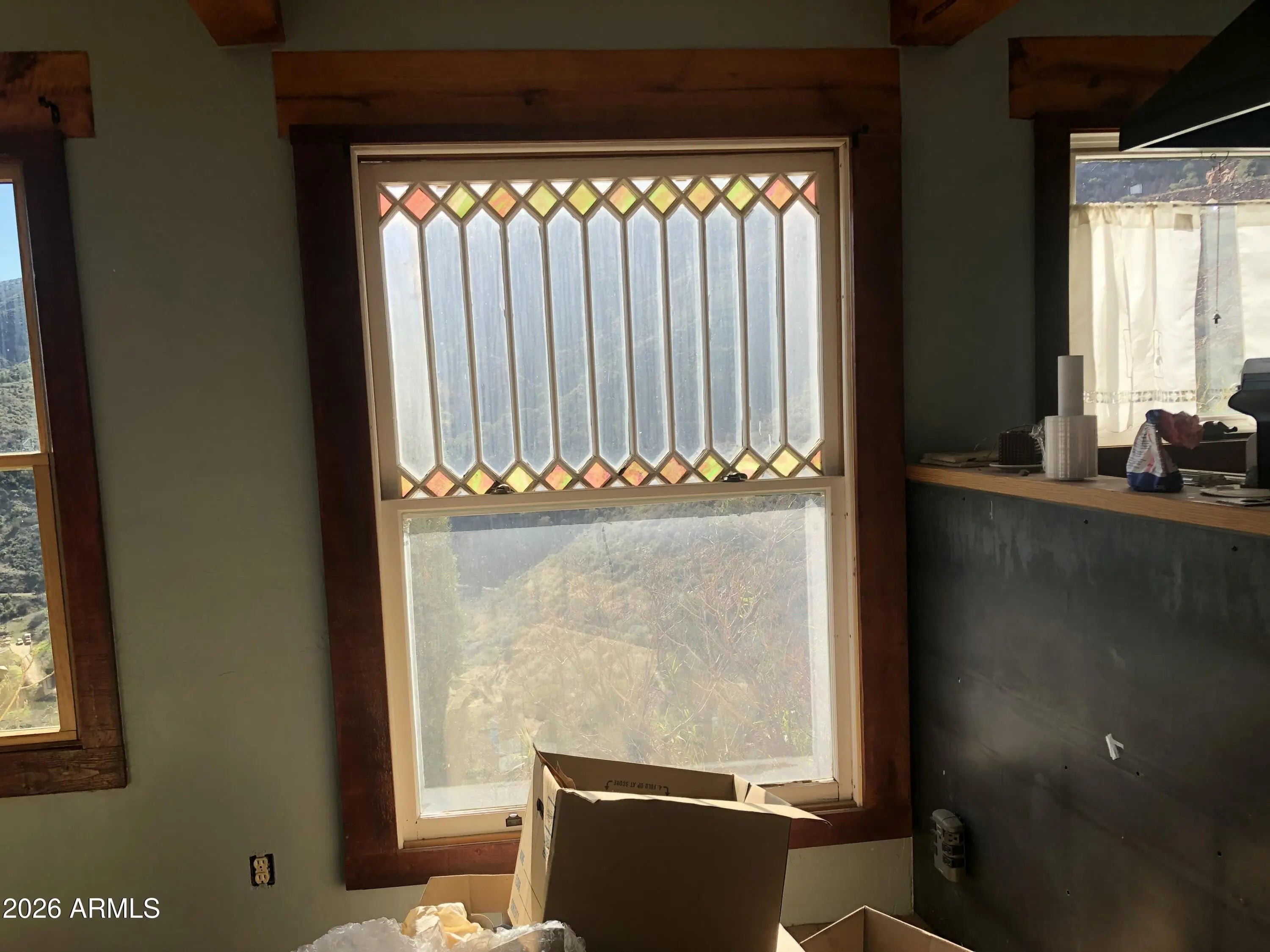This charming 1914 home in the historic mountain mining town of Jerome sits near the end of a cul-de-sac, offering unbeatable views of the Verde Valley and surrounding mountain ranges. Priced at appraisal in as-is condition! Property boasts a multi-level yard with winding rock paths and beautiful stone walls. Kitchen and baths upgraded within the last year. Butcher block counters, new dishwasher, new fridge, some original wood flooring, new stairs, antique lighting & door hardware, cedar lined closets, stained glass windows, brand new 1st floor bath, detached 2 car garage. Unobstructed, extensive panoramic red rock, valley, mtn views. Wood burning fireplace is sealed, not functional currently. Antique Merritt O'Keefe range-oven is NOT included in the sale.