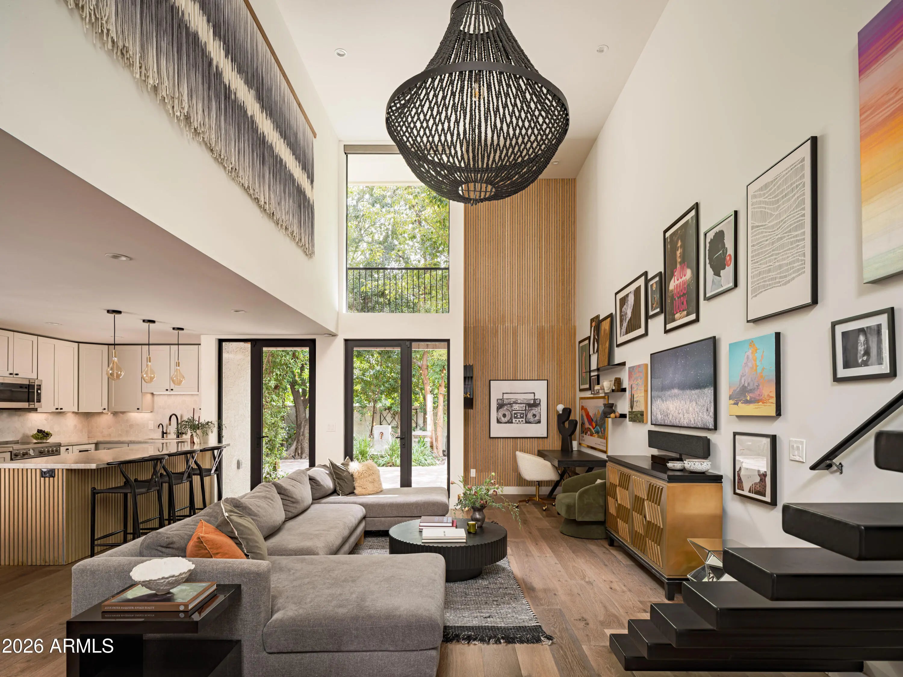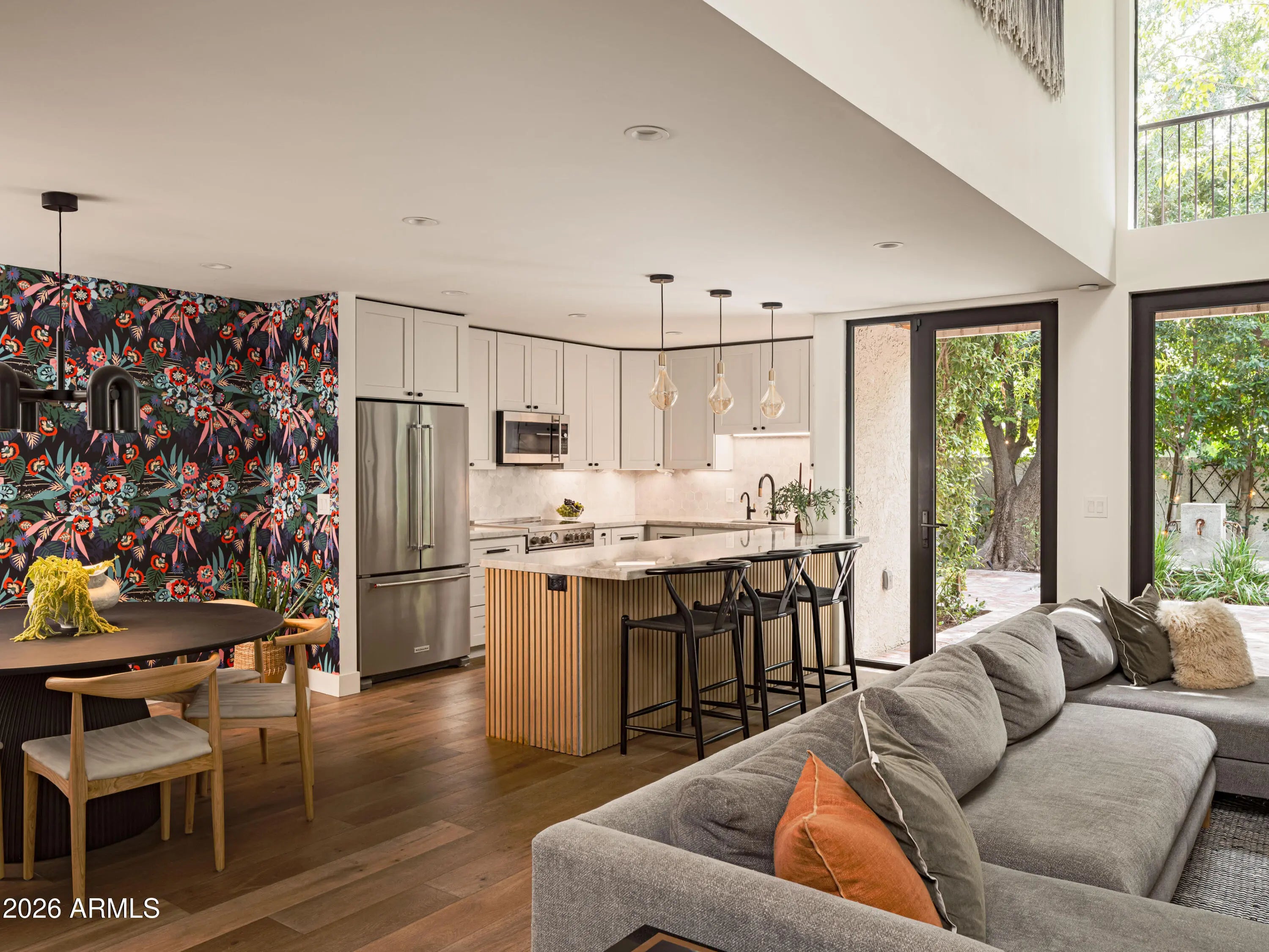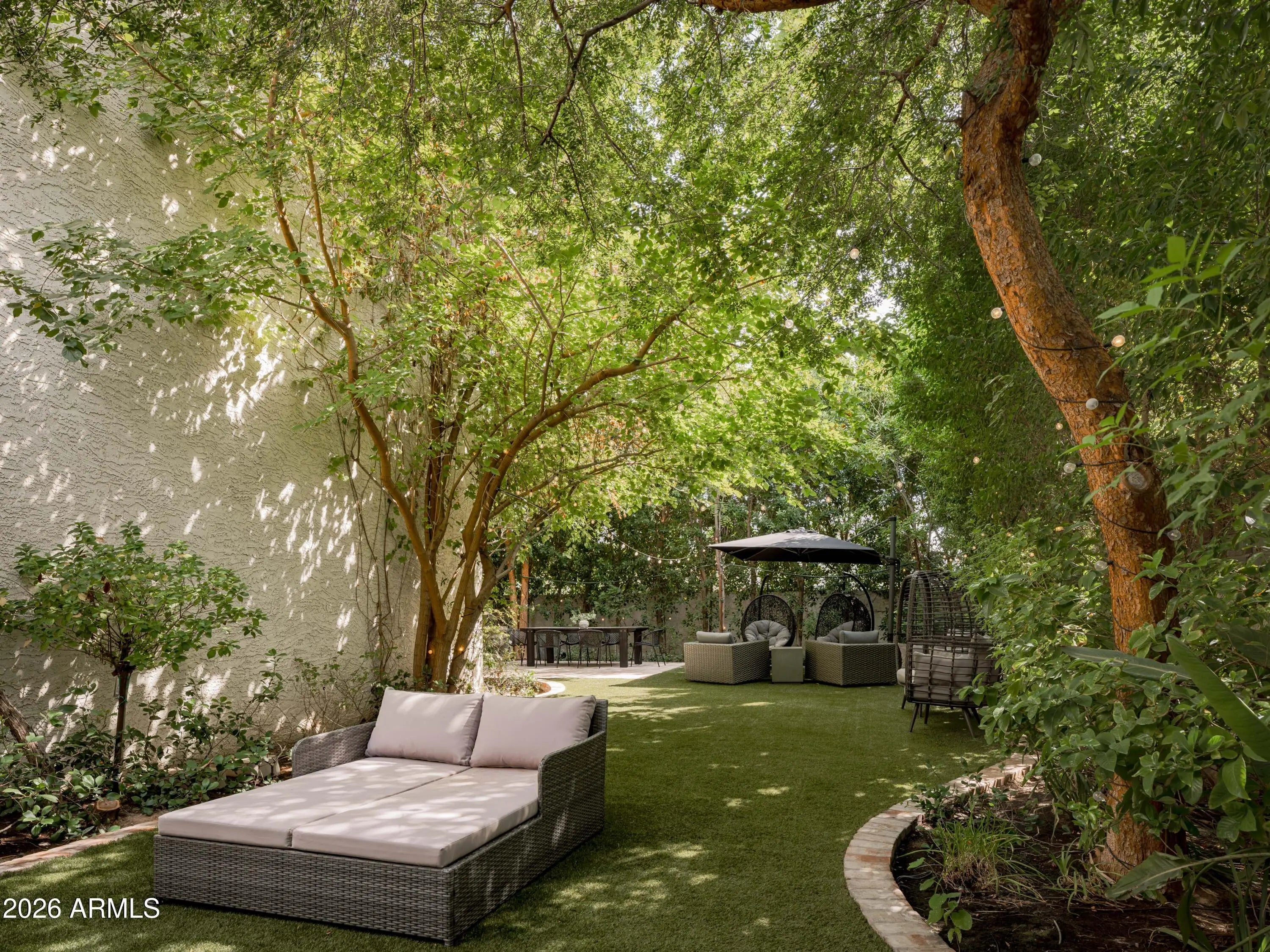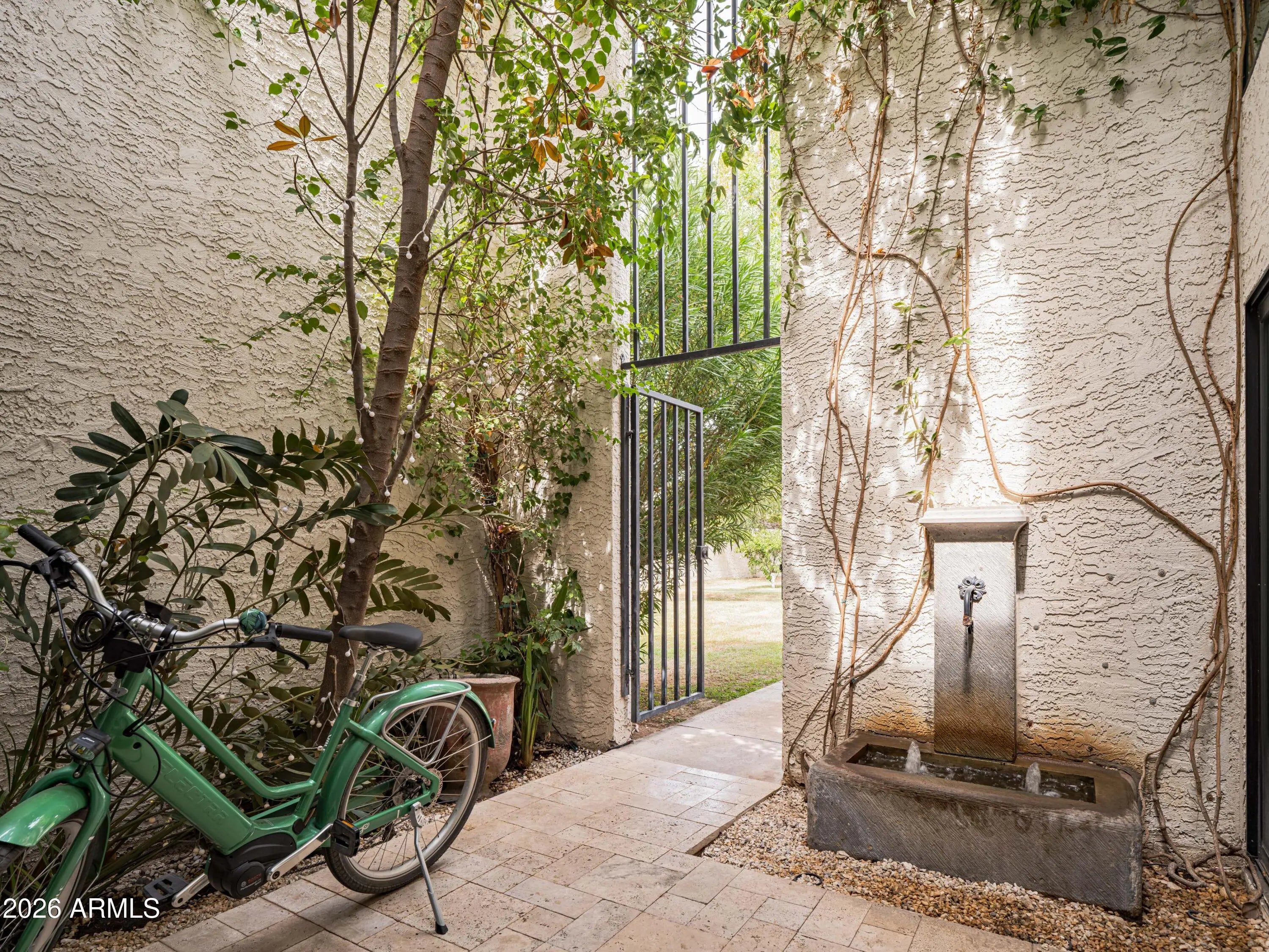 Welcome to Bridgewood North, one of Arcadia's best-kept secrets, a gated and hidden enclave of iconic townhomes designed by Al Beadle, known for their timeless modernism and strong architectural identity. This coveted corner residence stands apart, featuring a living room with soaring 20-foot ceilings, chic updates, a recently updated kitchen, and the best private yard in the complex, a rare and lush retreat that's perfect for Arizona indoor-outdoor living. Light-filled and thoughtfully updated, the home features a dramatic floating staircase, expansive windows, a custom fashion closet, and a spa-like bathroom designed for relaxation. Outdoors, a leafy patio and yard surrounded by mature trees creates an unexpected oasis, perfect for entertaining or unwinding in privacy. Ideally located near Arcadia's top restaurants, coffee shops, and boutiques, this home embodies modern desert living at its best, architectural, timeless, and effortlessly livable.