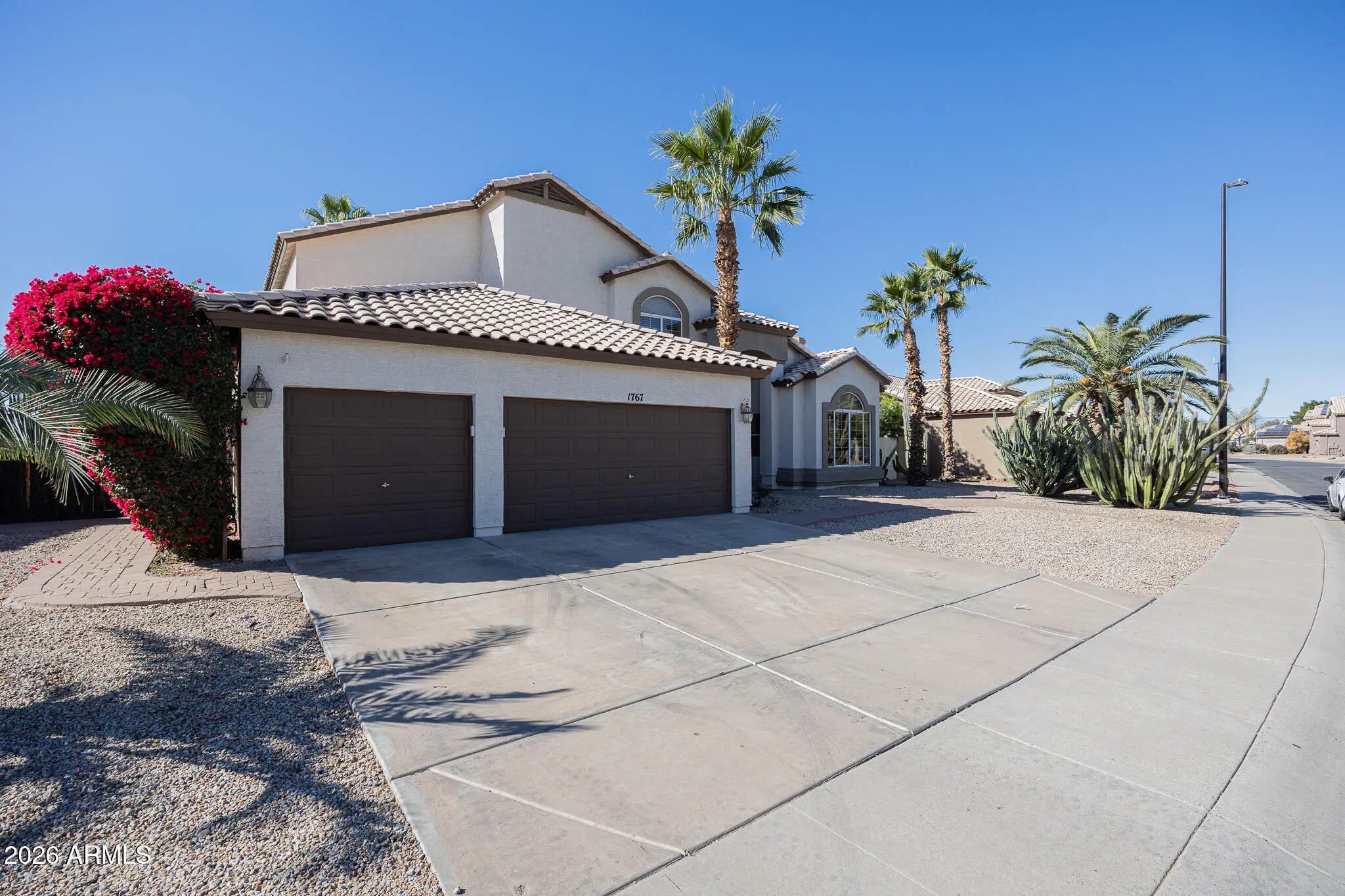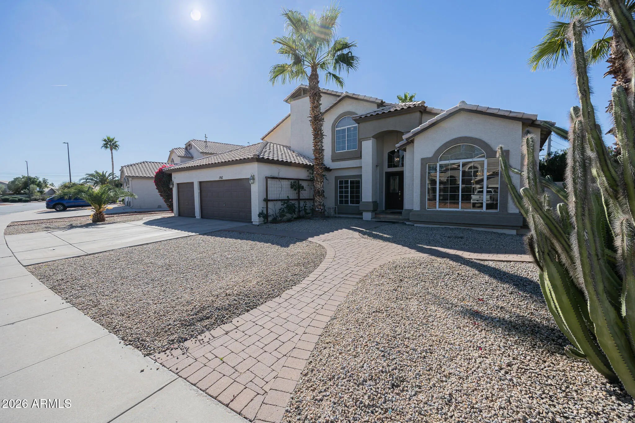 Live the lifestyle you've dreamed of in this 5/3 Gilbert jewel near Kokopelli Golf Course, where elegance meets effortless comfort. This elegant residence boasts travertine floors, vaulted ceilings, and airy living and family rooms, plus a versatile den. The chef's kitchen shines with stainless steel appliances, an oversized island, and serene pool views, perfect for entertaining. Retreat to the master with a spa-inspired bath, while additional bedrooms and baths provide charm and comfort. Step outside to a covered patio and expansive backyard, ideal for gatherings or quiet sunsets. With a 3-car garage, in-unit laundry, and a prime location near top schools, shopping, and dining, this home offers effortless living with pool and landscape maintenance included-your private oasis awaits.