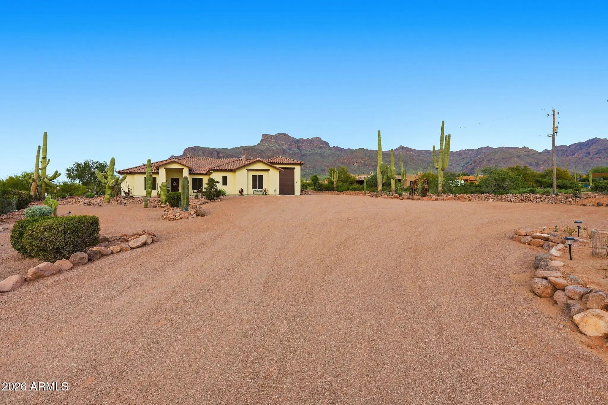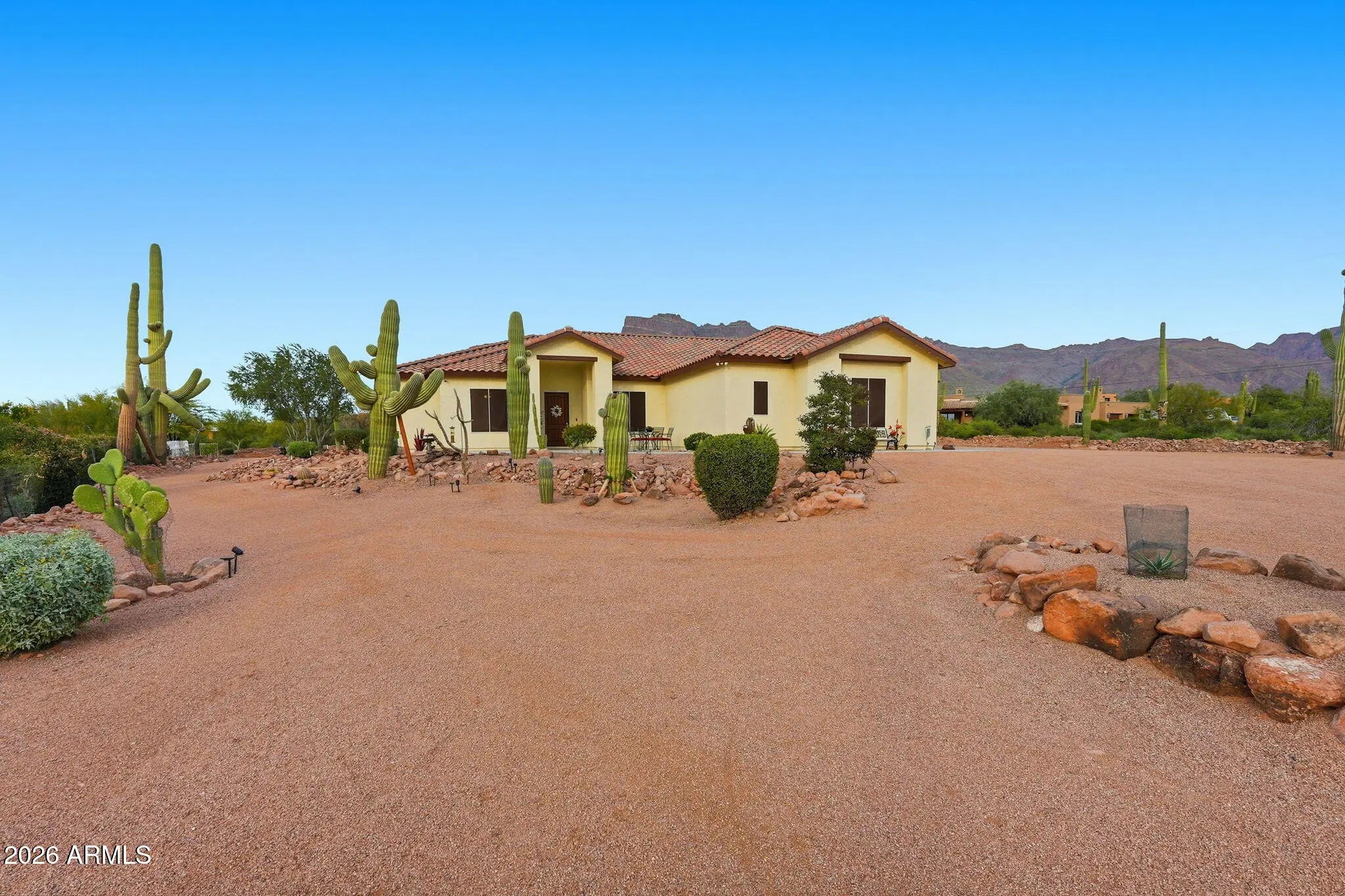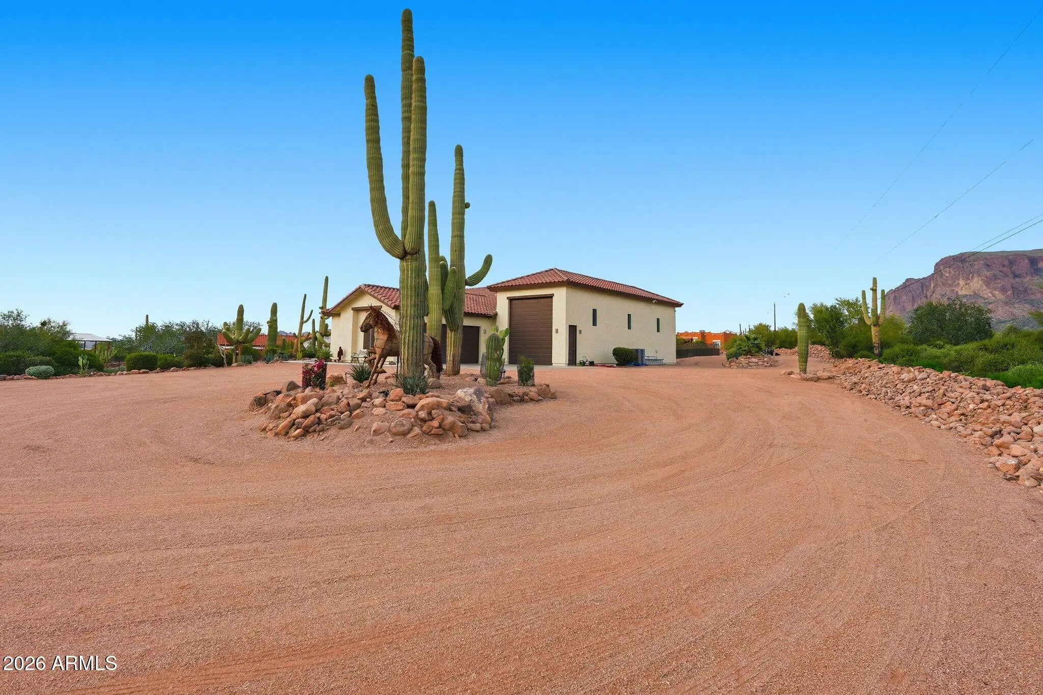 Welcome to 1067 S Trigger CT, where desert beauty meets refined living in the heart of Apache Junction. Tucked away off a low traffic street this exceptional property offers breathtaking views of the Superstition Mountains, open skies, and the kind of tranquility that makes Arizona living so desirable. An oversized RV garage with additional RV hookups, massive amounts of storage, separate 2 car garage, and additional power for an EV station as well. Step inside to discover a thoughtfully designed layout filled with natural light, spacious living areas, and seamless indoor-outdoor flow. Whether you're entertaining guests or enjoying a quiet evening at home, the atmosphere is warm, inviting, and effortlessly comfortable. Open kitchen concept, ideal for gathering, this smart home is all set up for creating and connecting! Outside, the property truly shines. Enjoy stunning sunrises and unforgettable desert sunsets with ample space to relax, entertain, or customize your own private oasis. Custom built infinity pool in 2021 with rockslide & waterfall, interior benches, and the mountains as your backdrop, every day feels like a retreat. There is a large outdoor area ideal for entertaining, celebrations, gatherings or weddings & don't forget, this property is NOT in an HOA. Conveniently located near outdoor recreation, hiking trails, lakes, dining, and shopping yet far enough away to enjoy peace and privacy this home offers the perfect balance of lifestyle and location. A rare opportunity to own a slice of Arizona beauty this is more than a home, it's a way of life.