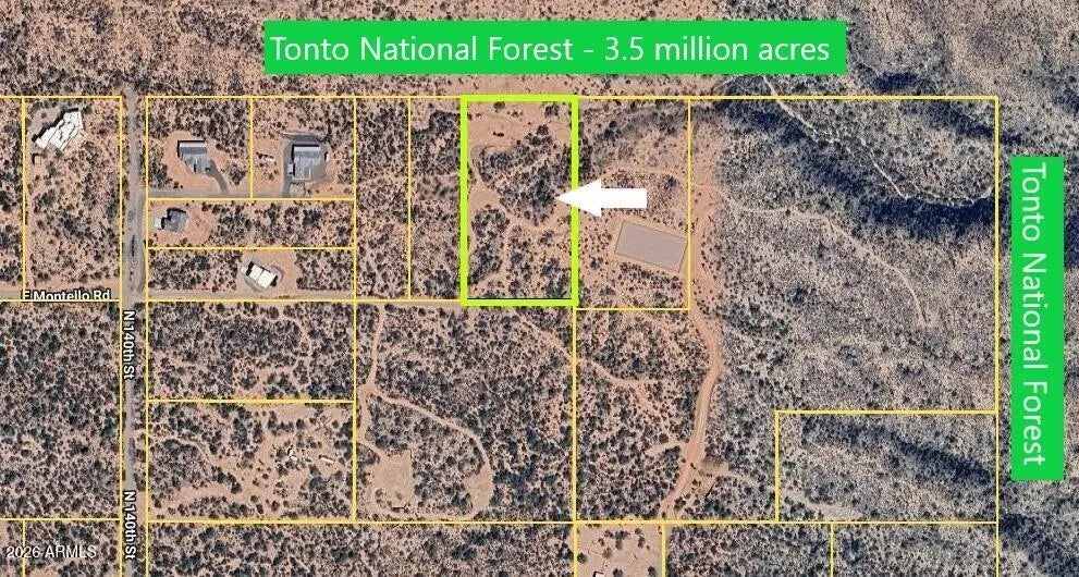 WHERE SILENCE, SPACE, & SKY MEET! RARE 4.6 ACRES WITH 330' OF TONTO NATIONAL FOREST FRONTAGE. PRISTINE ELEVATED HOMESITE CAPTURING SWEEPING VIEWS OF FOUR PEAKS & OTHER MAJESTIC MOUNTAIN RANGES. EXPERIENCE BREATHTAKING ARIZONA SUNRISES & SUNSETS, WHILE BREATHING IN THE COOL, CRISP, MORNING AIR. ENJOY ENDLESS MILES OF HORSEBACK RIDING, MOUNTAIN BIKING, HIKING, AND OFF-ROAD ADVENTURES FROM YOUR FRONT DOOR. PROPERTY INCLUDES A PRIVATE WELL PRODUCING ABUNDANT, FRESH, CLEAN, WATER, PRIVATE GATED ENTRANCE, UNDERGROUND POWER NEARBY, PLUS A GRADING & DRAINAGE PLAN. LOWER AREA CLEARED FOR BARN, RV GARAGE, SHOP, HORSE SETUP & MORE. DEVELOPERS: PROPERTY COULD BE SPLIT INTO (2) 2.3-ACRE LOTS, EACH W/ 165' OF FOREST FRONTAGE. LOW PROP. TAXES, NO HOA. ADJACENT 36.8-ACRE RANCH AVAIL. VIA SEP. OWNER.