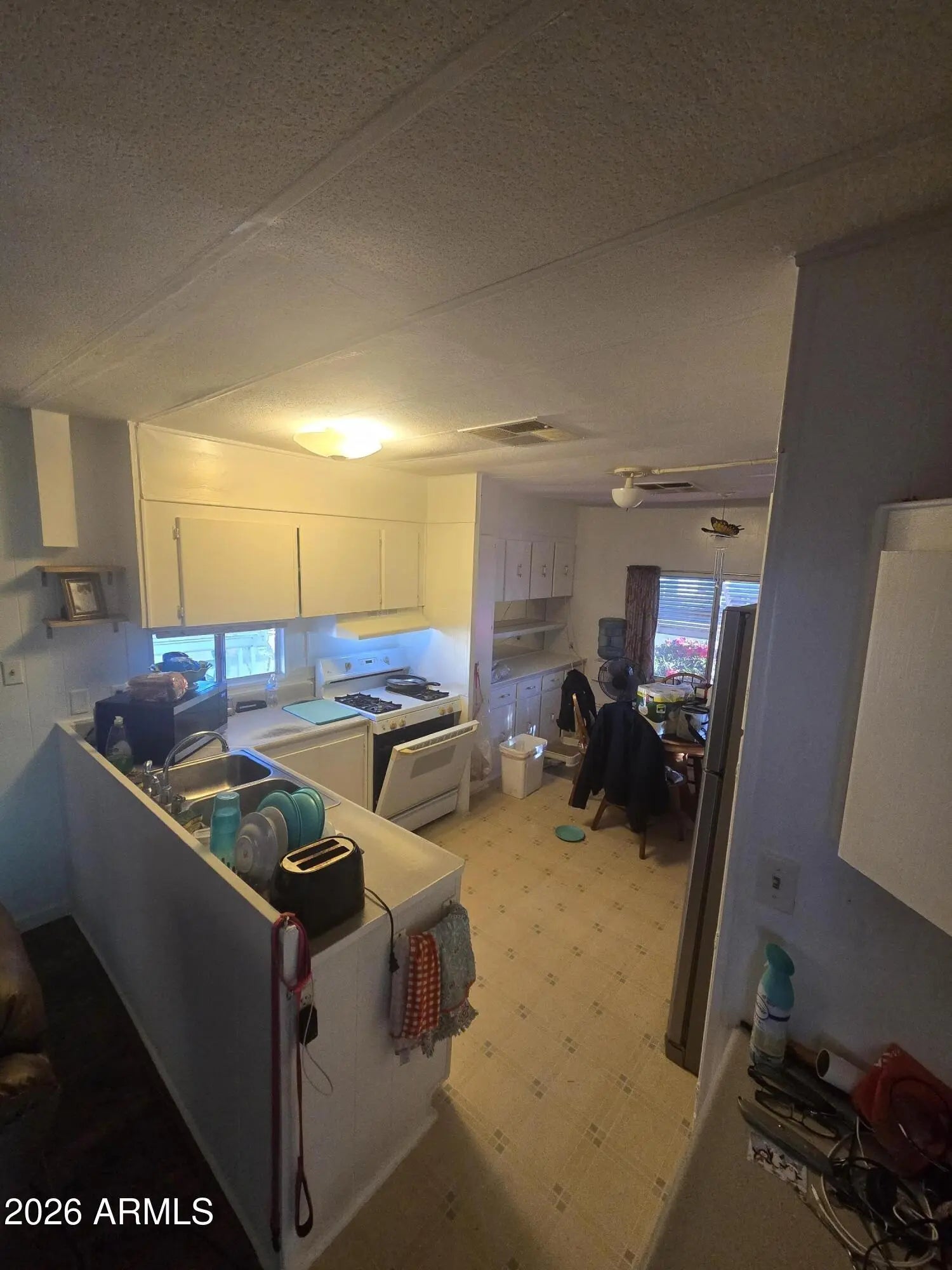 Located in the desirable Superstition Mobile 55+ Community, this charming 1-bedroom, 1-bath mobile home features a built-in Arizona room that adds valuable living space—perfect for relaxing, entertaining, or a hobby area. The home offers a comfortable layout with plenty of natural light and easy indoor-outdoor flow. Enjoy the friendly, active adult community with convenient access to shopping, dining, medical services, and nearby freeway access. Ideal as a full-time residence or seasonal retreat in sunny Arizona.