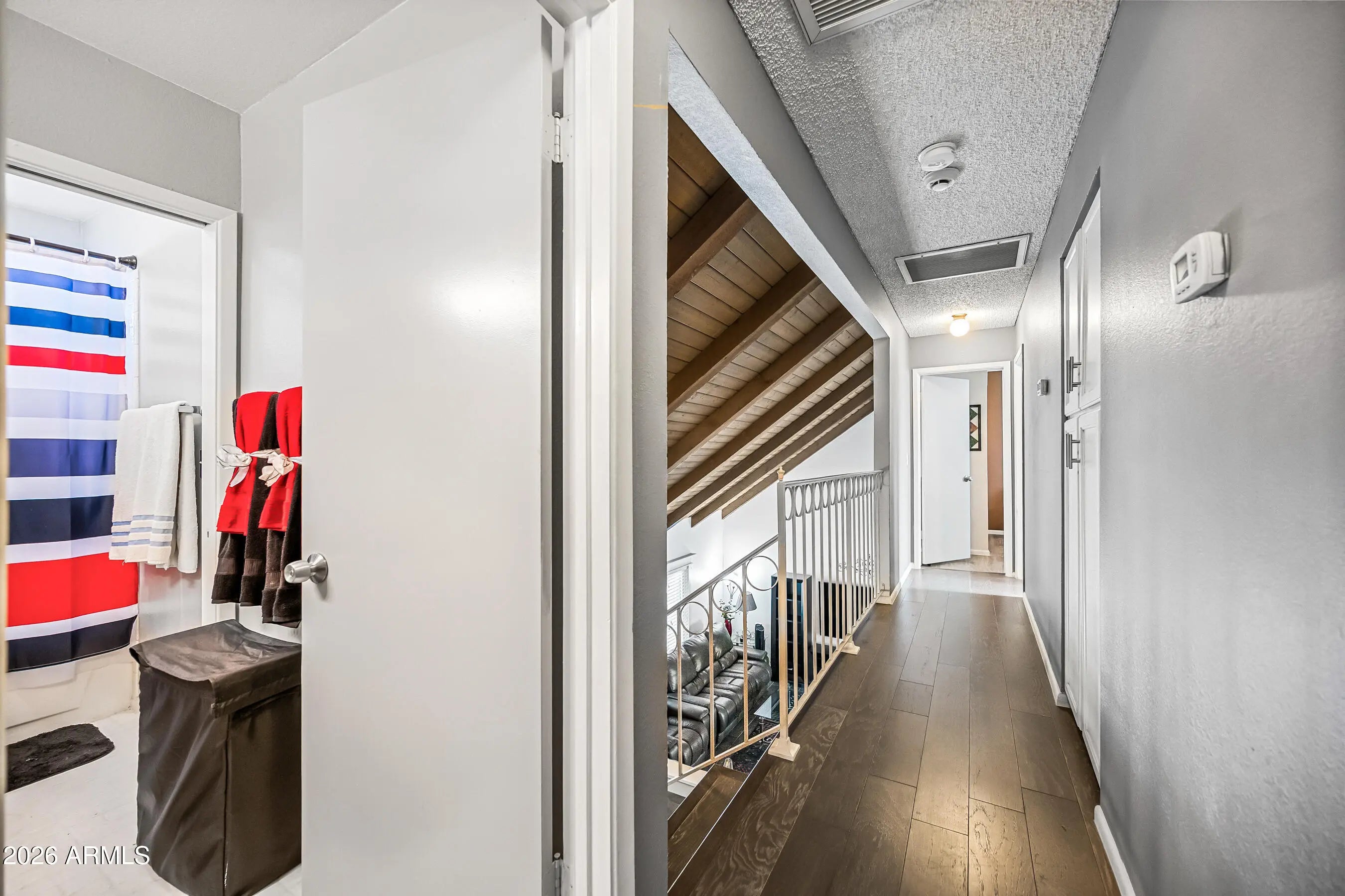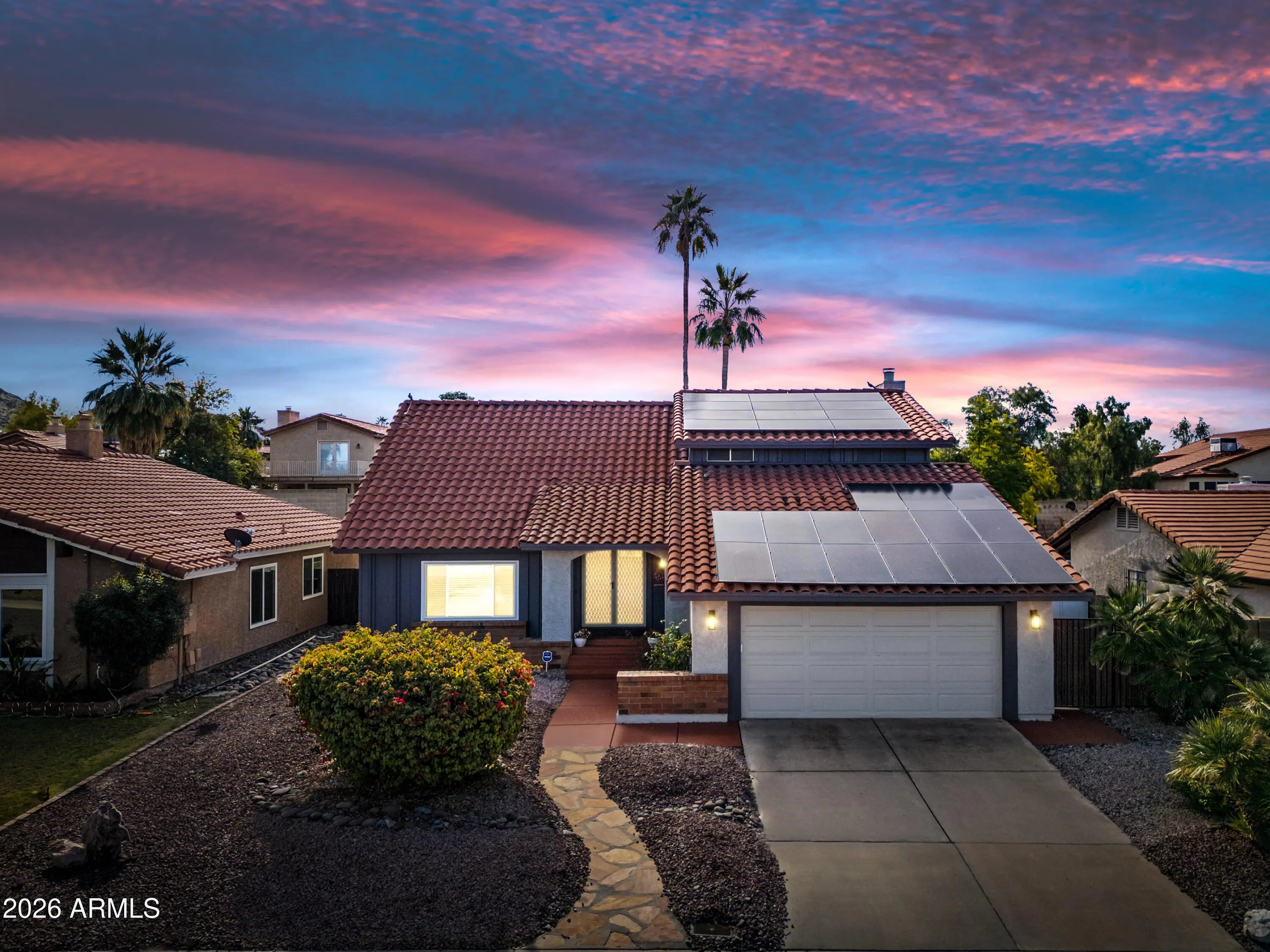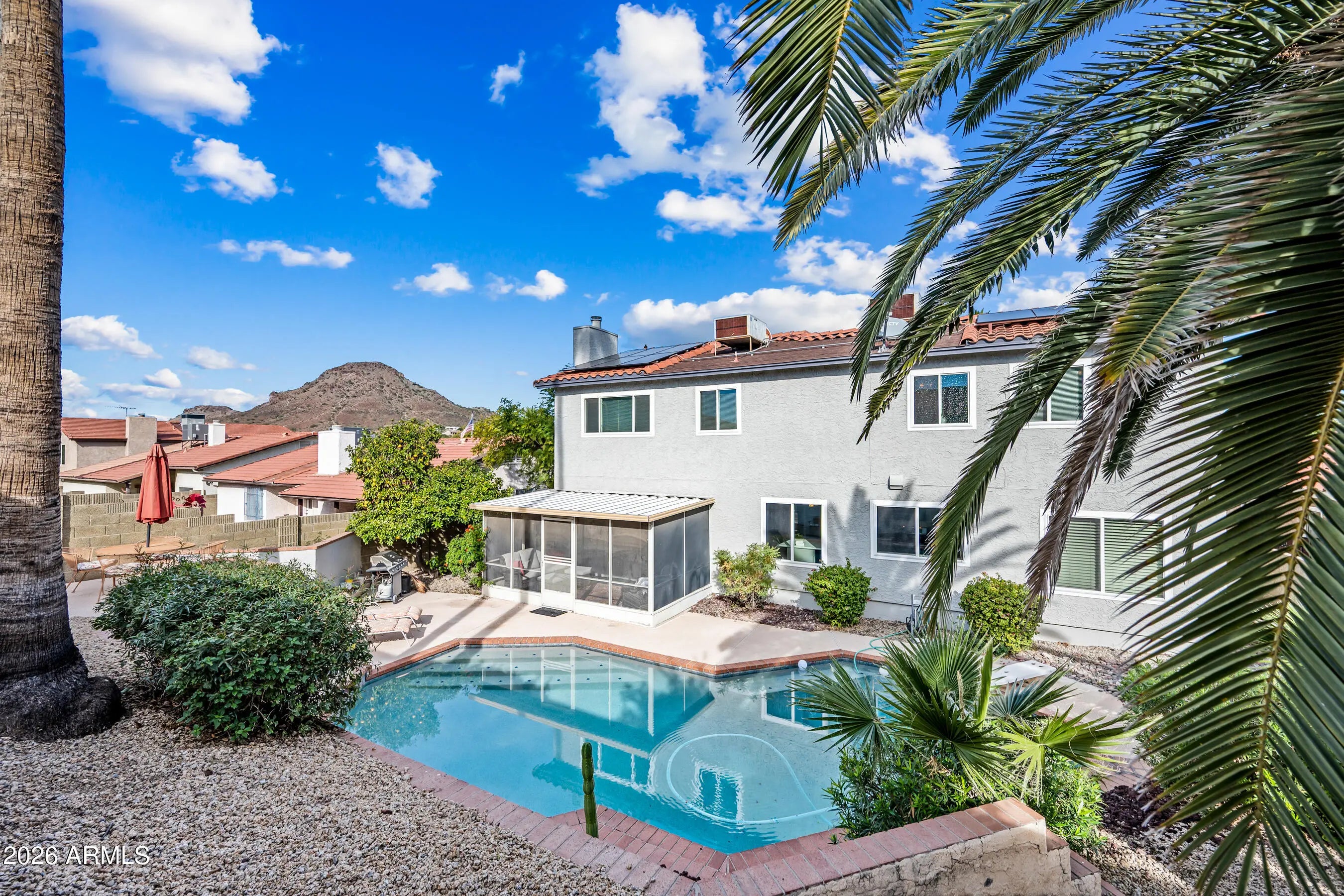 North Phoenix retreat Meticulously cared for by the original owners. This 4 bedroom, 3 Bathroom, Pool property is Ideally located in a desirable neighborhood near the scenic Lookout Mountain Preserve (South Side). You will feel the home's warmth, character, and spaciousness the moment you step inside. Vaulted ceilings with exposed beams and a striking statement staircase create an impressive architectural presence, while the cozy fireplace provides timeless charm. A custom wet bar adds a touch of sophistication, making the home perfect for entertaining or relaxed evenings in style. The remodeled kitchen was thoughtfully designed in 2017 blends contemporary design with everyday functionality, featuring quartz countertops and Diamond cabinetry, Offering a tri-level-style layout with North Phoenix retreat Meticulously cared for by the original owners. This 4 bedroom, 3 Bathroom, Pool property is Ideally located in a desirable neighborhood near the scenic Lookout Mountain Preserve (South Side). You will feel the home's warmth, character, and spaciousness the moment you step inside. Vaulted ceilings with exposed beams and a striking statement staircase create an impressive architectural presence, while the cozy fireplace provides timeless charm. A custom wet bar adds a touch of sophistication, making the home perfect for entertaining or relaxed evenings in style. The remodeled kitchen was thoughtfully designed in 2017 blends contemporary design with everyday functionality, featuring quartz countertops and Diamond cabinetry, This home offers a tri-level-style layout with one bedroom and a full bathroom conveniently located on the main level, ideal for guests or multigenerational living. Upstairs, the expanded primary suite provides a serene private retreat complete with a spa-inspired Jacuzzi tub, while two additional bedrooms and ,one full bathroom complete the upper level. Flooring throughout the home includes wood-looking tile on the main level, a wood landing and staircase, and vinyl wood flooring upstairs. Notable upgrades include 9 energy efficient new windows, a new front door, a new roof in 2021, and a beautifully refinished Pebble Tec pool completed in 2023, located right off the relaxing screened-in-patioperfect for enjoying Arizona's outdoor lifestyle. Additional highlights include a Level 2 EV charger and a leased solar system approximately $241/month. With numerous upgrades and meticulous care throughout, this home shows Pride of Ownership and is move-in-ready. It offers comfort, elegance, and exceptional livability in the heart of North Phoenix and waiting for you to call Home.