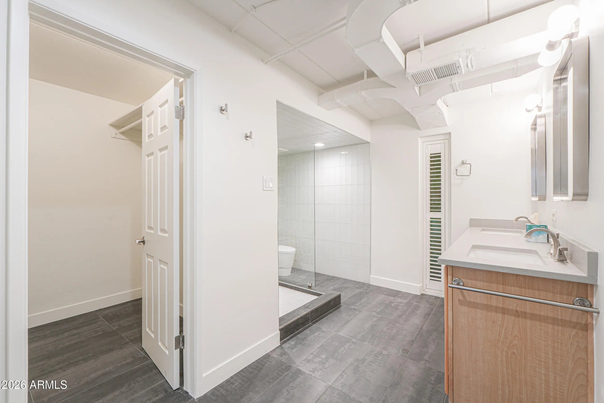 Don't miss this rare opportunity to own an updated Mid-Century Modern residence in The Olympus, an iconic community designed by renowned architect Robert Starkovich. Known for its signature barrel-vault architecture, this highly sought-after complex sits in prime North Central Phoenix, just steps from the scenic Murphy Bridle Path. This thoughtfully updated unit offers a bright, open layout with expansive sliding glass doors leading to a spacious private balcony. The modern kitchen features quartz countertops, stainless steel appliances, a subway-tile backsplash, and a generous pantry. Drop ceilings have been removed for added volume, and the remodeled primary bath features a sleek walk-in shower with designer finishes. The bedrooms are split for privacy. HOA covers all major utilities!