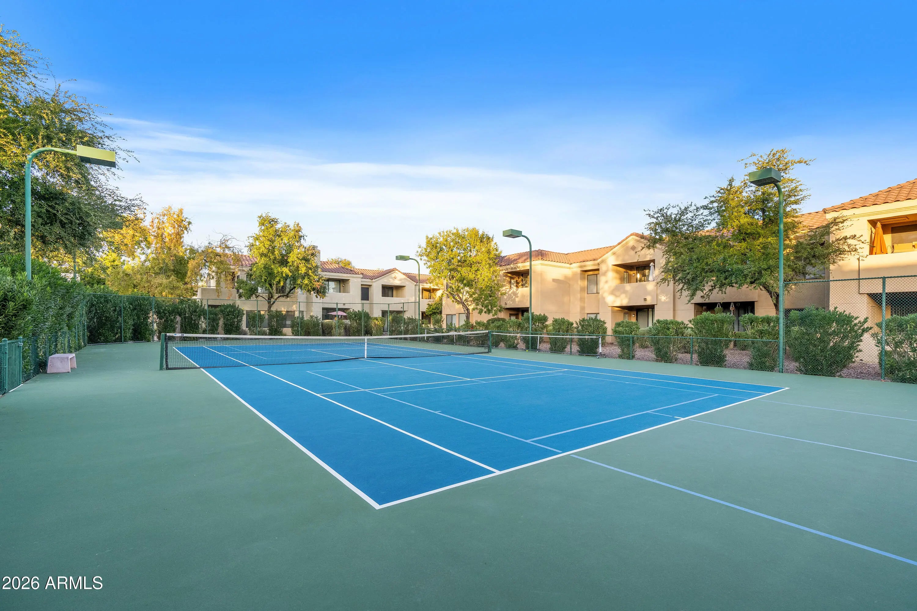 This Ground-Floor condo within a Gated community in the heart of Central Scottsdale offers easy, lock-and-leave living with NO interior steps and convenient access to nearby parking. Featuring 3 bedrooms and 2 full bathrooms, the home includes a spacious primary suite with a large walk-in closet and private exit to the patio. A new HVAC system was installed in 2023. Residents of Sienna enjoy a secure, well-maintained community with a Clubhouse, Workout Facility, Pool, Spa, Tennis and Pickleball courts, plus direct access to the Greenbelt. Ideally surrounded by Silverado Golf Course and McCormick Ranch Golf Club, and close to shopping, dining, and commuter routes, this condo blends comfort, convenience, and the relaxed Scottsdale lifestyle.