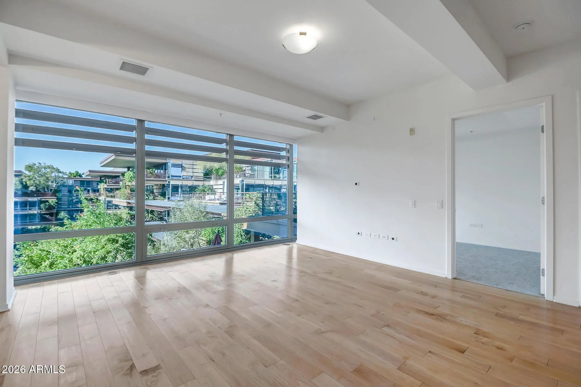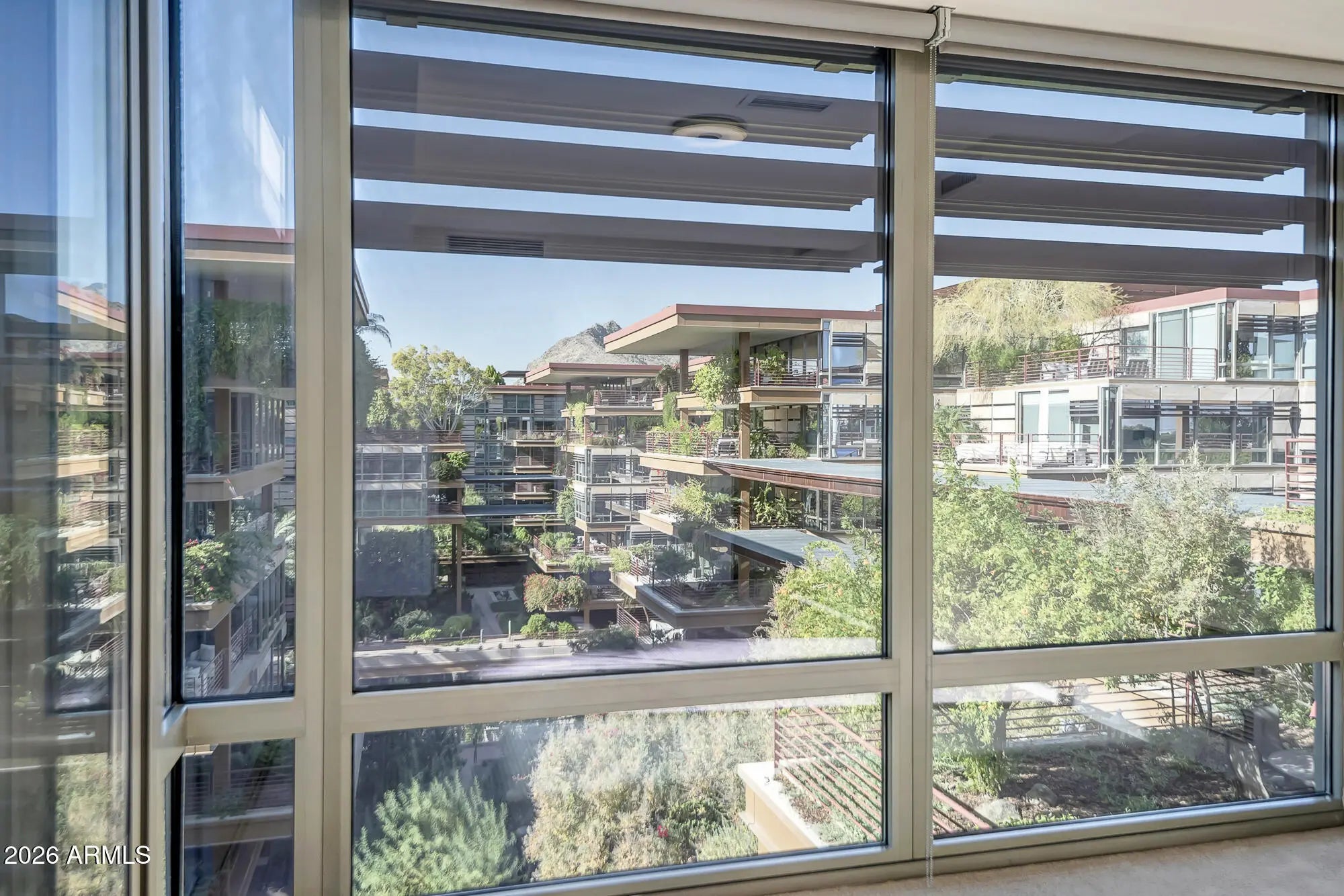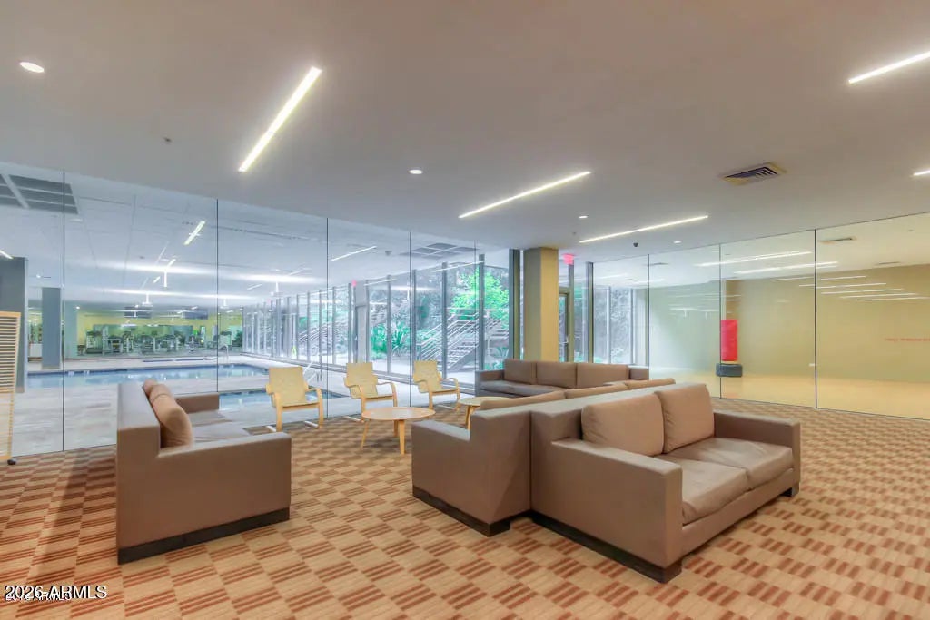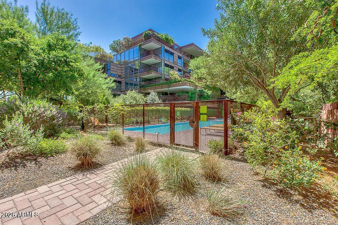 Come enjoy the ultimate lifestyle living in Downtown Scottsdale. Unit 6004 is perfectly situated on a premium interior building with wonderful courtyard views from all rooms. This home features hardwood floors with cherry cabinetry and carpeted bedrooms. The Optima Camelview community has it all including multiple heated pools & spas, a massive renovated gym, racketball, basketball, pickleball, putting green, locker rooms, saunas, conference rooms, an on-site restaurant, 24/7 Security, Concierge Service and so much more. Secure garage parking is just steps from the elevator that takes you to your home. Optima is ideally located across from Fashion Square Mall, the new Caesars Hotel, hundreds of restaurants and the best shopping and entertainment in the Valley. Simplified Living!!