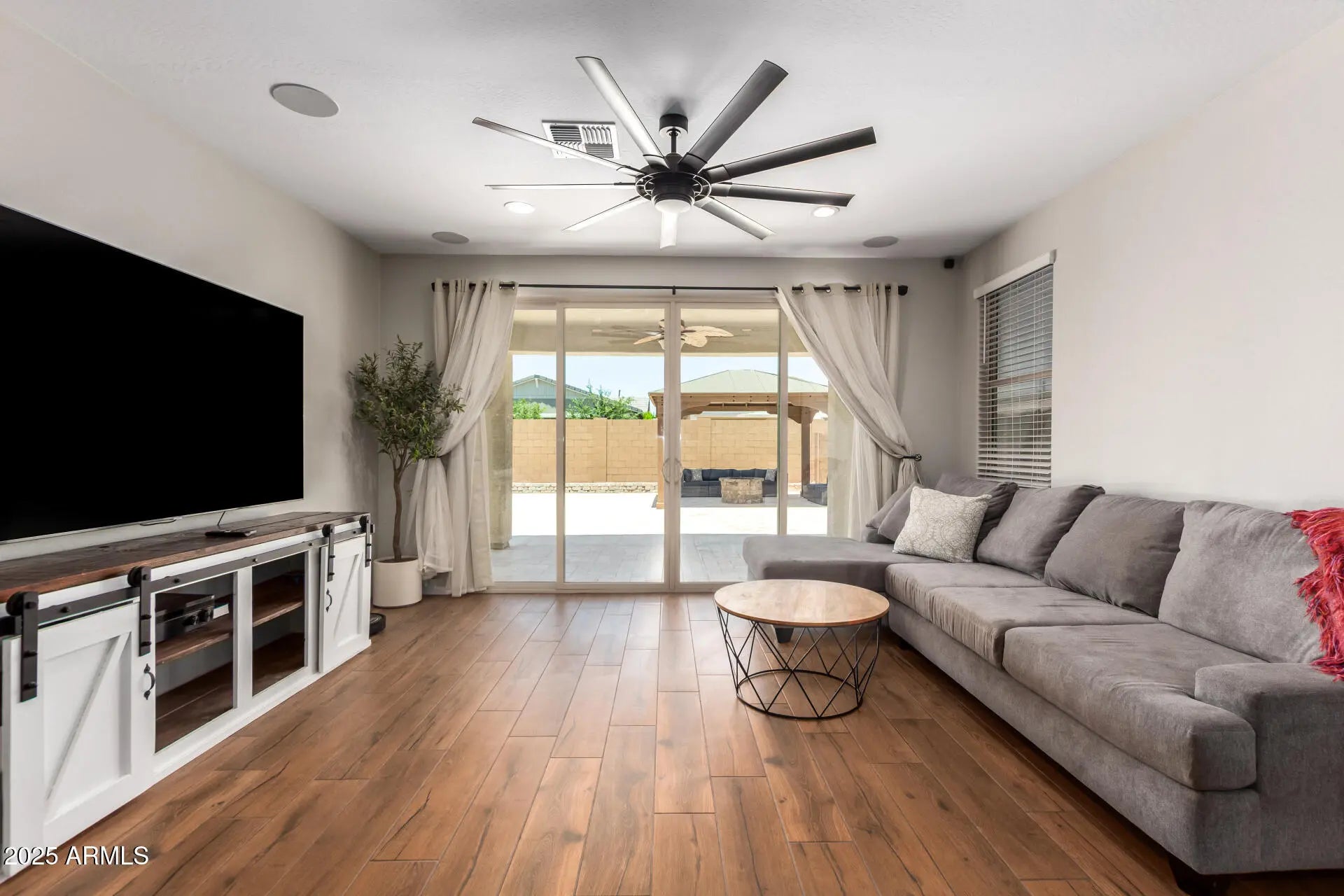 Come see your new beautiful gem in The Lakes of El Dorado community and home of the Duke golf course. As you enter the home you will be blown away with the wood plank tile flooring throughout this 4 bed, 3 full bath home. Offering a rare but perfect in-law or teen area that is split away from the main living areas. The kitchen has all stainless steel appliances, including a new refrigerator and gas stove, a large quartz island with farmhouse sink that sits 4 people. The huge great room extends to an enormous backyard through a split sliding glass door, and a sound system in and out. The backyard has a built in firepit, gazebo on a huge extended travertine patio that is all ready for all your entertaining needs and endless opportunities to make it your own. Don't miss out!