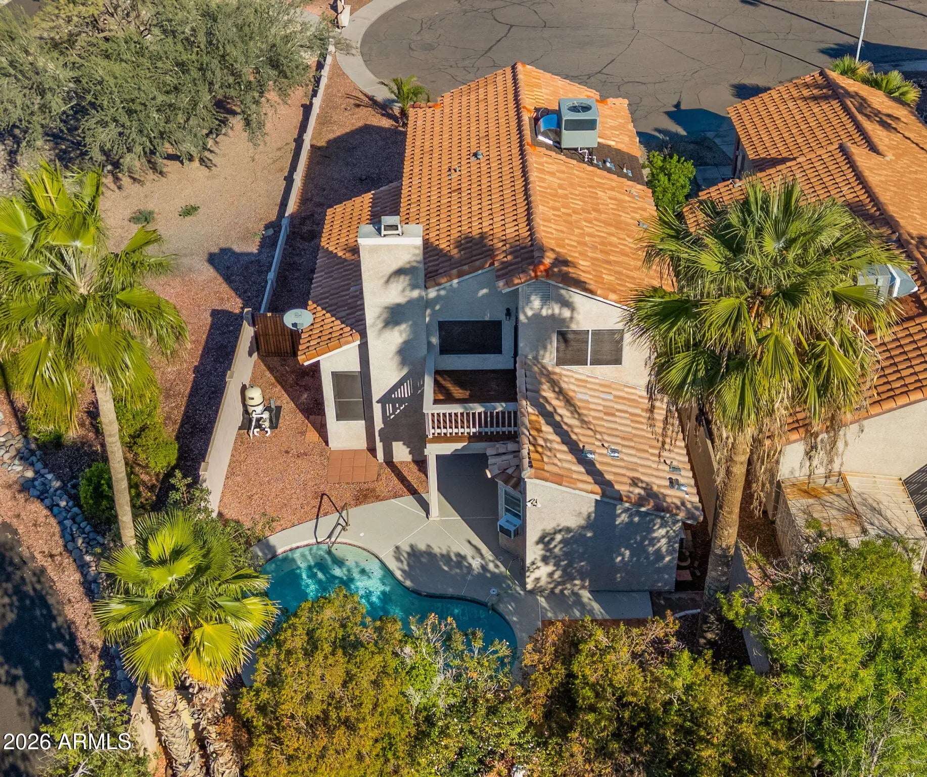 Beautifully reintroduced with MAJOR upgrades, this Ahwatukee 4 bedroom 3.5 bath home offers comfort, flexibility, and peace of mind. The seller invested where it matters most with a BRAND NEW ROOF, BRAND NEW AC, along with fresh interior paint, updated blinds, refreshed pool and balcony decking, and additional improvements throughout. The flexible layout includes a permitted 4th bedroom and bathroom downstairs, ideal for guests, multigenerational living, or a home office or gym. Upstairs, the primary suite offers dual closets, a spacious bathroom, and private balcony access. Enjoy a private pool, covered patio, and low-maintenance yard on a quiet cul-de-sac with easy access to I-10, Loop 202, South Mountain trails, and Kyrene schools. Thoughtfully improved and absolutely move-in ready!