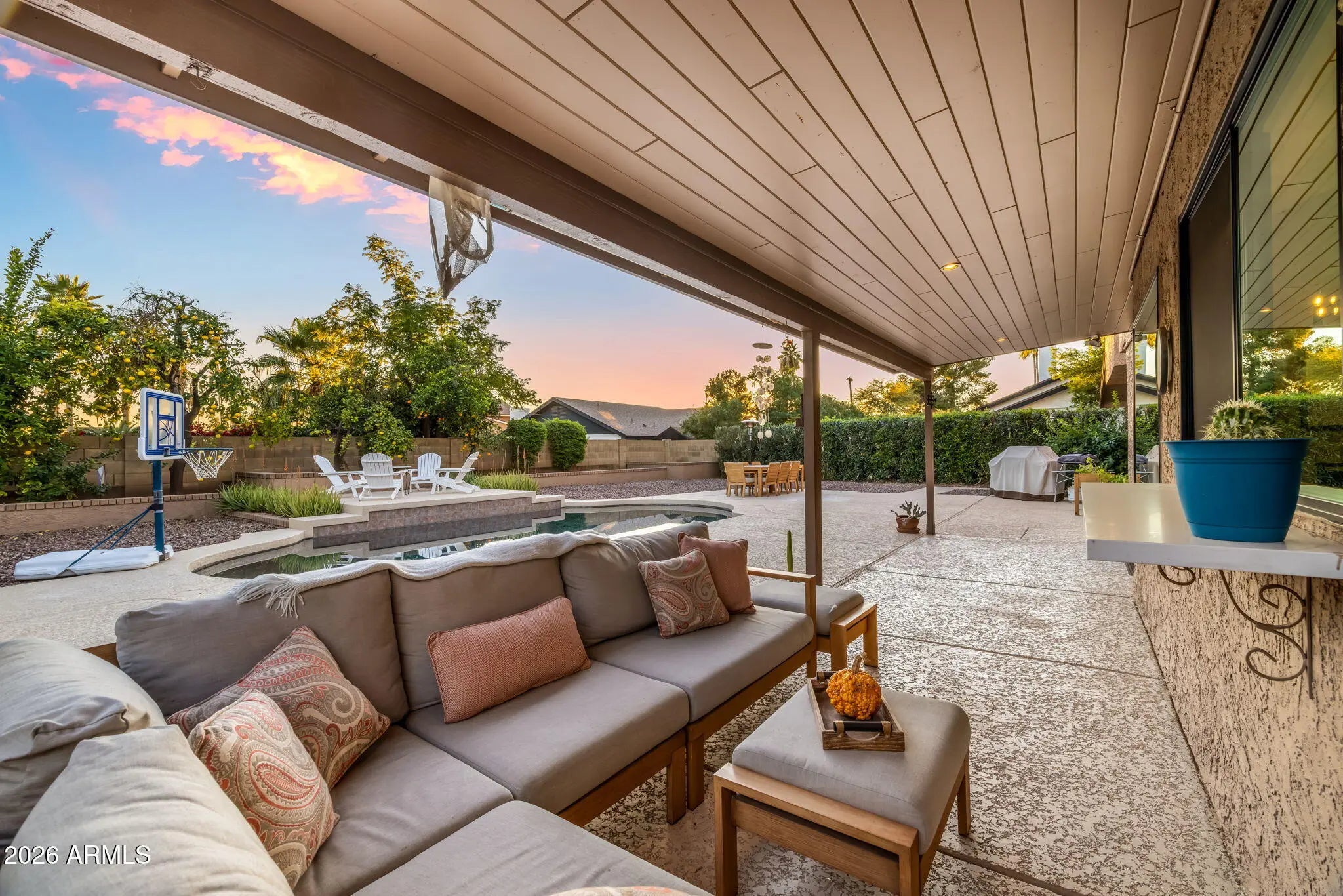 Recently updated with both style and comfort in mind, this home delivers spacious living in a prime Scottsdale location. Positioned just steps from Desert Horizon Park and minutes from some of the area's most sought after dining and shopping. You are going to love the vaulted ceilings, abundant natural light, and generously sized living spaces that create an inviting atmosphere ideal for both everyday living and entertaining family and friends. The chef's kitchen has been thoughtfully redesigned with updated cabinetry and countertops, offering exceptional storage and functionality. Step outside to a spacious and private backyard retreat designed for entertaining, featuring a sparkling pool and spa, multiple dining and gathering areas, and mature landscaping that provides both beauty and privacy. This outdoor oasis is perfect for relaxing evenings or hosting unforgettable gatherings. With its prime location, thoughtful updates, and seamless indoor outdoor living, this home truly has it all and is a rare opportunity to enjoy the best of the Scottsdale lifestyle.