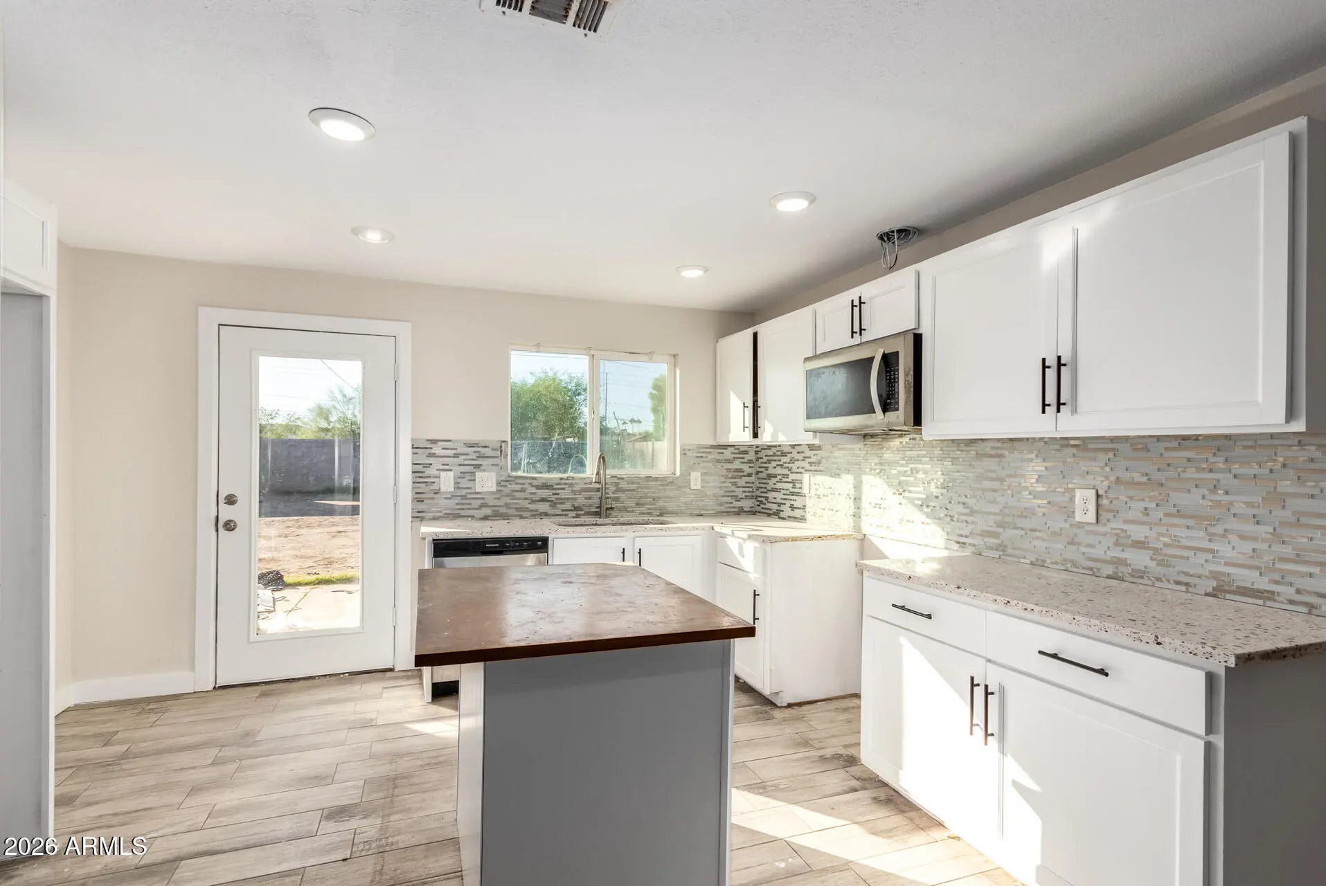 Energy-efficient nostalgic beauty is ready to move in! This home was highly upgraded in 2020 with an open floor displaying clean lines & a sleek design promoting a modern feel. Soft paint, wood-look plank flooring, and dual pane windows are found throughout. The large living room merges into the eat-in kitchen, providing a greater traffic flow for easy entertaining. Outfitted with white wood cabinets, mosaic tile backsplash, granite counters, and SS steel appliances, the kitchen is ready for a cuisine enthusiast. The primary bedroom hosts a spacious bathroom with two sinks & a tiled shower. The large backyard is a blank canvas waiting for its new owner's creativity to transform into a desert oasis. Close to restaurants, stores, and a short commute to Downtown Phoenix. Go see today!