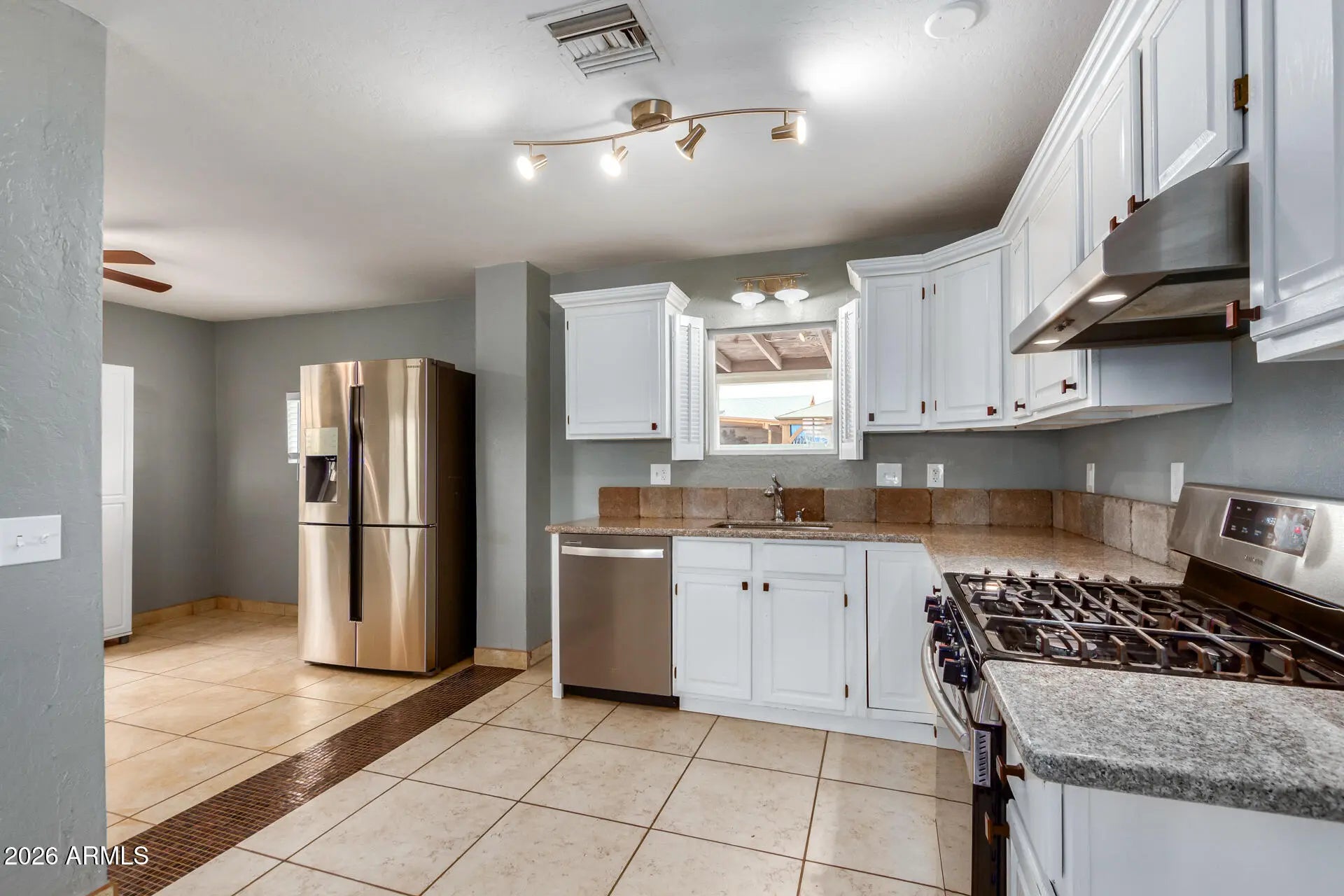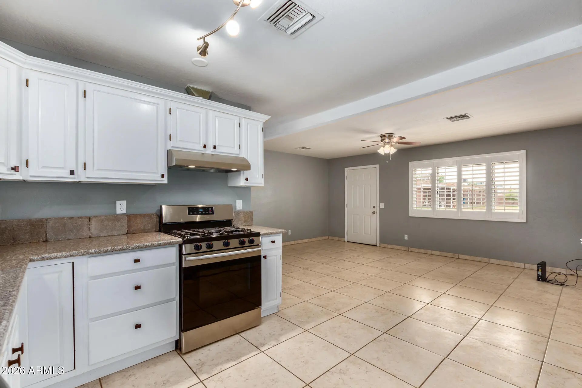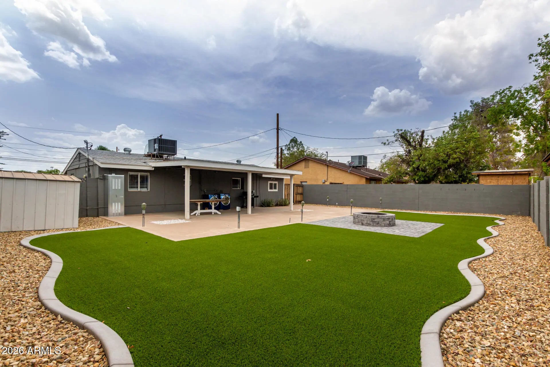 You're invited to discover this immaculate, fully remodeled two-bedroom home - an oasis with a spacious backyard, just minutes from everything! Step into the chef's dream kitchen featuring white shaker cabinets, granite countertops, and stainless steel appliances, including a gas stove. The open floor plan is perfect for gatherings, while gorgeous bathrooms and tile floors throughout make maintenance a breeze. Enjoy the huge covered patio in the backyard, offering plenty of space for BBQs, dining, and relaxing. Cozy up by the firepit on chilly fall and winter evenings, and appreciate the low-maintenance artificial turf -giving you more free time on weekends. This home is within walking distance to Choice Learning Academy and the Boys & Girls Club, and just minutes from the Grand Canyon University, Abrazo Central Campus, Christown Spectrum, I-17 and the light rail. Stop by today! This one is a keeper!