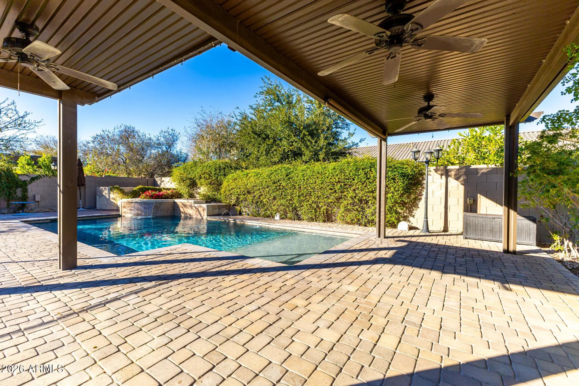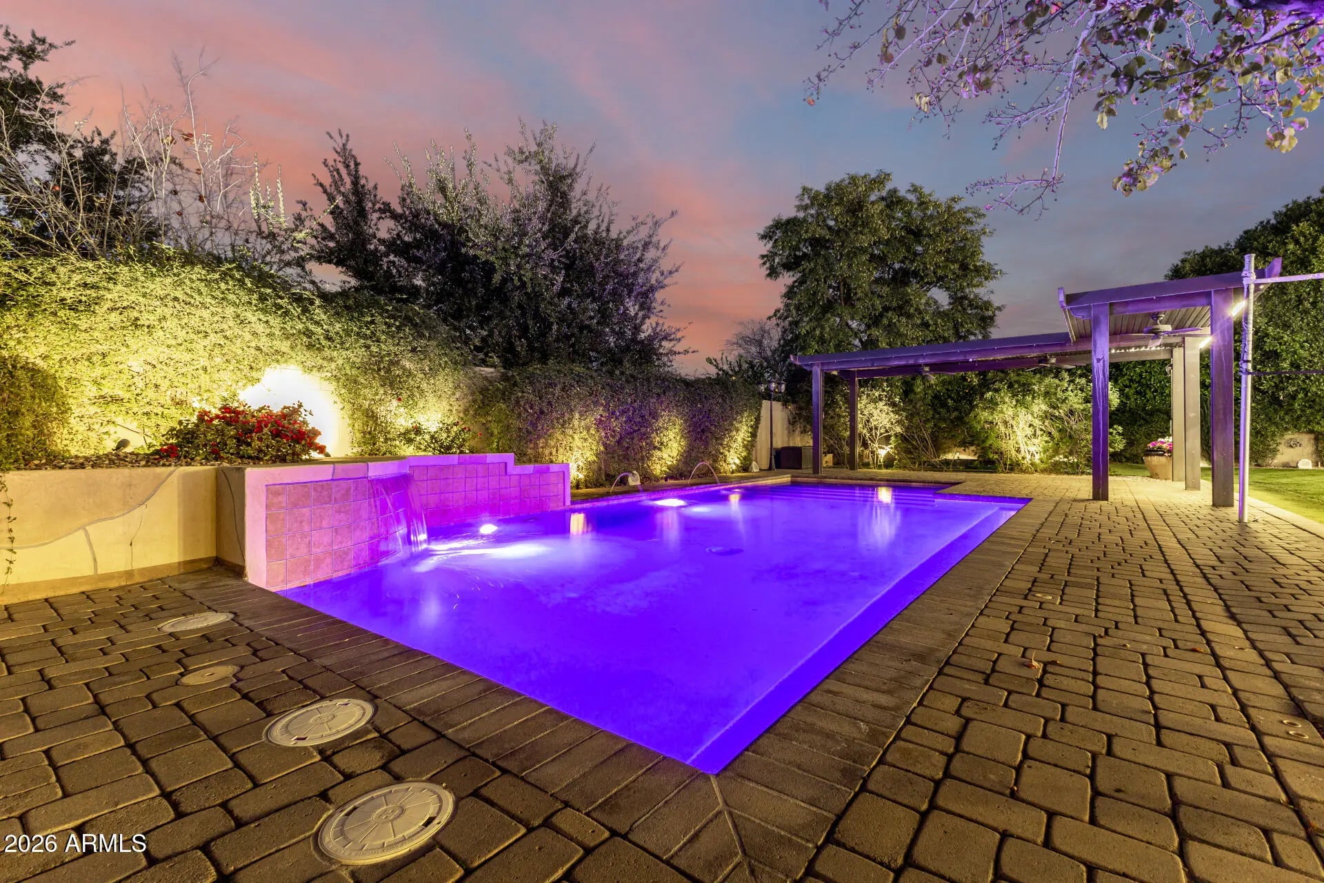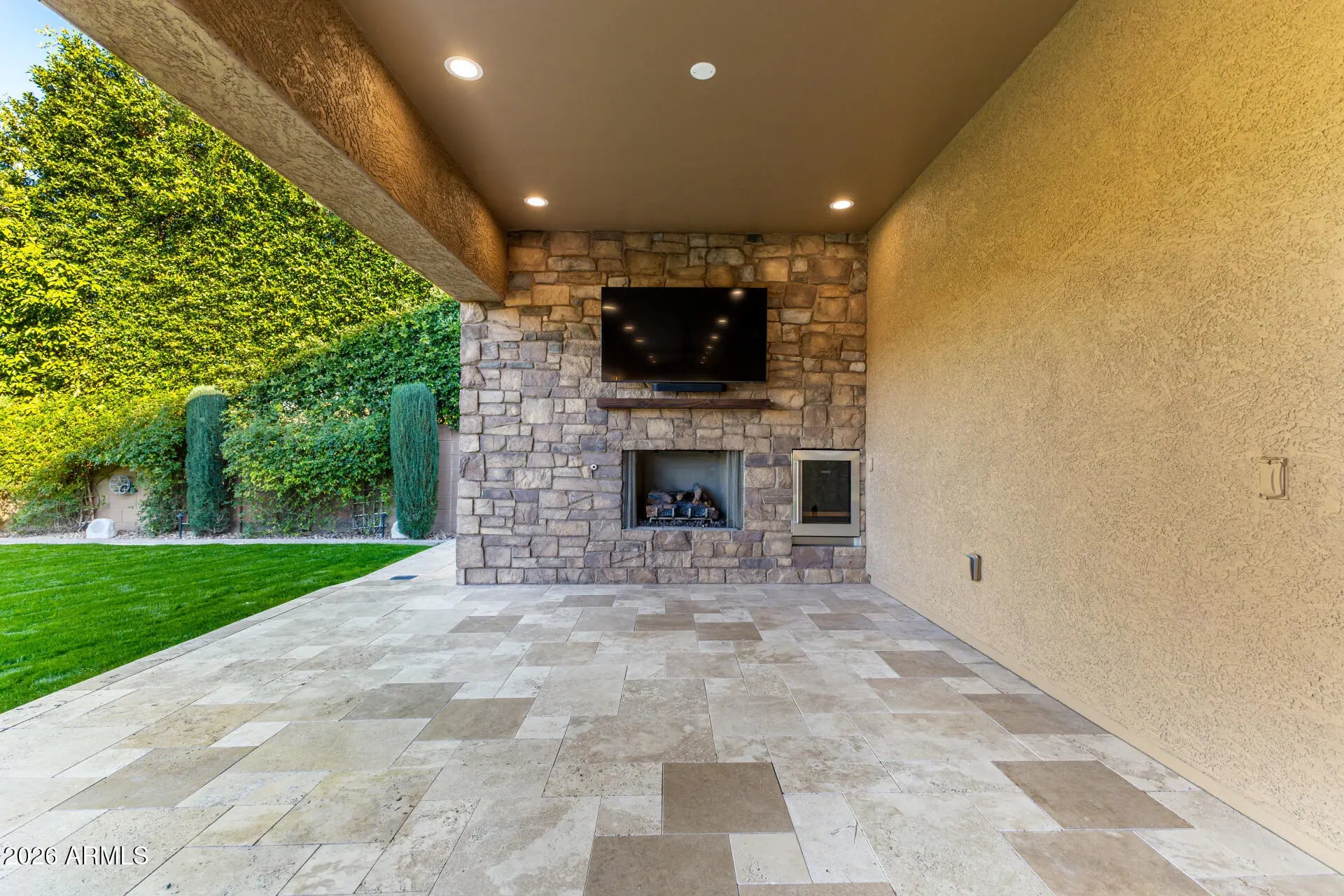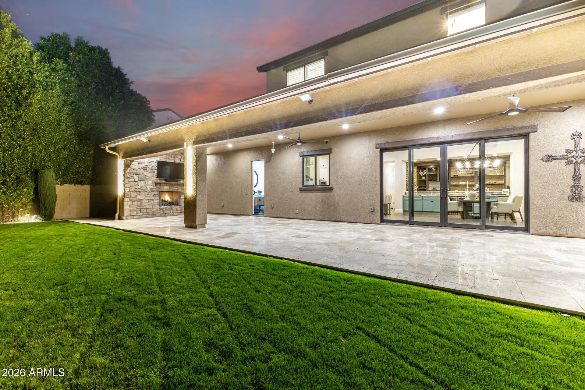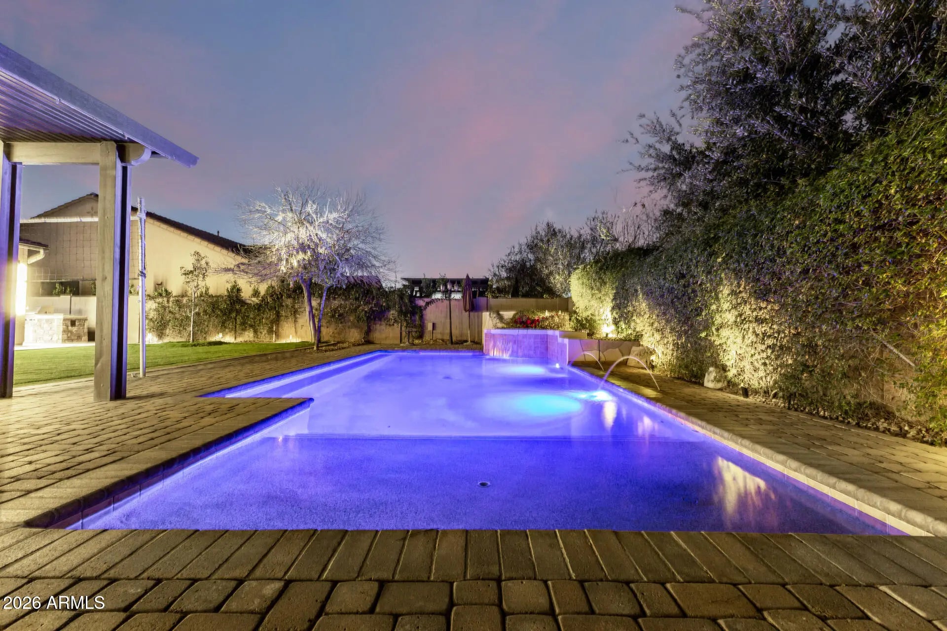 Experience unparalleled luxury with this exquisite estate, a 5-bedroom, 6-bathroom masterpiece boasting over $500,000 in high-end upgrades, perfectly positioned on an extremely private, north-facing lot within a quiet private cul-de-sac. This rare setting is further enhanced by a charming, storybook tree swing at the center of the cul-de-sac, creating a warm sense of community while preserving the privacy and exclusivity of the home. Thoughtfully designed to embody the ultimate Arizona lifestyle, this residence offers a seamless blend of elegance, comfort, and resort-style living. Upon entering the grand foyer, you are immediately captivated by the expansive open-concept design, highlighted by new flooring, designer finishes, and custom lighting that exude sophistication. The gourmet kitchen stands as the heart of the home, anchored by a massive waterfall-edge island, bespoke cabinetry, and top-of-the-line appliances... highlighted by an Italian-imported ILVE Nostalgie Series induction range. This iconic range blends timeless European-inspired design with cutting-edge technology, offering a safe, fast, and energy-efficient induction cooktop with precise temperature control. The sleek glass surface allows for effortless cleaning and increased cooking speed, while the residual heat indicator enhances safety by alerting when the surface remains warm. Designed with versatility in mind, the home features two dedicated dens. The downstairs den is ideal for a private home office or executive workspace, while the upstairs den serves as a perfect kids' playroom or teen retreat, complete with a built-in refrigerator for added convenience. For those who cherish hosting, the reimagined dining and entertaining lounge offers a seamless blend of modern elegance and functionality. Sliding doors open to a private courtyard, extending gatherings outdoors and creating an intimate setting around the fireplace beneath the starlit Arizona sky. Every detail has been meticulously curated, including brand-new Carrier AC units, fresh interior and exterior paint, custom blinds and shutters, and updated door hardware throughout. The expanded four-car garage offers ample space for vehicles, storage, and lifestyle needs. The backyard is a true private retreat. A huge covered patio spanning the length of the home features a cozy outdoor fireplace, built-in grill, beverage fridge, and pre-wiring for heaters... creating an exceptional year-round entertaining space. The resort-style pool showcases sheer descents, elegant fountains, and a spacious Baja step, perfect for lounging, sunbathing, or safe play, while adding to the tranquil, resort-like ambiance. A shaded ramada provides a peaceful escape for lounging or dining al fresco, and a private poolside bathroom with a full shower offers unmatched convenience. The expansive grassy yard is thoughtfully designed for recreation and relaxation, currently set up with a removable volleyballnet, ample space for playing catch, tag, or football, and a built-in, in-ground trampoline that blends seamlessly into the landscape... offering fun and activity without compromising the elevated aesthetic of the space. This is more than a home... it's a lifestyle. A rare opportunity to enjoy privacy, elegance, and meaningful community moments... all within one extraordinary property. Homes of this caliber are seldom available... don't miss your chance to make this one yours.