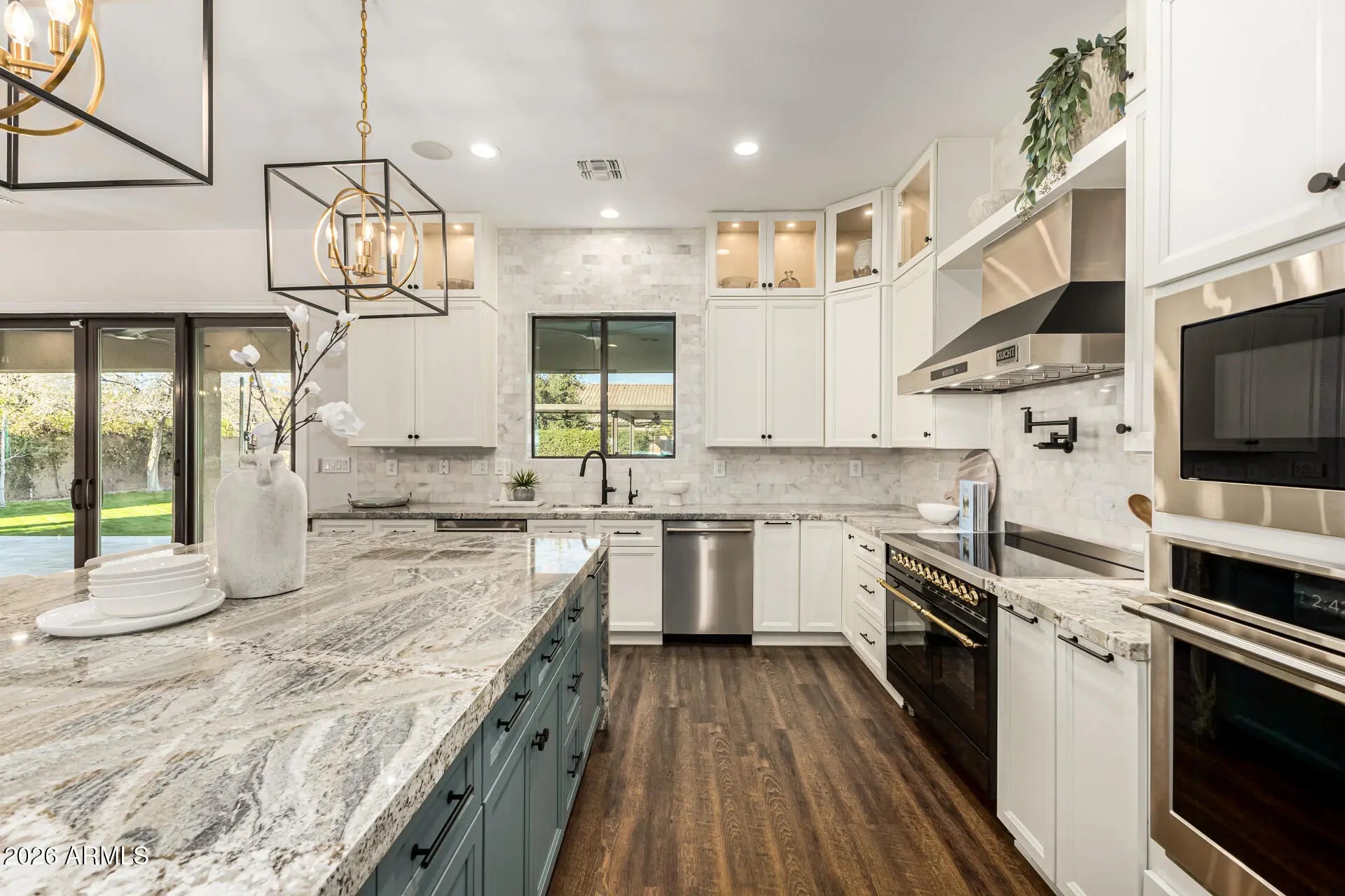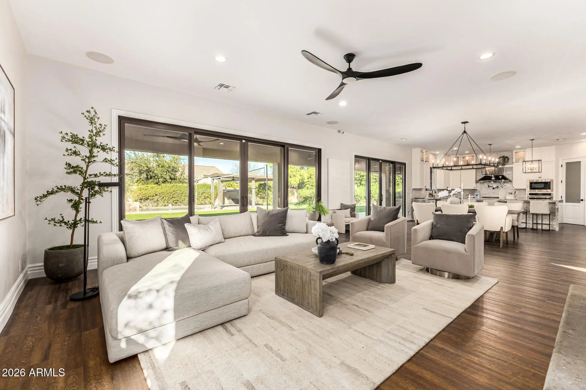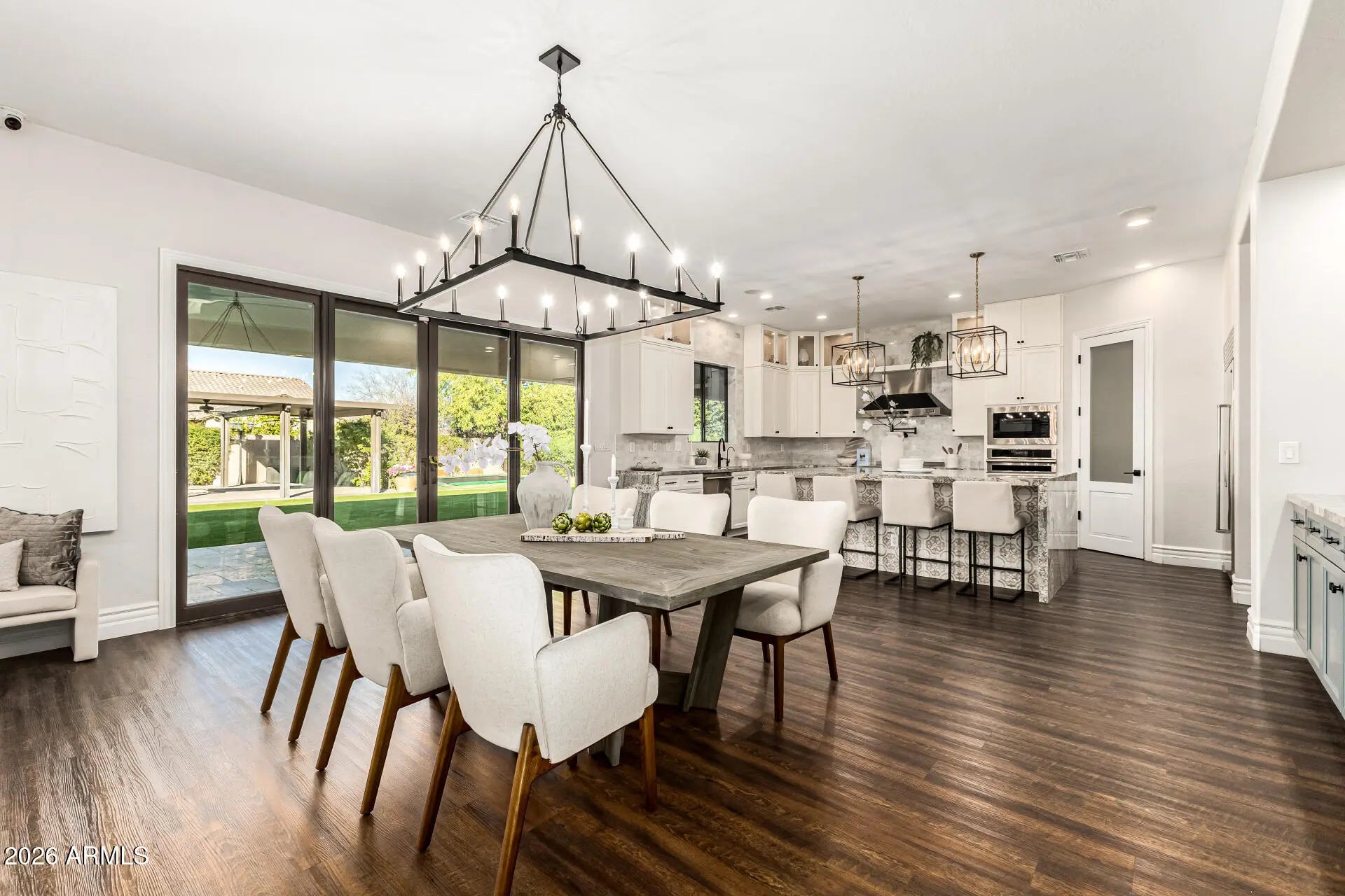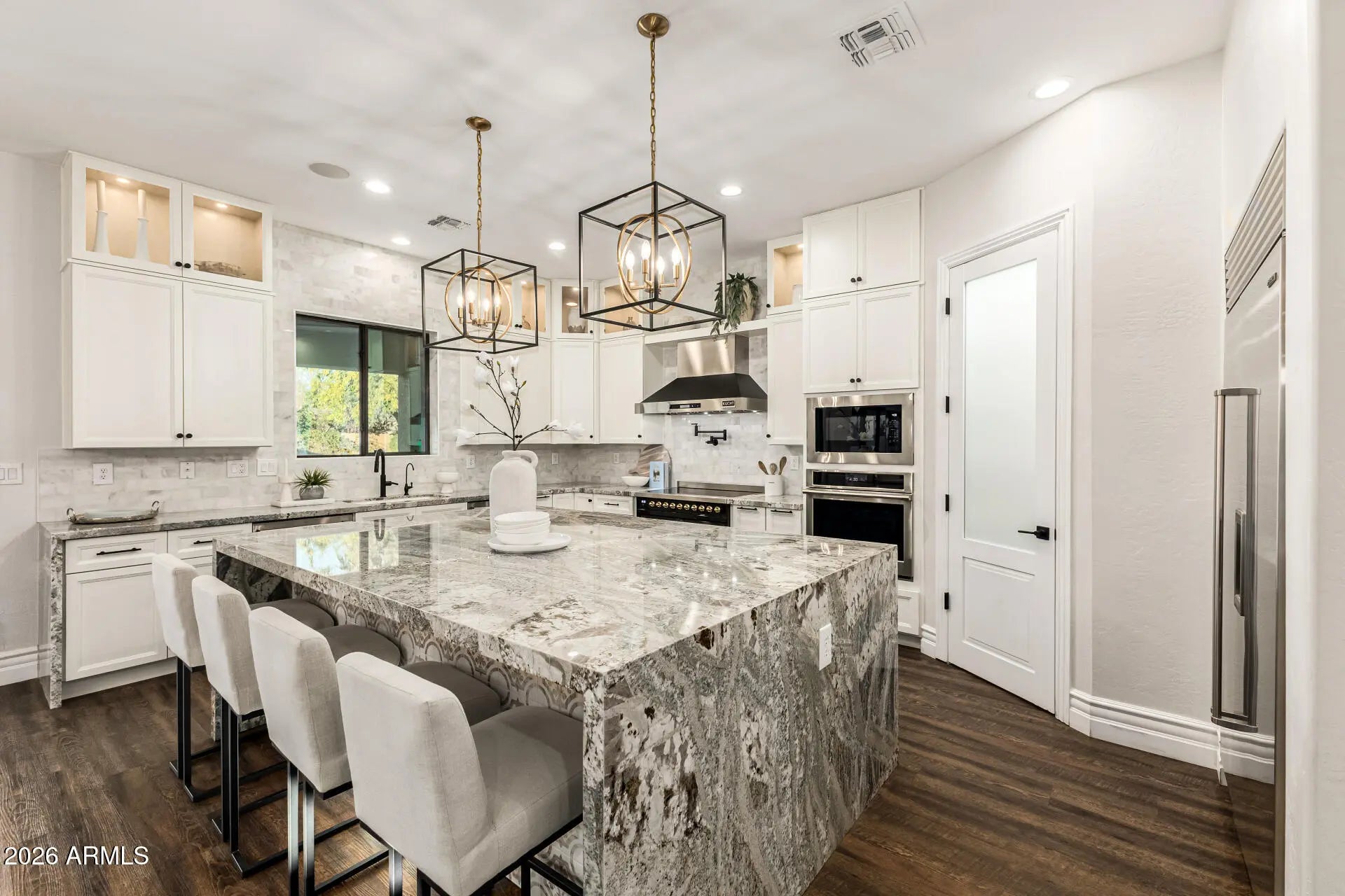 Experience unparalleled luxury with this exquisite estate, a 5-bedroom, 6-bathroom masterpiece boasting over $500,000 in high-end upgrades, perfectly positioned on an extremely private, north-facing lot within a quiet private cul-de-sac. This rare setting is further enhanced by a charming, storybook tree swing at the center of the cul-de-sac, creating a warm sense of community while preserving the privacy and exclusivity of the home. Thoughtfully designed to embody the ultimate Arizona lifestyle, this residence offers a seamless blend of elegance, comfort, and resort-style living. Upon entering the grand foyer, you are immediately captivated by the expansive open-concept design, highlighted by new flooring, designer finishes, and custom lighting that exude sophistication. The gourmet kitchen stands as the heart of the home, anchored by a massive waterfall-edge island, bespoke cabinetry, and top-of-the-line appliances... highlighted by an Italian-imported ILVE Nostalgie Series induction range. This iconic range blends timeless European-inspired design with cutting-edge technology, offering a safe, fast, and energy-efficient induction cooktop with precise temperature control. The sleek glass surface allows for effortless cleaning and increased cooking speed, while the residual heat indicator enhances safety by alerting when the surface remains warm. Designed with versatility in mind, the home features two dedicated dens. The downstairs den is ideal for a private home office or executive workspace, while the upstairs den serves as a perfect kids' playroom or teen retreat, complete with a built-in refrigerator for added convenience. For those who cherish hosting, the reimagined dining and entertaining lounge offers a seamless blend of modern elegance and functionality. Sliding doors open to a private courtyard, extending gatherings outdoors and creating an intimate setting around the fireplace beneath the starlit Arizona sky. Every detail has been meticulously curated, including brand-new Carrier AC units, fresh interior and exterior paint, custom blinds and shutters, and updated door hardware throughout. The expanded four-car garage offers ample space for vehicles, storage, and lifestyle needs. The backyard is a true private retreat. A huge covered patio spanning the length of the home features a cozy outdoor fireplace, built-in grill, beverage fridge, and pre-wiring for heaters... creating an exceptional year-round entertaining space. The resort-style pool showcases sheer descents, elegant fountains, and a spacious Baja step, perfect for lounging, sunbathing, or safe play, while adding to the tranquil, resort-like ambiance. A shaded ramada provides a peaceful escape for lounging or dining al fresco, and a private poolside bathroom with a full shower offers unmatched convenience. The expansive grassy yard is thoughtfully designed for recreation and relaxation, currently set up with a removable volleyballnet, ample space for playing catch, tag, or football, and a built-in, in-ground trampoline that blends seamlessly into the landscape... offering fun and activity without compromising the elevated aesthetic of the space. This is more than a home... it's a lifestyle. A rare opportunity to enjoy privacy, elegance, and meaningful community moments... all within one extraordinary property. Homes of this caliber are seldom available... don't miss your chance to make this one yours.