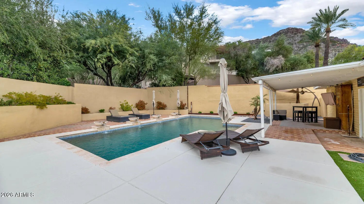 Rare Mid-Century Gem with Sweeping Views A stunning mid-century retreat in a prestigious enclave with breathtaking mountain and city views. This smart-enabled oasis features seamless indoor-outdoor living and a resort-style backyard with custom Paddock pool, elegant fountains, and five distinct patios perfect for entertaining under the stars. Inside, discover two luxurious primary suites with spa-like bathrooms featuring Japanese smart toilets and travertine floors. The chef-inspired kitchen boasts high-end finishes, while a spacious walk-in closet connects to a private laundry room for ultimate convenience. Set on nearly 1/3 acre with no HOA and zoned for expansion. Direct access to Piestewa Peak trails, minutes from Arizona Biltmore, Biltmore Fashion Park, and world-class dining.