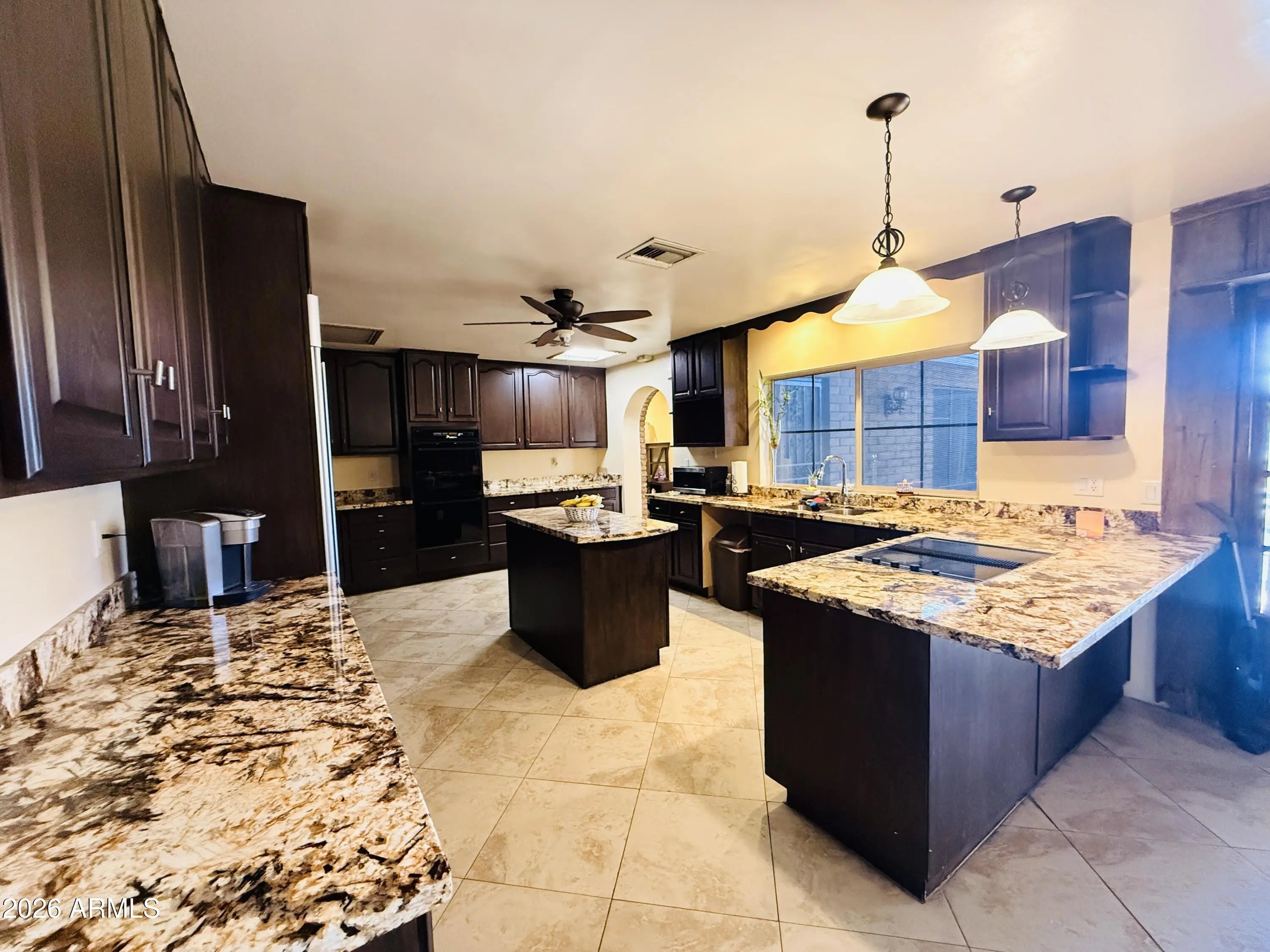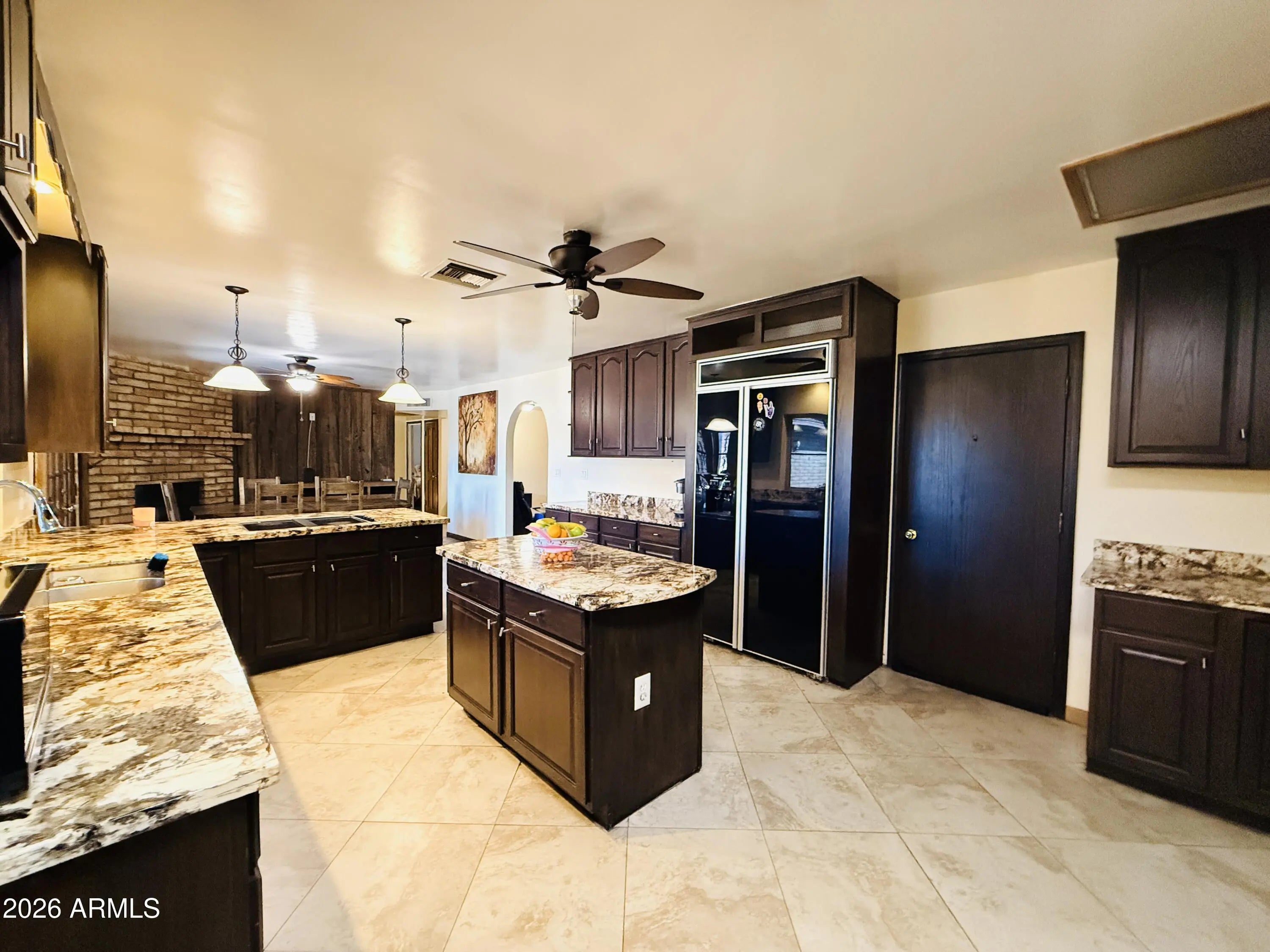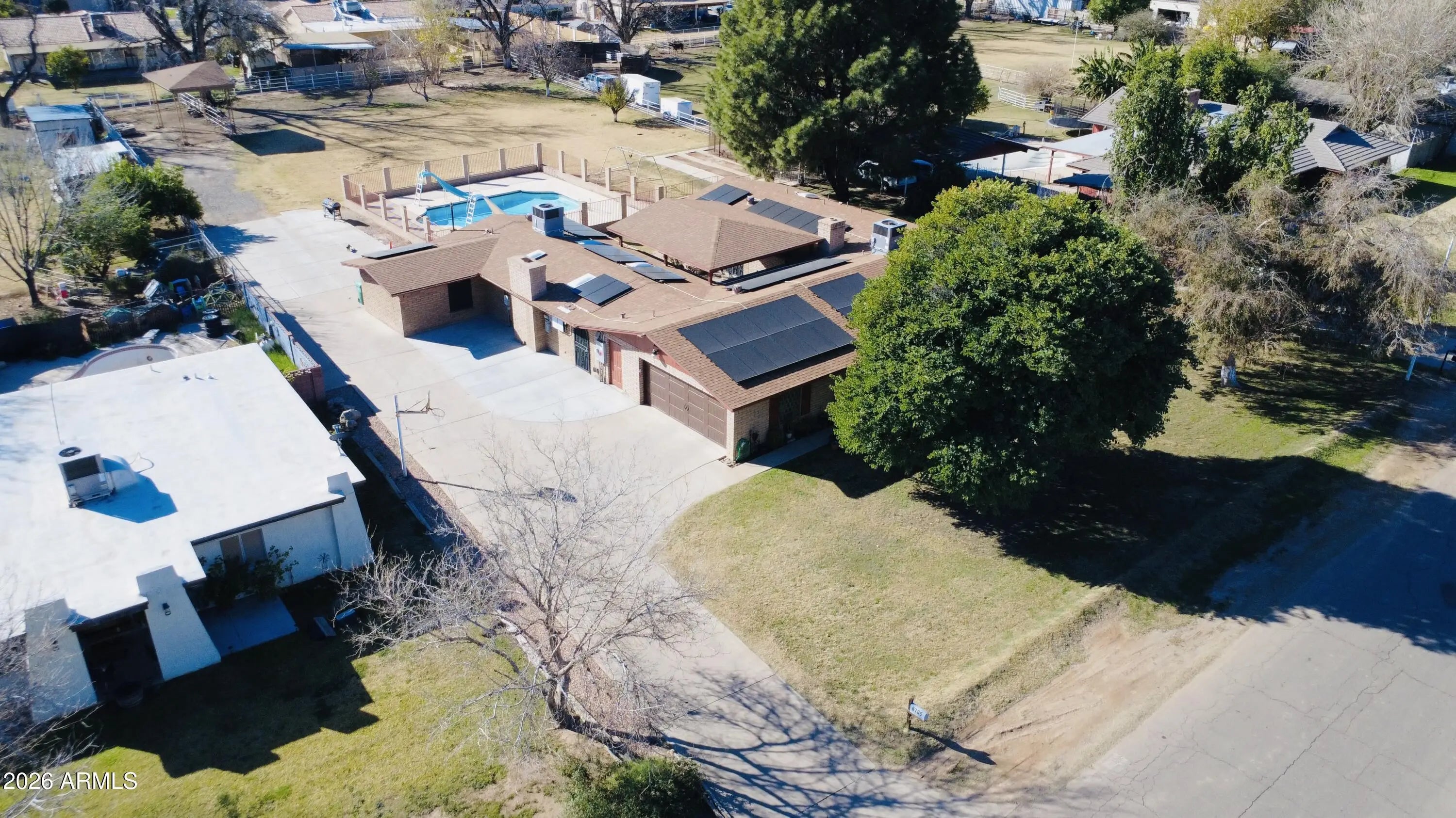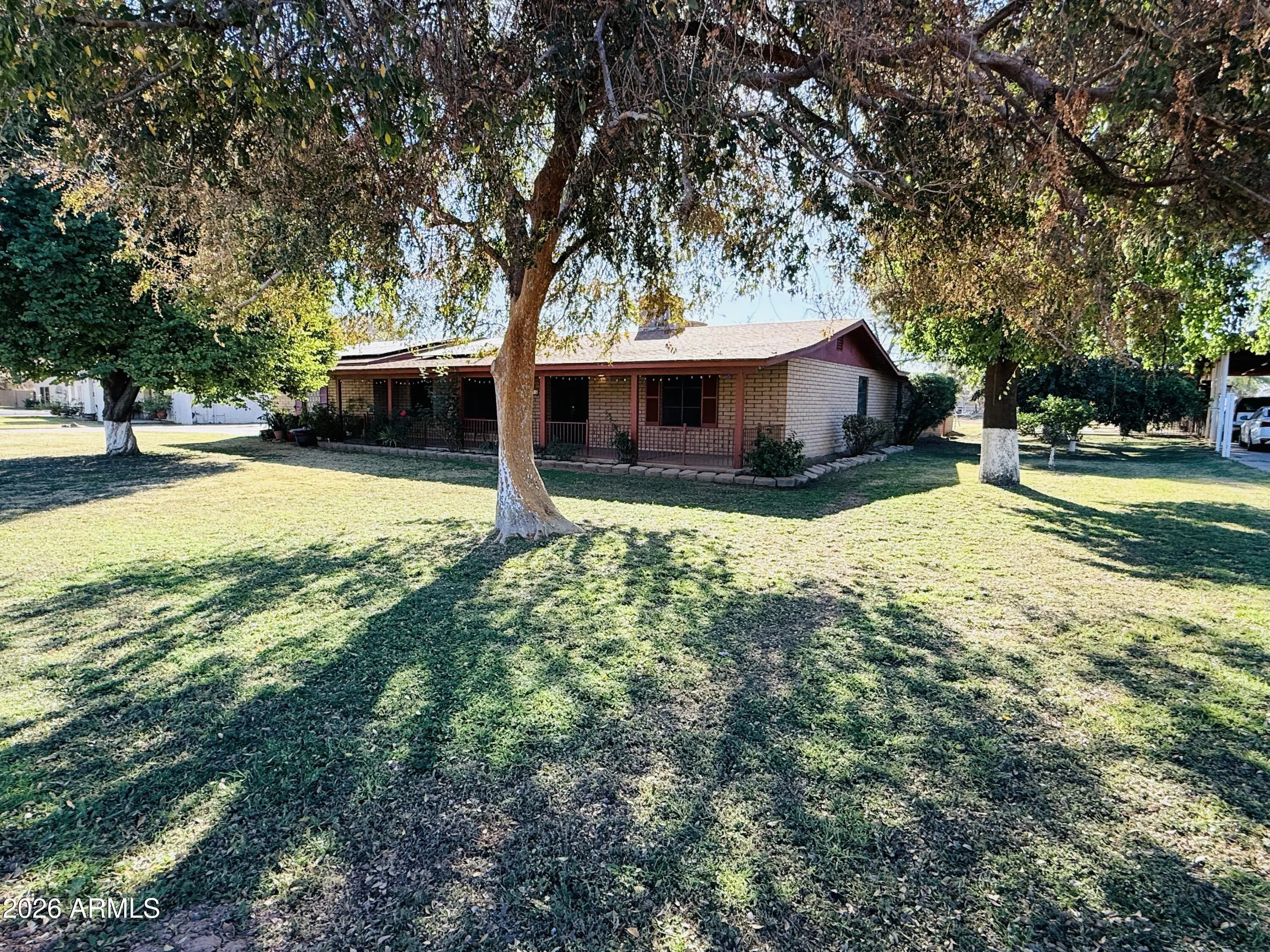 Looking for a peaceful horse-friendly home with space to spread out? This 6-bed ranch property in Tolsun Farms offers a rare blend of country charm and usable land. Set on nearly an acre, this 3,395 sq ft home features lush mature trees, flood irrigation, and plenty of room for horses, RVs, and outdoor living. The main home includes 4 Bedroom, 3 full baths, granite kitchen counters, fireplace, newer LVT and tile flooring, plus 2020 roof and HVAC. Attached guest quarters add 2 beds, full bath, full kitchen, vaulted great room, and fireplace. No HOA, fenced pool, and green open space in a highly desired Tolleson location.
