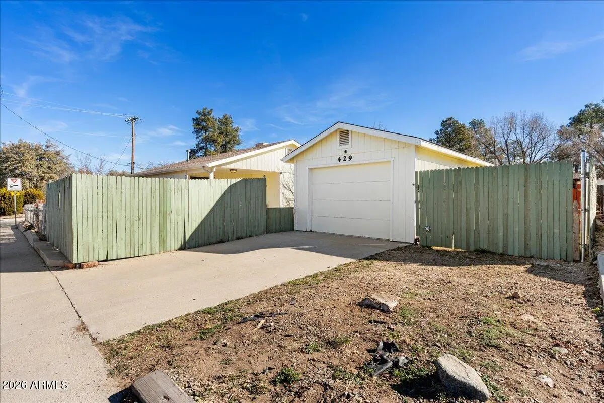 Recently remodeled and ideally located just minutes from downtown Prescott, this charming 3-bedroom, 2-bath home offers both convenience and versatility. Tile flooring flows throughout the home, complementing the bright and welcoming living spaces. The lovely kitchen opens to a comfortable dining area, perfect for everyday living or entertaining. Enjoy the rare benefit of two separate driveways—one off Gayle Gardner Way and a second from Paar Drive on the north side of the property. The secondary driveway offers potential small RV or additional parking, adding exceptional flexibility. Relax on the private front patio surrounded by low-maintenance landscaping, creating a peaceful outdoor retreat. The third bedroom does not have a closet and works beautifully as a home office, hobby room, or guest space. A detached one-car garage provides added storage or parking, while mature fruit trees enhance the property's charm and usability. This thoughtfully updated home combines location, function, and outdoor enjoymentan excellent opportunity in the heart of Prescott.