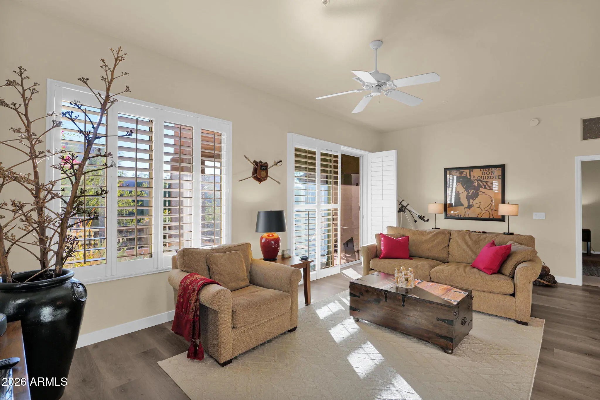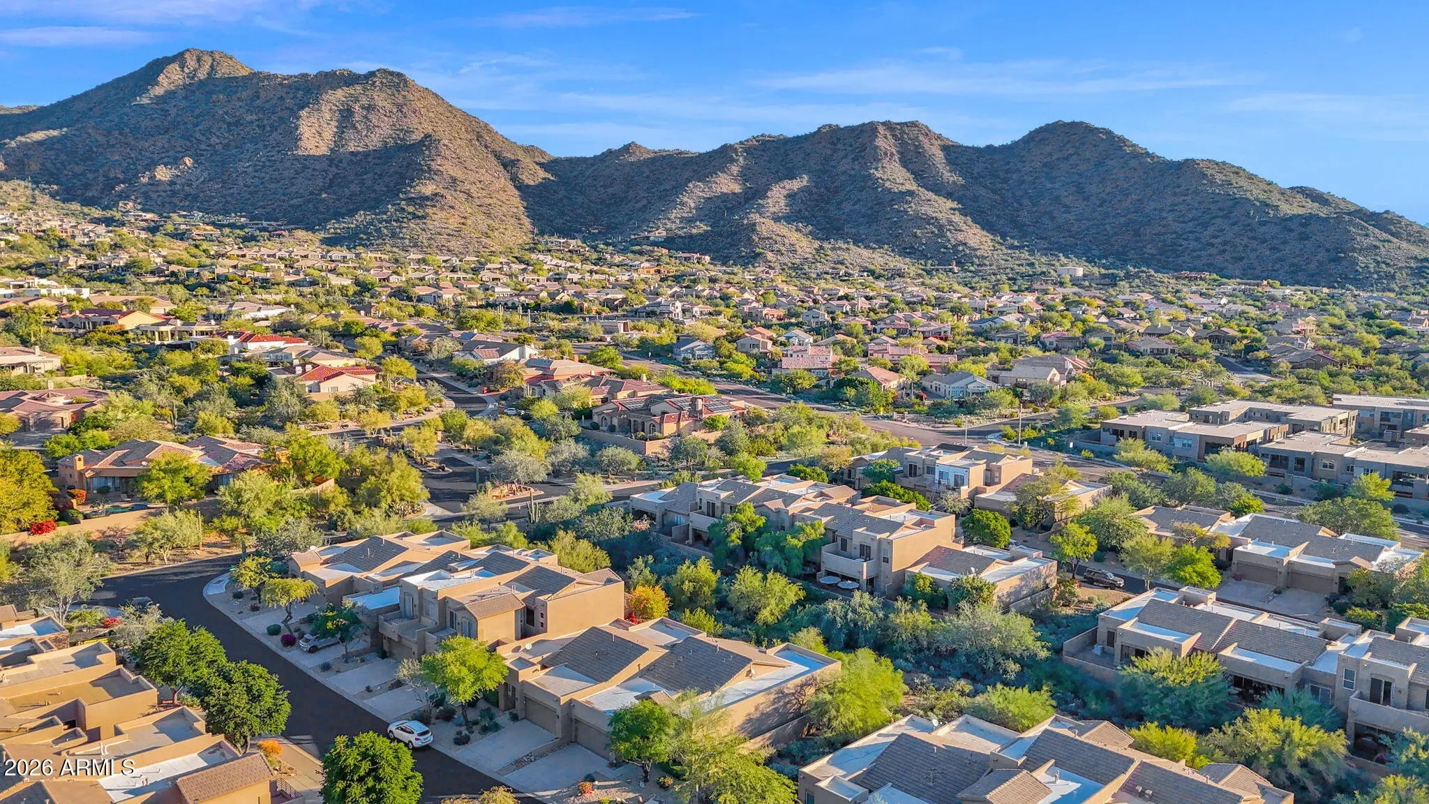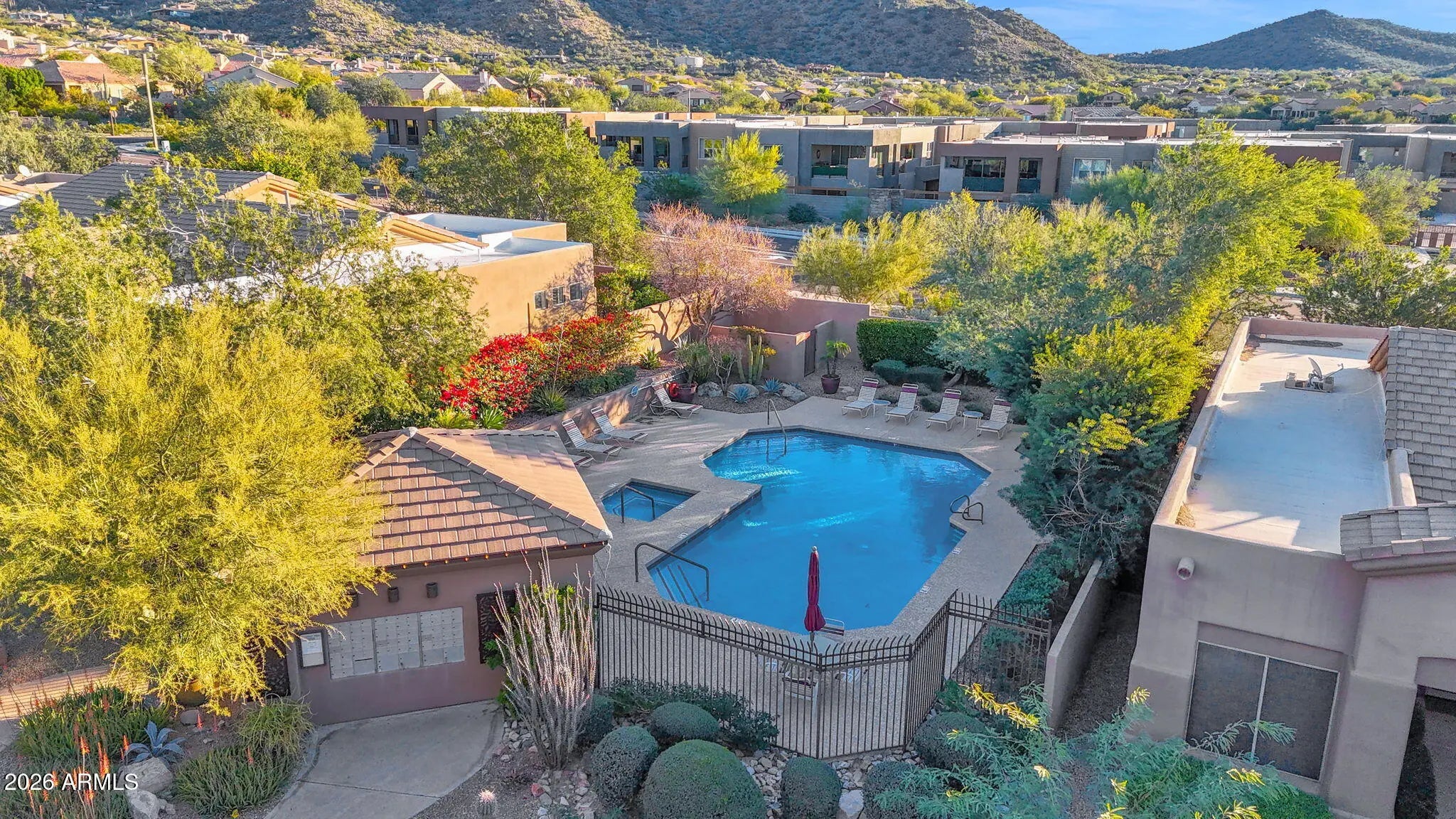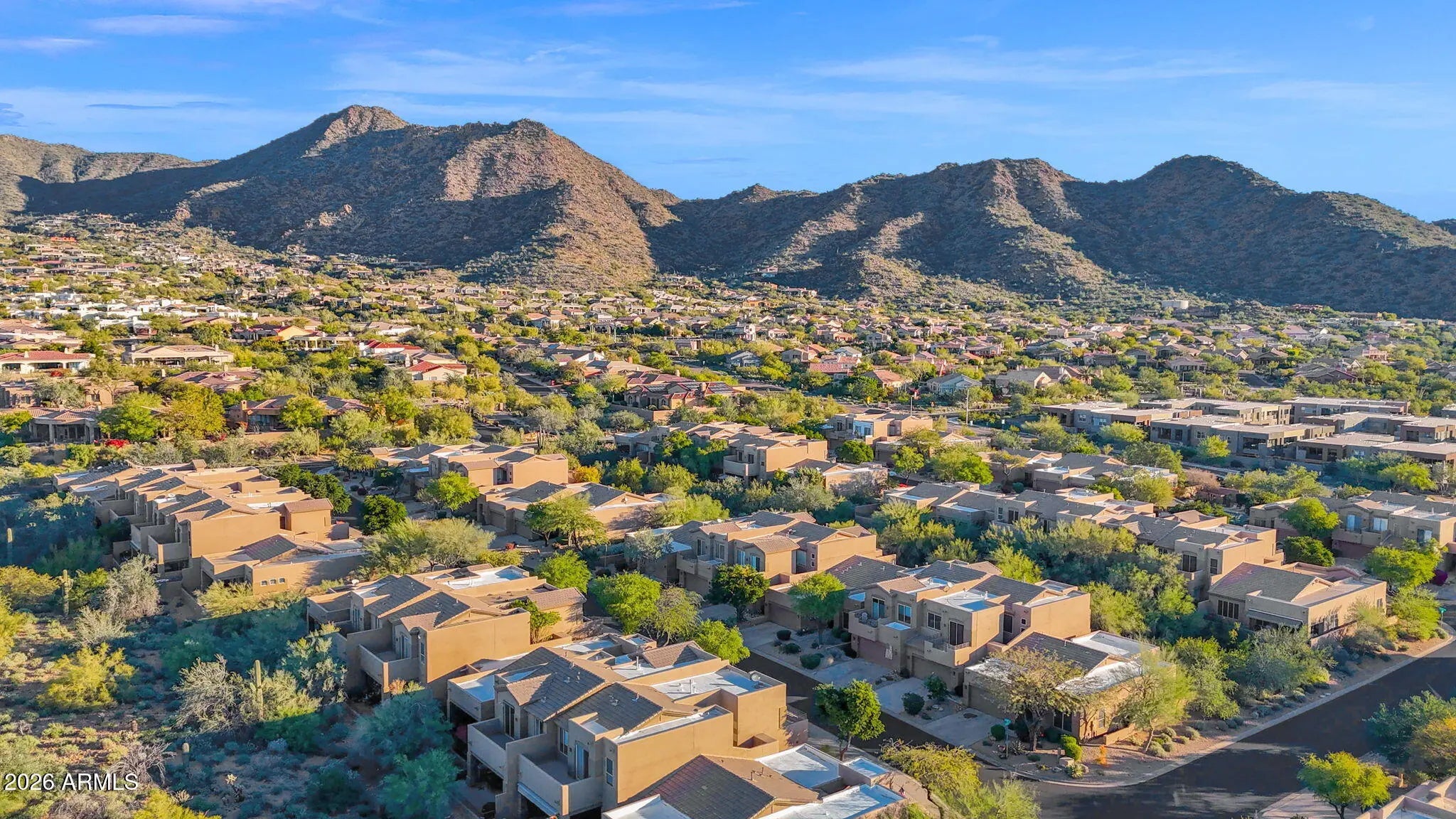 Tucked away at the base of the McDowell Mountains, this charming single-level retreat welcomes you with a sense of ease and light the moment you step inside. Tall ceilings and an open, flowing floor plan create an airy atmosphere, perfect for both, relaxed everyday living and effortless entertaining. The heart of the home is the updated kitchen, where crisp white cabinetry and stainless steel appliances come together in a bright, timeless design that feels both inviting and refined. Step out to a private covered patio that overlooks a peaceful natural open space and enjoy the morning coffee or unwind as the desert sky changes colors at sunset. Thoughtful touches, such as shutters throughout add privacy, warmth, & style, while a 2-car garage and a low HOA make life refreshingly simple. The residents enjoy access to the community's heated pool and spa, enhancing the lock-and-leave lifestyle this townhome offers. Conveniently located near scenic hiking trails, shopping, dining, and top-rated BASIS schools, this home blends comfort, convenience, and the beauty of desert living into one truly special setting.