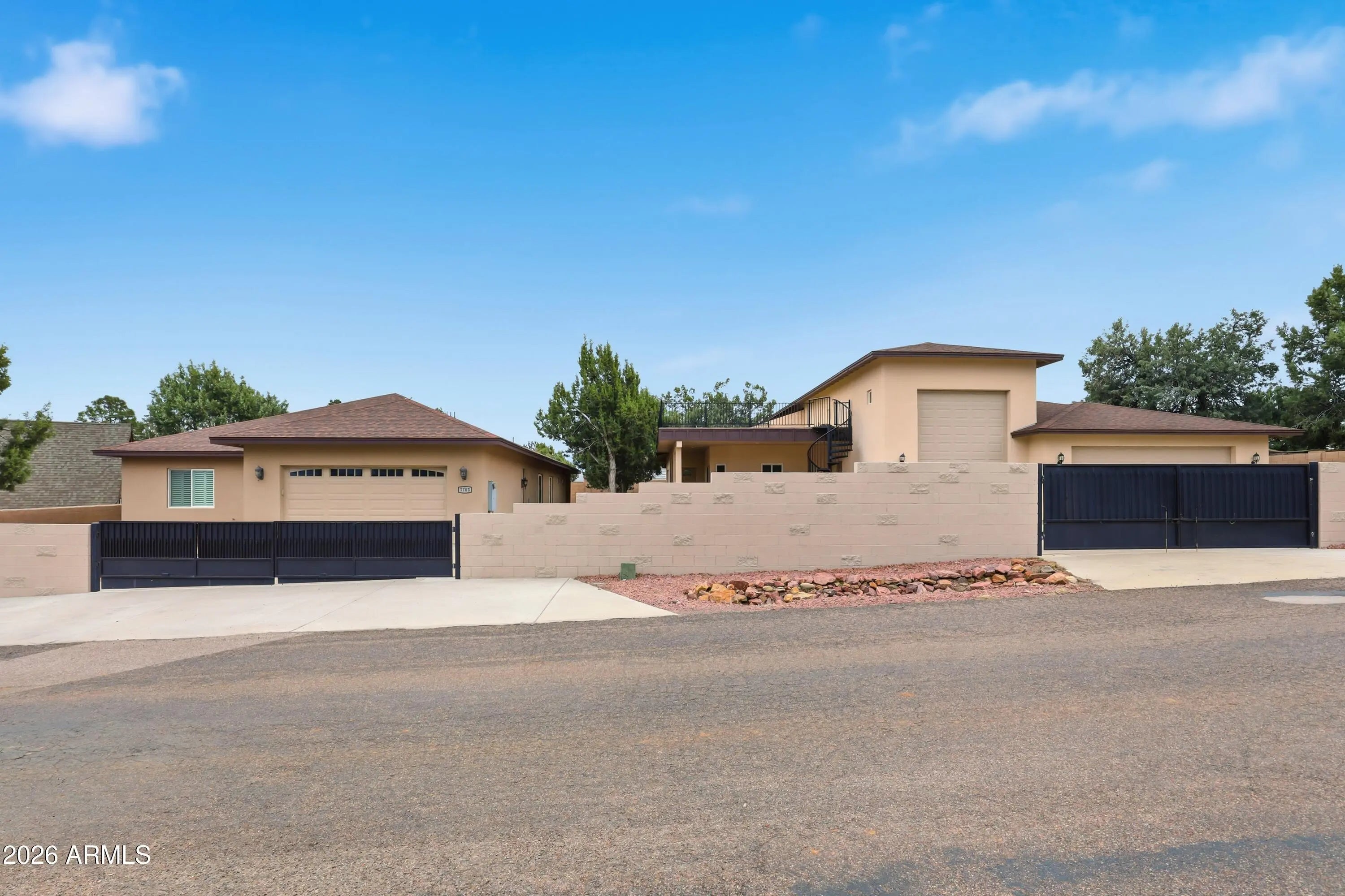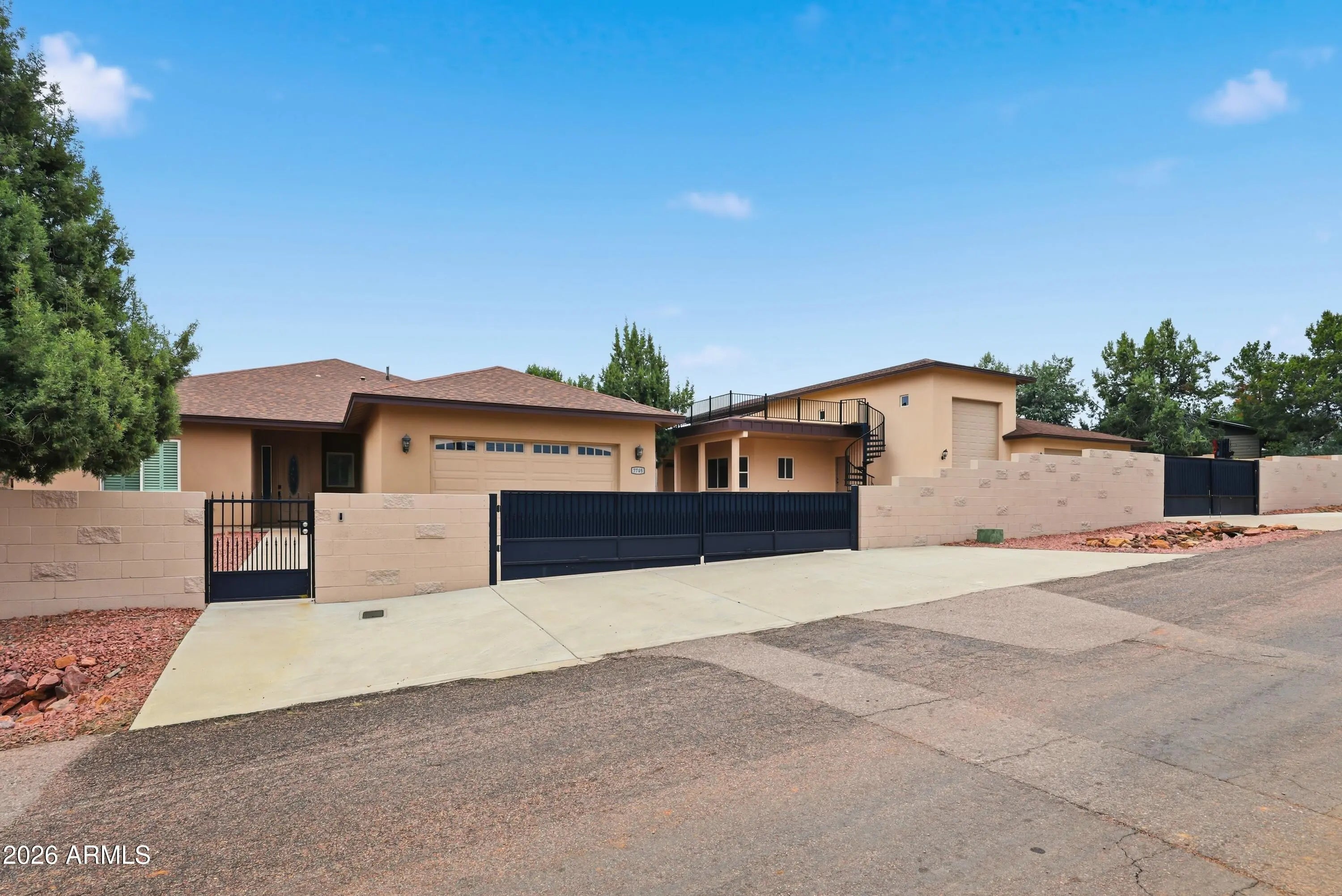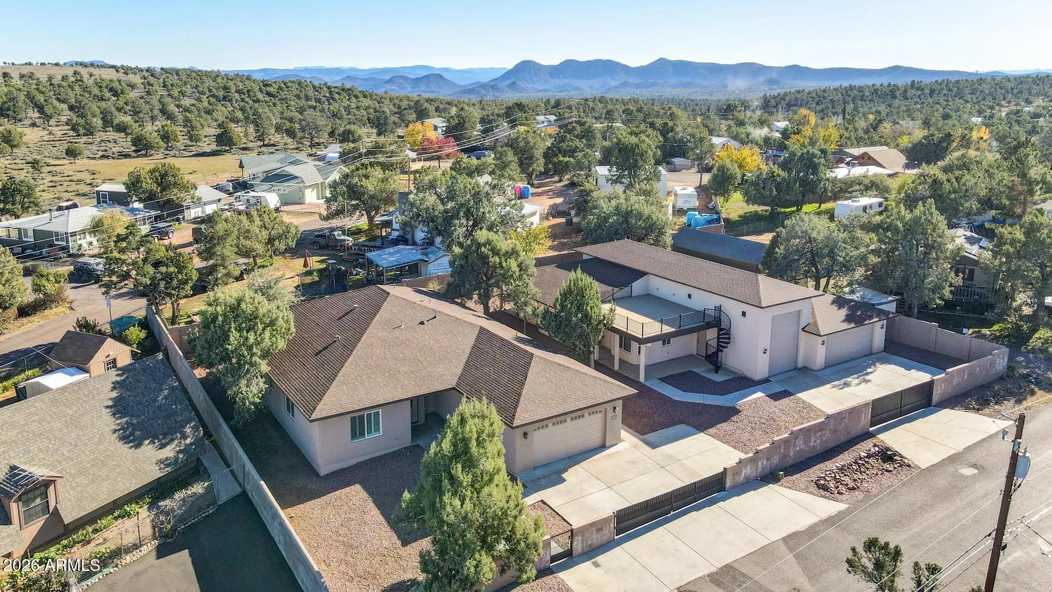 Bring your RV, car collection, and toys — this property was built to accommodate them all. With flexible living spaces, premium finishes, unmatched storage, and scenic Rim views, it's a rare find in Mesa Del Caballo. Discover this one-of-a-kind investment property designed for comfort, security, and versatility — all with breathtaking views of the Mogollon Rim. Secure gated entry for peace of mind. Concrete driveways with ample space for trailers or additional vehicles. RV gate & RV garage complete with its own living quarters — Includes a full kitchen, bathroom, and private living space, making it ideal as a guest suite, multi-generational setup, or private retreat. No HOA restrictions on nearly ½ acre lot. Private Rooftop balcony with Mogollon Rim views. Secure gated entry for peace of mind. Concrete driveways with ample space for trailers or additional vehicles. RV gate & RV garage complete with its own living quarters Includes a full kitchen, bathroom, and private living space, making it ideal as a guest suite, multi-generational setup, or private retreat. No HOA restrictions on nearly ½ acre lot. Private Rooftop balcony with Mogollon Rim views. Modern kitchen featuring high-end appliances, granite countertops, and abundant storage. Custom tile & wood flooring throughout. Luxury window treatments for a refined finish. Separate HVAC system for the 2,000 sq ft garage Plenty of car space to showcase your collection! Easy access to trails, lakes, and outdoor recreation while still close to shops, and dining. This property is a dream for adventurers, families, or anyone seeking a mountain retreat with flexible living options and abundant garage space.