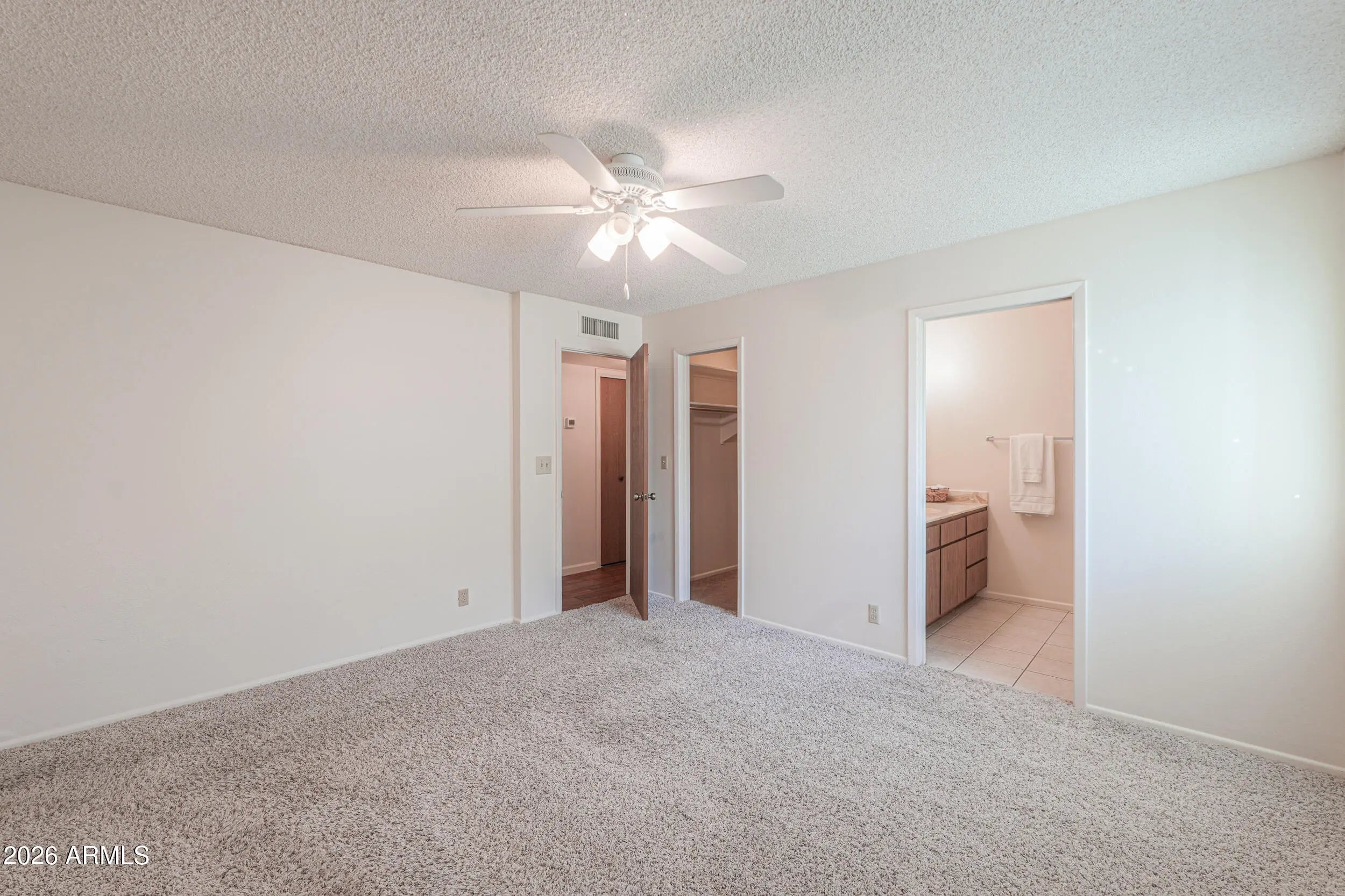 Welcome to this beautiful 2 bedroom, 2.5 bathroom home located in the desirable 55+ community of Sunland Village. Offering 1,620 square feet of comfortable living space. A brand-new roof was completed in 2024, along with exterior repainting, giving the home great curb appeal. Dual pane windows enhance energy efficiency, while the interior was freshly painted for a clean feel. The flooring has been redone with tile throughout the main living areas and plush carpet in both bedrooms. The enclosed Arizona Room includes added AC vents, and was redesigned to create an open, functional extension of the living space. Enjoy everything this home and community has to offer!
