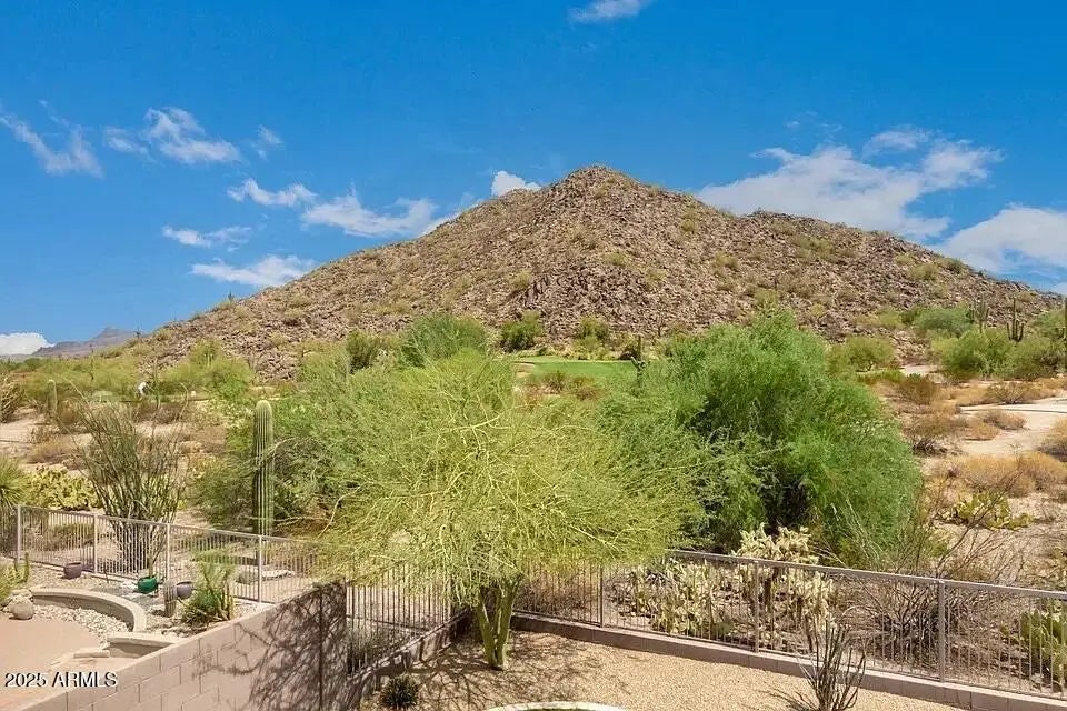 This golf course residence captures sweeping mountain views within the coveted Las Sendas community. The modern kitchen is appointed with granite countertops, gas cooktop, stainless steel appliances, pantry, and tile backsplash. A striking two-way gas fireplace connects the great room and living room, creating warmth and architectural interest. The oversized primary suite offers a private sitting area, balcony, walk-in closet, dual sinks, and separate soaking tub and shower. A full bedroom and bath on the main level provide flexibility for guests or home office use. The backyard retreat features a covered patio, built-in BBQ, and low-maintenance turf. Residents enjoy resort-style pools, tennis, pickleball, scenic trails, and easy access to outdoor recreation.
