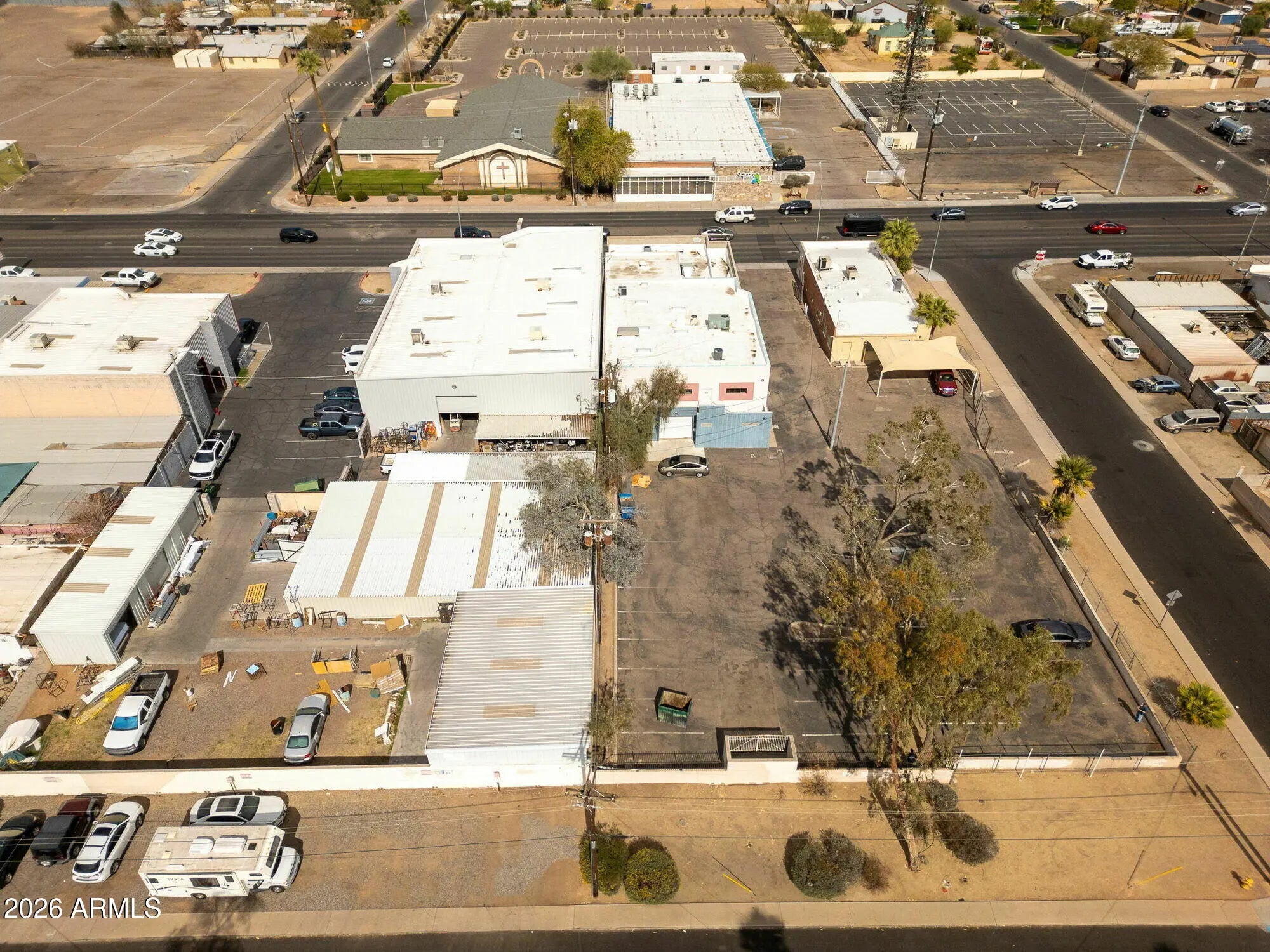 Spanning 6,540 SF, this two-story property encompasses 10 offices, a conference room, reception area, break room, and 2 restrooms. The space has 3 expansive warehouses totaling 1,990 SF, a 22-foot clear height, and a secure 8,993 SF fenced yard, ideal for a range of industrial or commercial uses. With convenient grade-level rollup access and C-2 zoning, this property is strategically situated just ½ mile from the I-10 and 51 freeways.