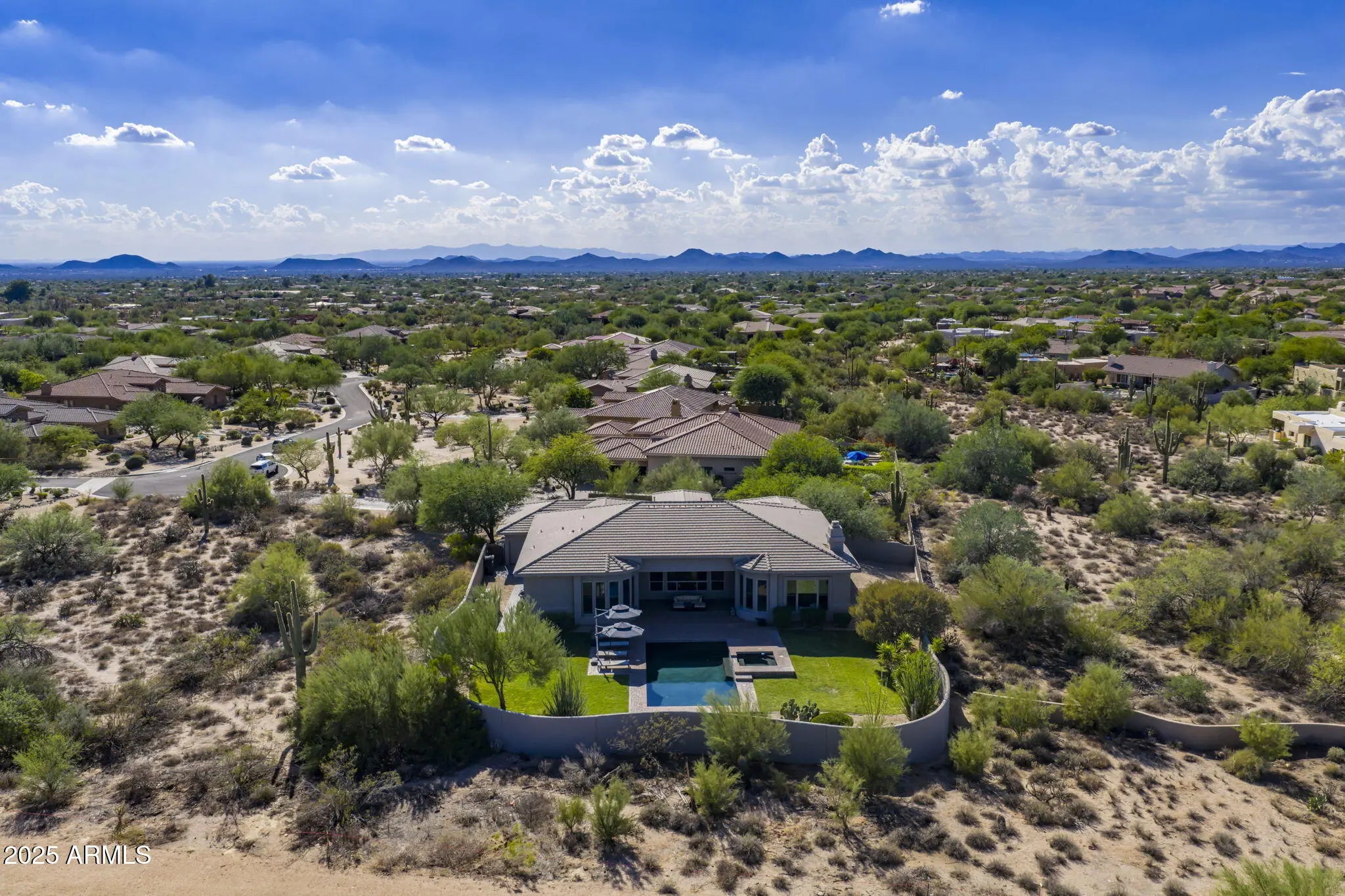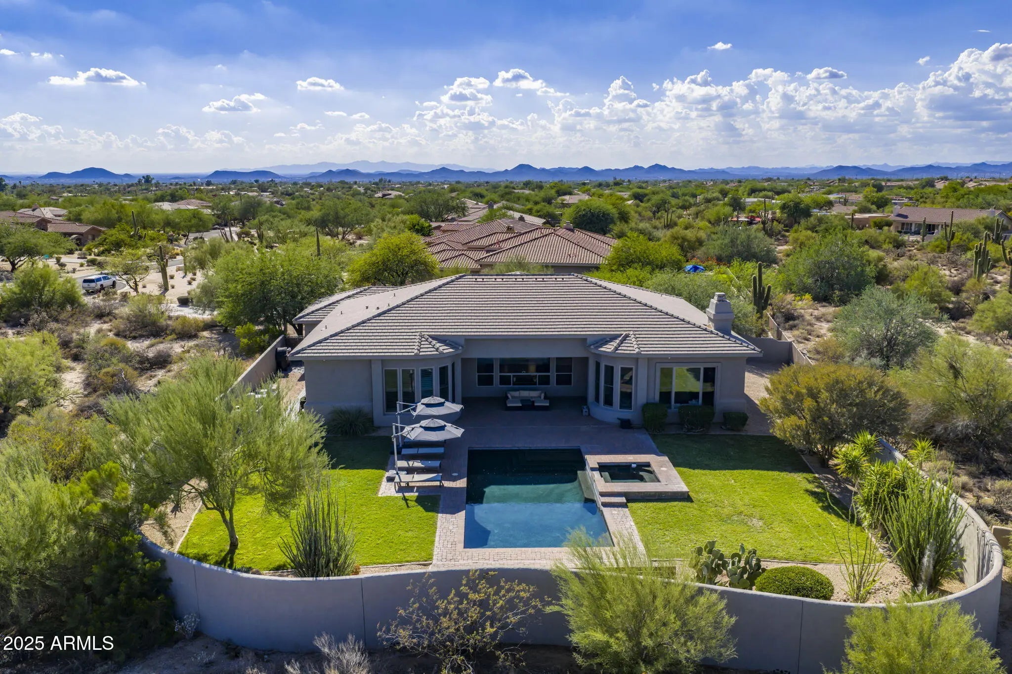 This estate offers privacy, space, and modern amenities in one of North Scottsdale's most desirable locations. Set on 1.5 acres with a long private driveway, this 5-bedroom, 3.5-bathroom home combines comfort with functionality. Inside, the flexible floor plan is designed to adapt to your lifestyle, featuring open living spaces, and full home security and sound system. Large primary suite includes an oversized walk-in closet! The gourmet kitchen flows seamlessly into the living and dining areas, perfect for entertaining or casual nightly gatherings. The 4-car garage, equipped with a mini split system and EV chargers. Resort style backyard with a pool, hot tub, lush grassy area, all framed by stunning views.