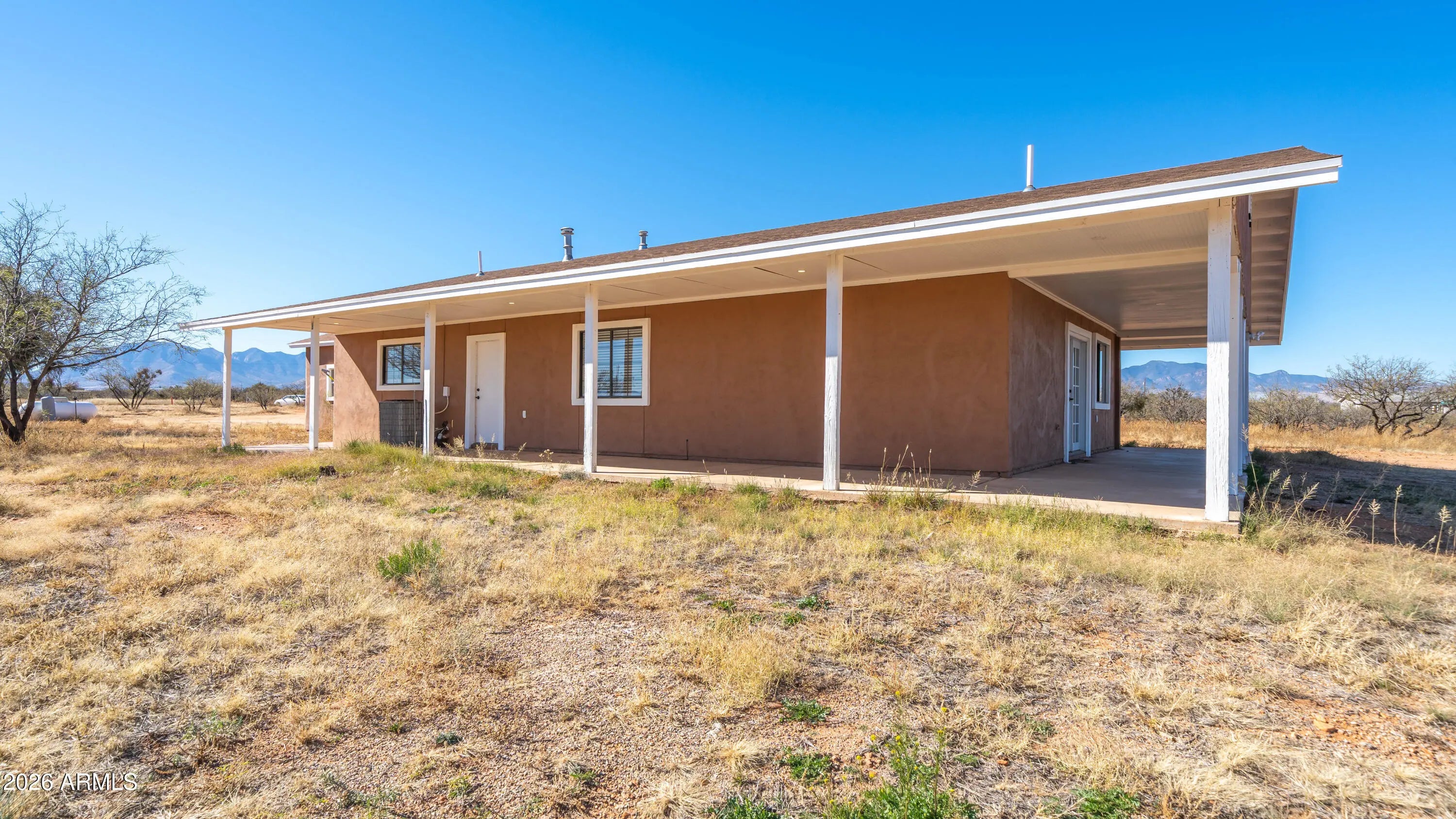 Enjoy the most scenic views of the surrounding Huachuca and Mule mountain ranges from the comfort of a huge wrap around porch. This beautiful 3 bedroom 2 bath home offers the best of country living and plenty of space to raise a mini farm, park an RV or bring your horses.