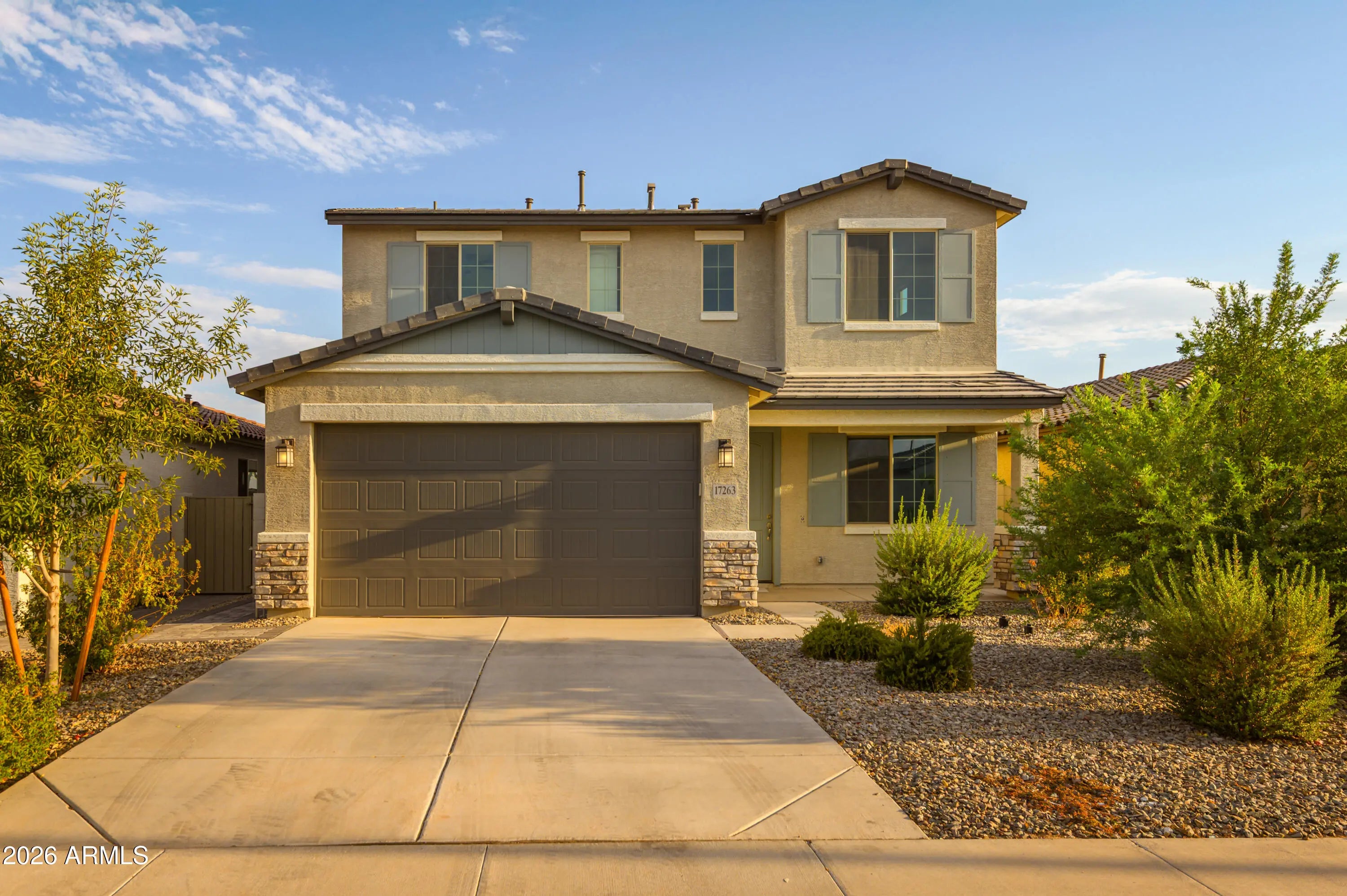 Welcome to this beautifully designed 3-bedroom, 2.5-bath home that offers both comfort and style in every detail. The expansive open floor plan creates a seamless flow throughout the main living areas, perfect for both entertaining and everyday living. Upstairs, a massive loft provides flexible space for a game room, media area, or additional living room, while the oversized bedrooms and bathrooms offer plenty of room to relax and unwind. Step outside to a large backyard finished with pavers and turf, where you'll enjoy the privacy of having no rear neighbors and the stunning backdrop of the White Tank Mountains. The home also features a spacious garage, upstairs laundry room for convenience, and thoughtfully designed spaces that maximize comfort and function.
