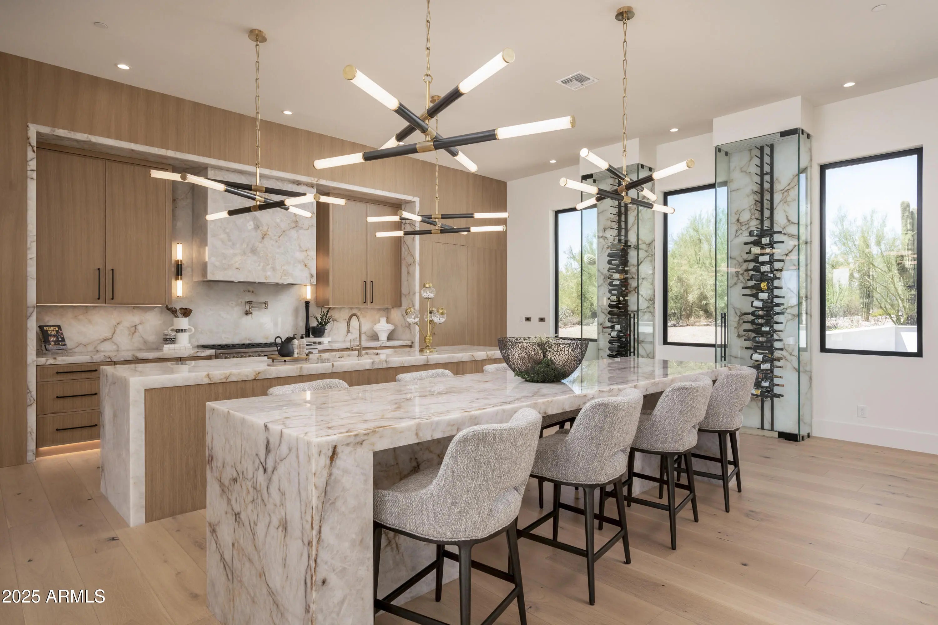 Welcome to Pinnacle Paradise. Luxury living, offering a blend of elegant design, functional spaces, and high-end amenities—all nestled on a nearly two-acre corner lot with sweeping mountain views in the exclusive, gated community. This home is completely rebuilt, and is like new. Offering two luxurious primary suites, each featuring spa-inspired bathrooms. Two additional en-suite bedrooms with walk-in closets. The attached guest quarters—complete with a private entrance, and full bath with steam shower. The gourmet kitchen is a true chef's dream, featuring dual oversized islands, top-of-the-line Monogram appliances, a butler's pantry, and two floor the ceiling wine coolers that make entertaining effortless and stylish.
