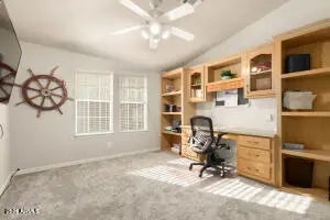 From the moment you step inside, this beautifully maintained 2-bed + den, 2-bath home welcomes you w/light, comfort, & thoughtful upgrades across 1,766 sq. ft. Skylights T/O the home fill the space w/natural light, while brand-new carpet & updated lighting create a fresh, move-in-ready feel. The spacious den features custom built-in cabinetry, ideal for a home office, hobby space, or extra storage. The home is being sold fully furnished, making it truly turnkey. Step out to the expansive screened-in Az Room, perfect for relaxing or entertaining, w/a BBQ area & a mature citrus tree adding charm to the outdoor space. Additional highlights include a 2-car garage w/built-in cabinets, Diamond Shield window protection, new A/C, new landscaping irrigation lines, and a new reverse osmosis syste m. Located within the prestigious, guard-gated Dolce Vita, this award-winning active adult community was named one of the "50 Best Active Adult Communities" by Where to Retire magazine. Residents enjoy a stunning 33,000 sq. ft. Mediterranean-style clubhouse featuring a grand ballroom, fitness center, theater, library, computer center, craft room with kiln, and card and billiards rooms. Outdoor amenities span 7 acres of resort-style recreation, including a heated pool, two spas, pickleball, shuffleboard, bocce ball, horseshoes, and a putting green, all set within a peaceful, beautifully maintained neighborhood that feels like a private retreat.