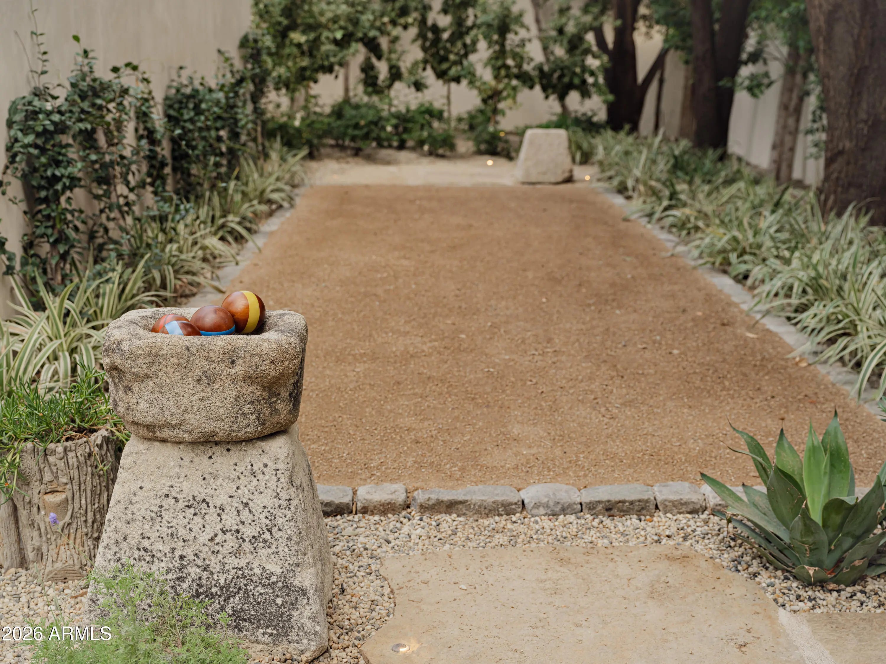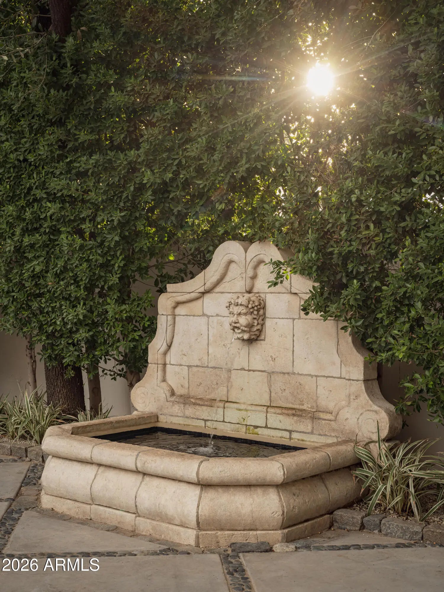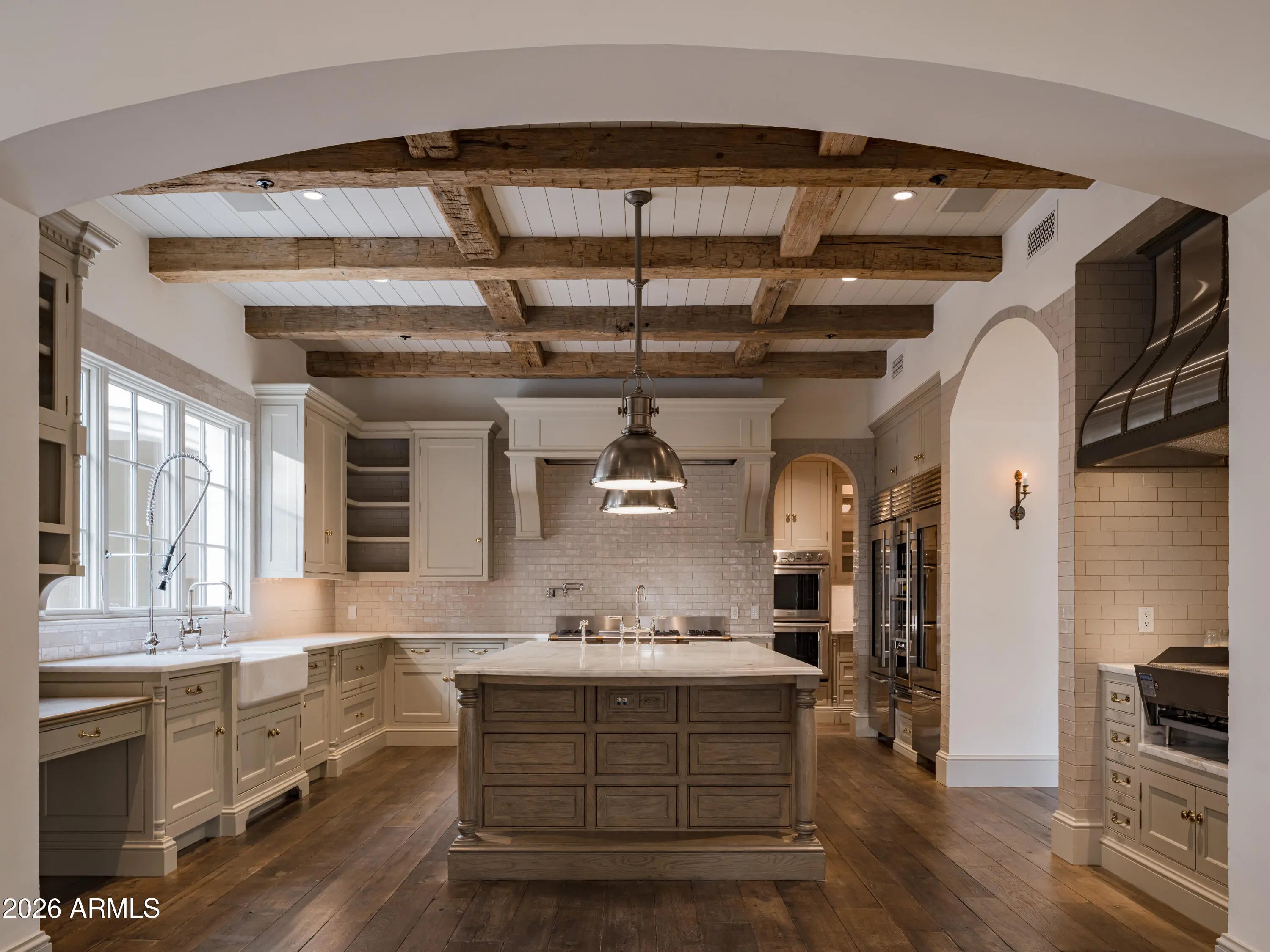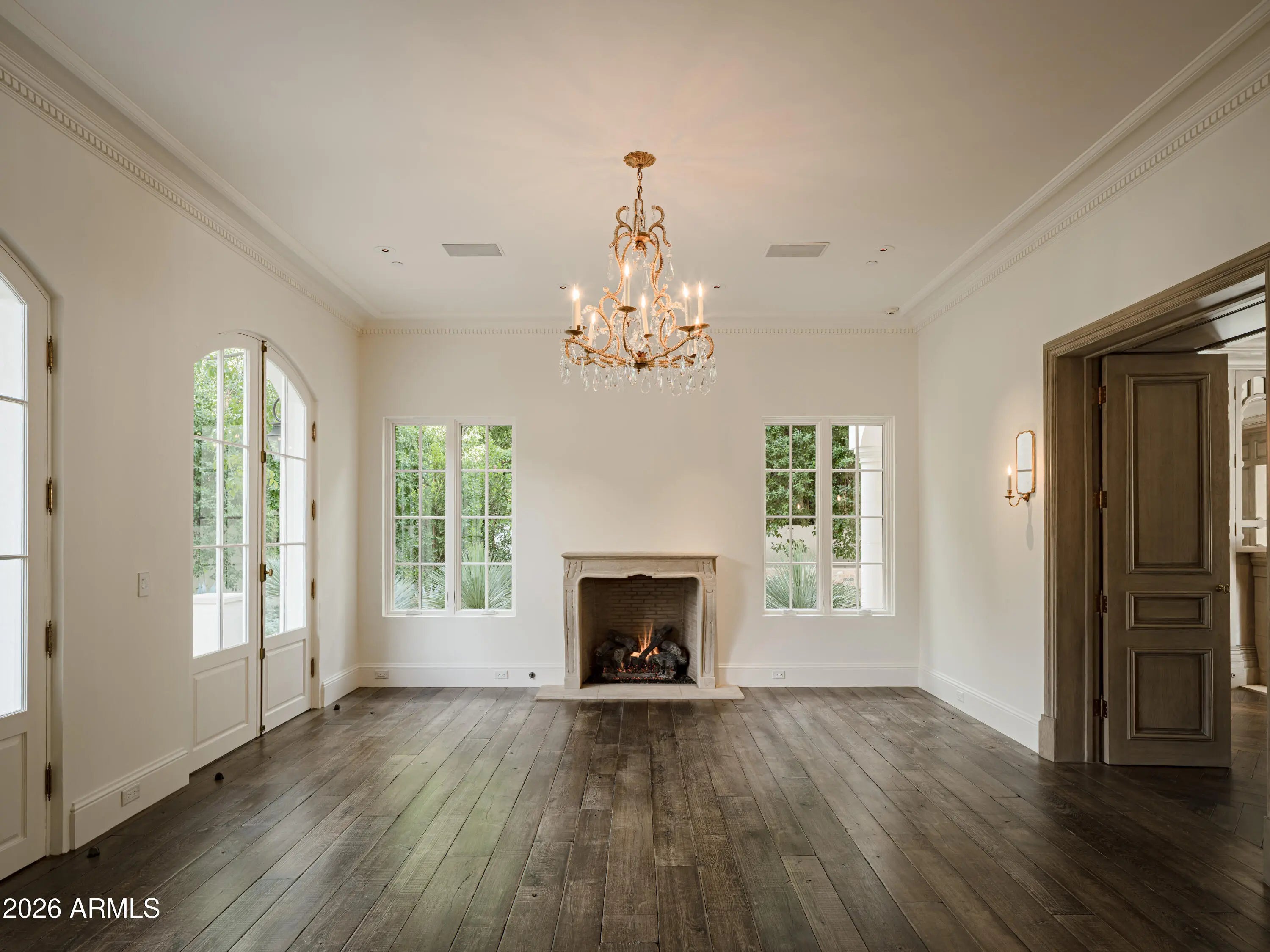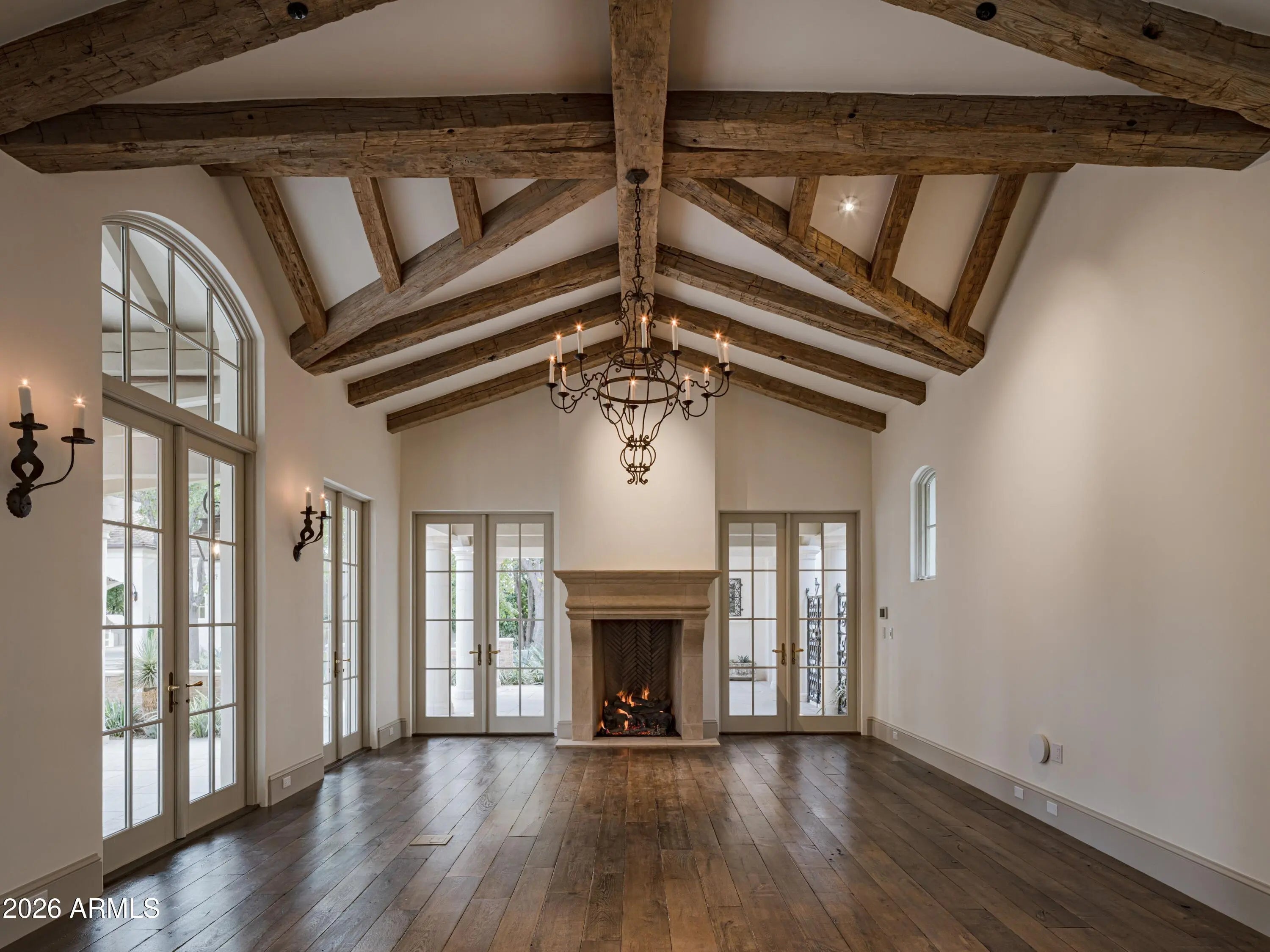 Behind tall private iron gates on the most coveted stretch of Exeter Boulevard, this extraordinary French-inspired Arcadia estate sits on nearly a full acre with commanding street presence, a dramatic fountain arrival, and rare north-south exposure—free of overhead power lines. Designed by architect Mark Candelaria and built by Nance Construction, the residence showcases authentic Old-World masonry construction and timeless European elegance paired with modern luxury. Interiors are defined by elegant archways, grand formal and informal living spaces, and a dramatic dual-foyer stair hall. Reclaimed wood beams, imported limestone and European oak floors, custom millwork, Niermann Weeks lighting, and carved limestone fireplaces with reclaimed firebrick reflect meticulous attention to detail. The chef's kitchen features a statement French range and professional-grade appliances, complemented by an adjacent catering pantry and full bar. Additional highlights include a library, glass conservatory, and climate-controlled wine cellar. Grand curved staircases or an elevator lead to the primary suite, a private retreat with sitting room and fireplace, view balconies, and a boutique-caliber dressing room. The spa-inspired primary bath offers a steam shower, dual water closets, and a fireplace beside a nickel-clad soaking tub. Three additional en-suite bedroomsone ideal as a gym with steam showeralong with an upstairs lounge or study and second laundry room complete the upper level. A detached guest casita provides full living quarters with kitchen, fireplace, bedroom suite, and balcony. Resort-style grounds feature multiple covered patios with fireplaces, a soaking pool with integrated fountains, a heated pool cabana with bar and bath, pickleball and bocce courts, and lush gardens accented by reclaimed brick, cobblestone, sandstone, gas lanterns, and water featuresevoking the ambiance of a European villa. A recent, comprehensive renovation includes new major systems, updated home automation, and extensive landscape enhancements. With temperature-controlled garage parking for up to ten vehicles, exceptional privacy, and uncompromising quality, this is a rare, legacy estate in one of Arcadia's most prestigious settings.